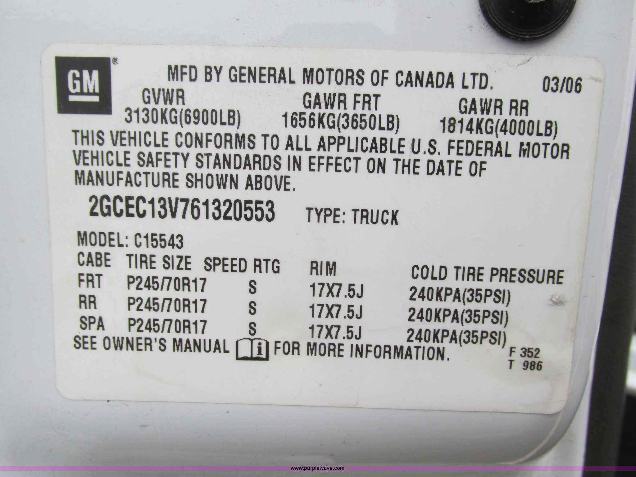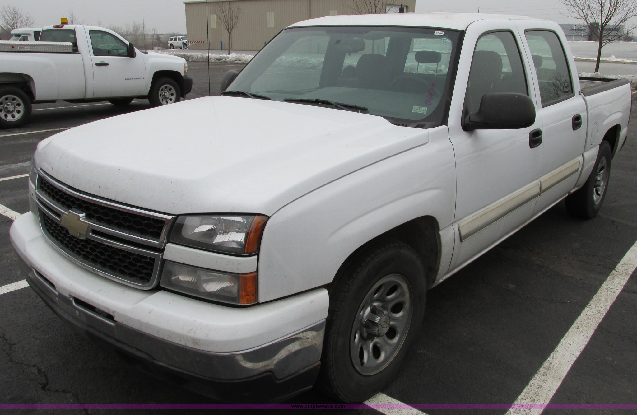 Purple Wave is selling a used 1/2 Ton Pickup or Van in Missouri. This item is a 2006 Chevrolet Silverado 1500 Crew Cab pickup truck with the following: 142,900 miles on odometer, 4.8L V8 OHV 16V gas engine, Automatic transmission, AC and heat, Tilt, Cruise, AM/FM/CD, Power windows, locks, and mirrors, Cloth interior, Spray-in bed liner, 245/70R17 tires, CB radio not included, Dead battery, Interior/exterior cosmetic damage, Engine making tapping noise when warm, Unit# B6036
