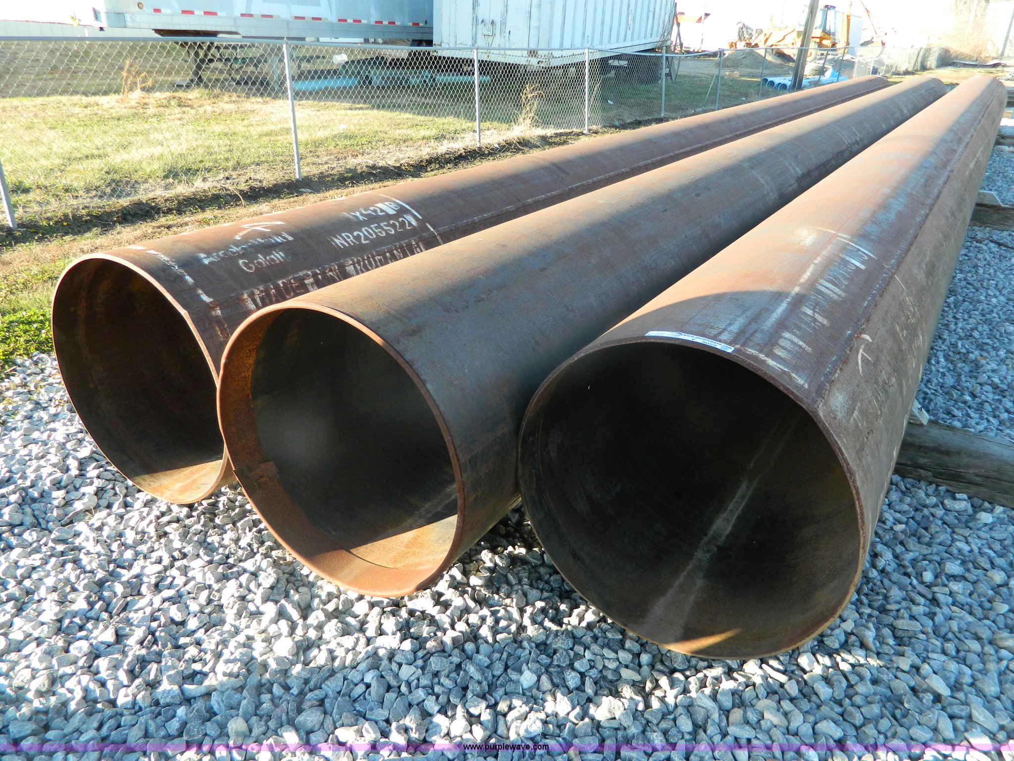 Purple Wave is selling a used Pipe in Kansas. This item is a (1) 26" O.D. pipe with the following: 3/8" wall, 38' to 39' long, 853 Grade B, Mill certified and documented, 102.63 lbs per ft. weight