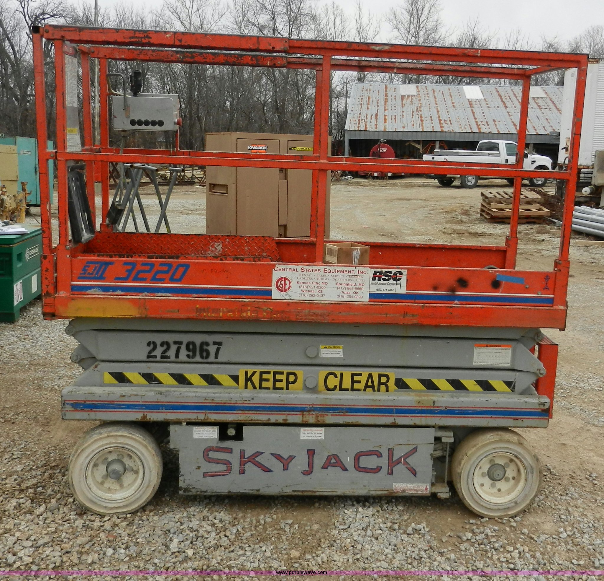 SkyJack 3220 scissor lift has sold in Parsons, Kansas for $4290. Item A3913 sold on March 12th, 2013.