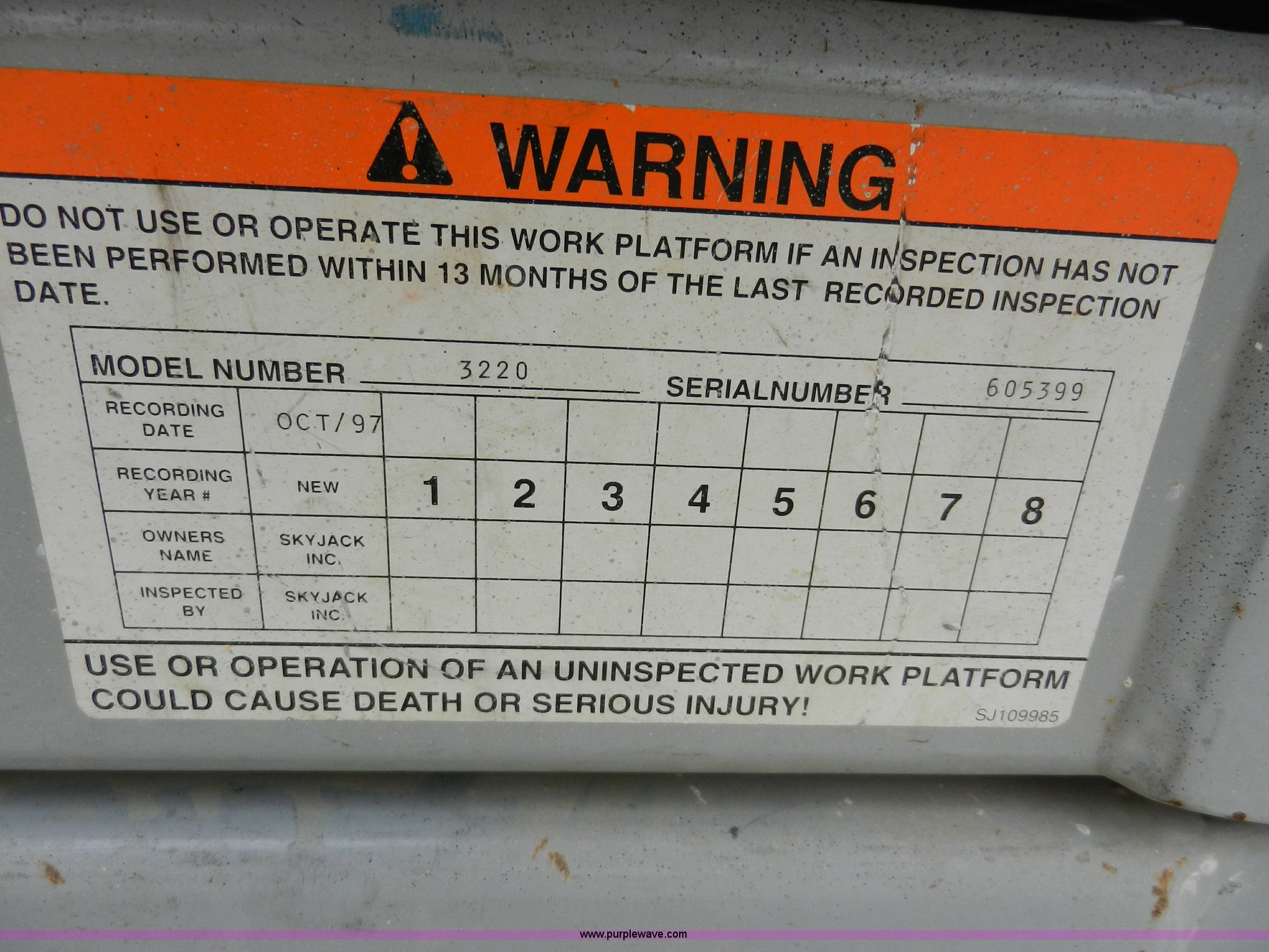 Take a look at this used SkyJack 3220 scissor lift being sold on March 12th, 2013 in the SOLD! March 12 Interstate Electrical Construction Business Liquidation Auction. Take a look at all of the item information below or take a look at similar auctions for Aerial Lifts.