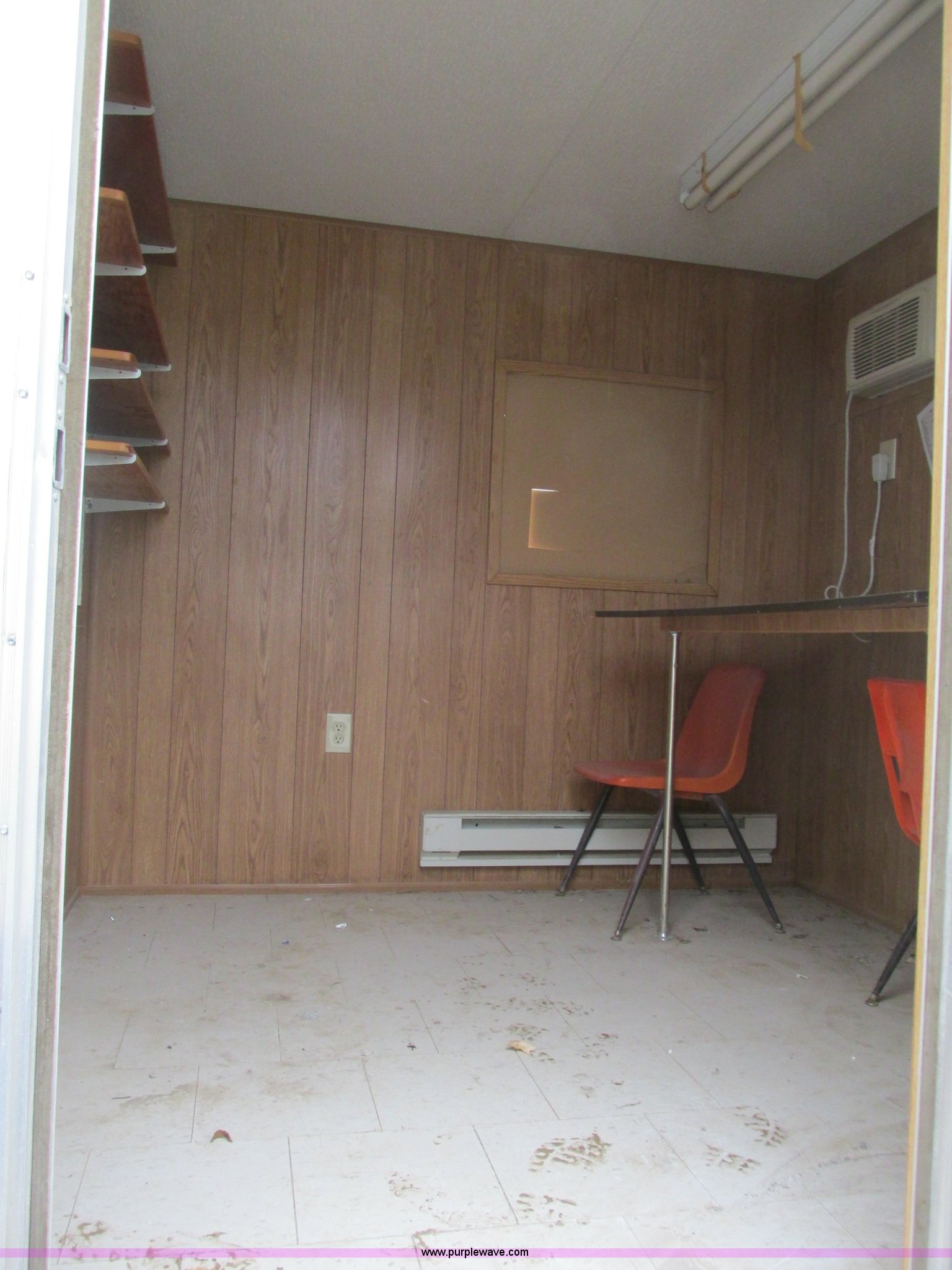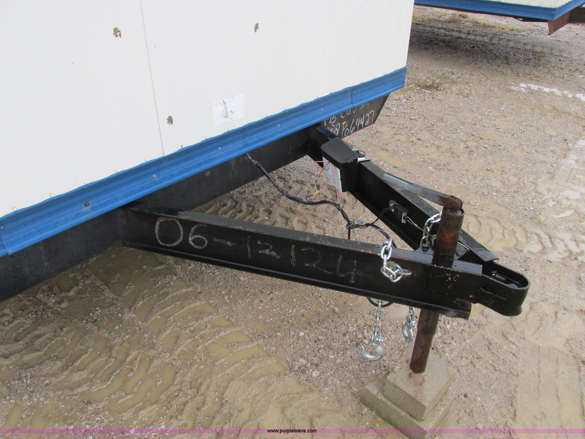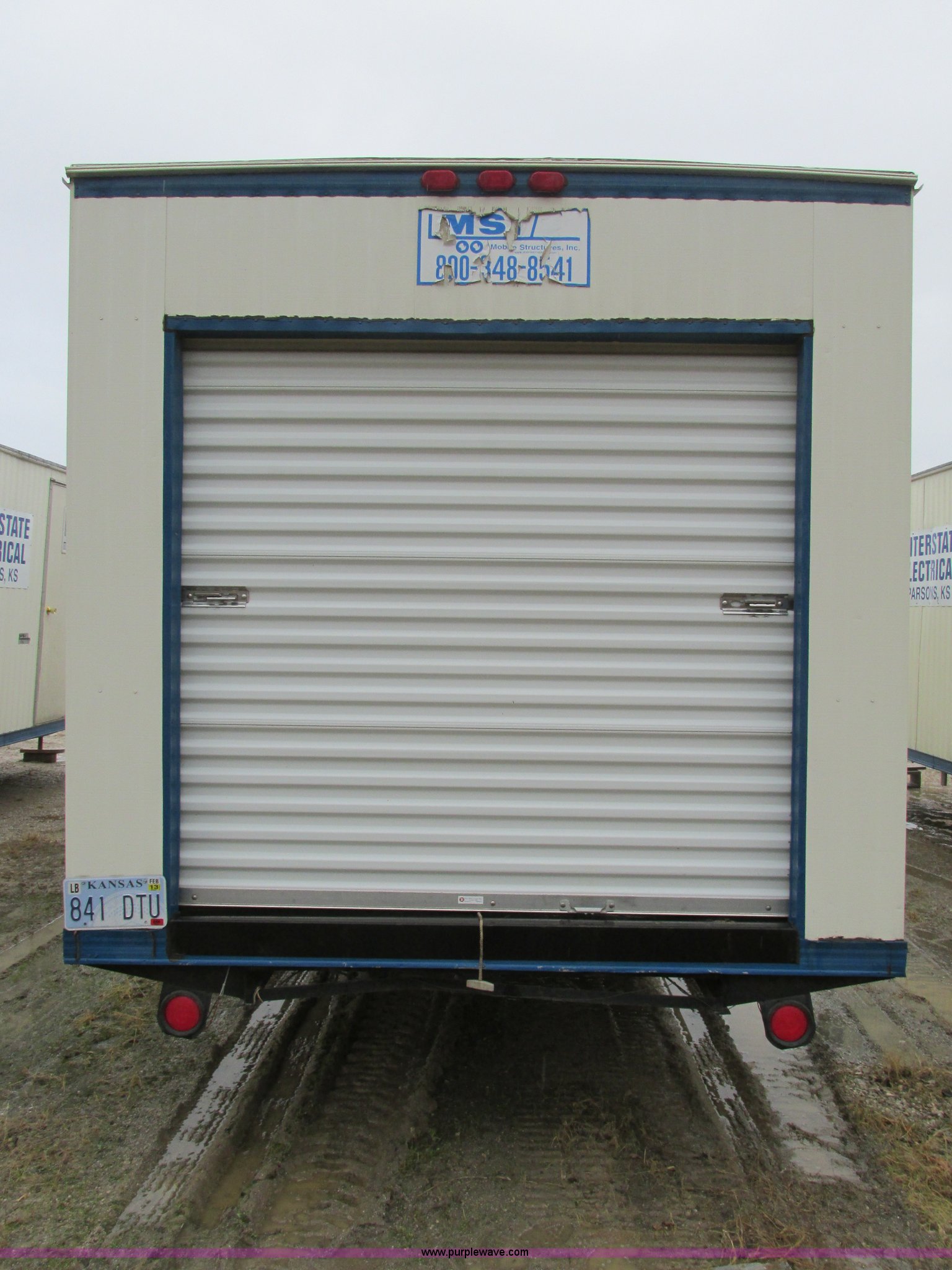 Purple Wave is selling a used Manufactured Home or Office in Kansas. This item is a 2006 Comb 26' single axle office trailer with the following: 8'W exterior, 7'H ceiling, 7'9"L x 7.5'W front office, 17.5'L x 7.5'W rear room, 6'W x 5'8"H rear roll-up door, 2 5/16" ball, Safety break-away chain, Stair case to office door, Front office has AC and heat, 7-14.5 tires, Unit# K194