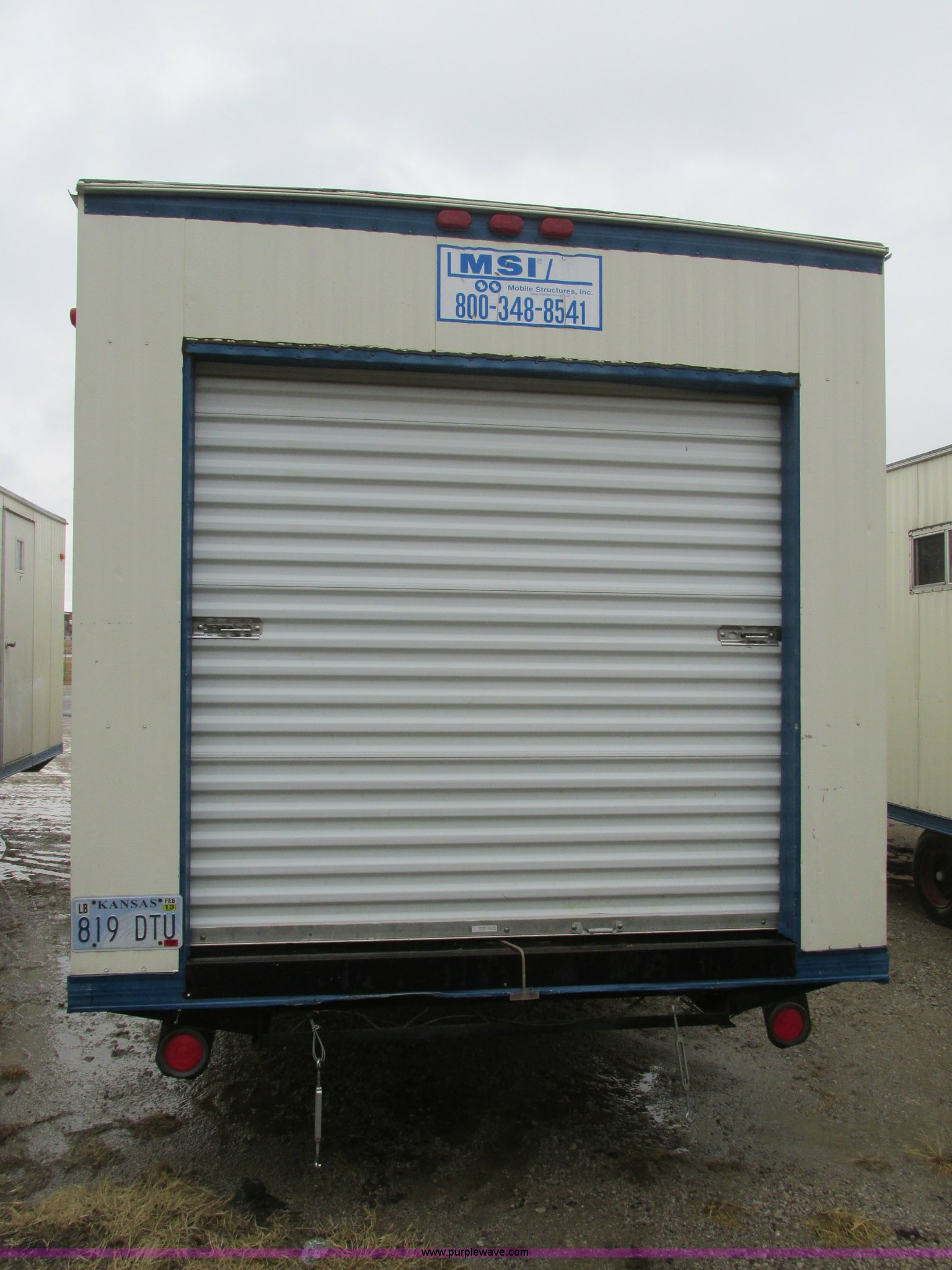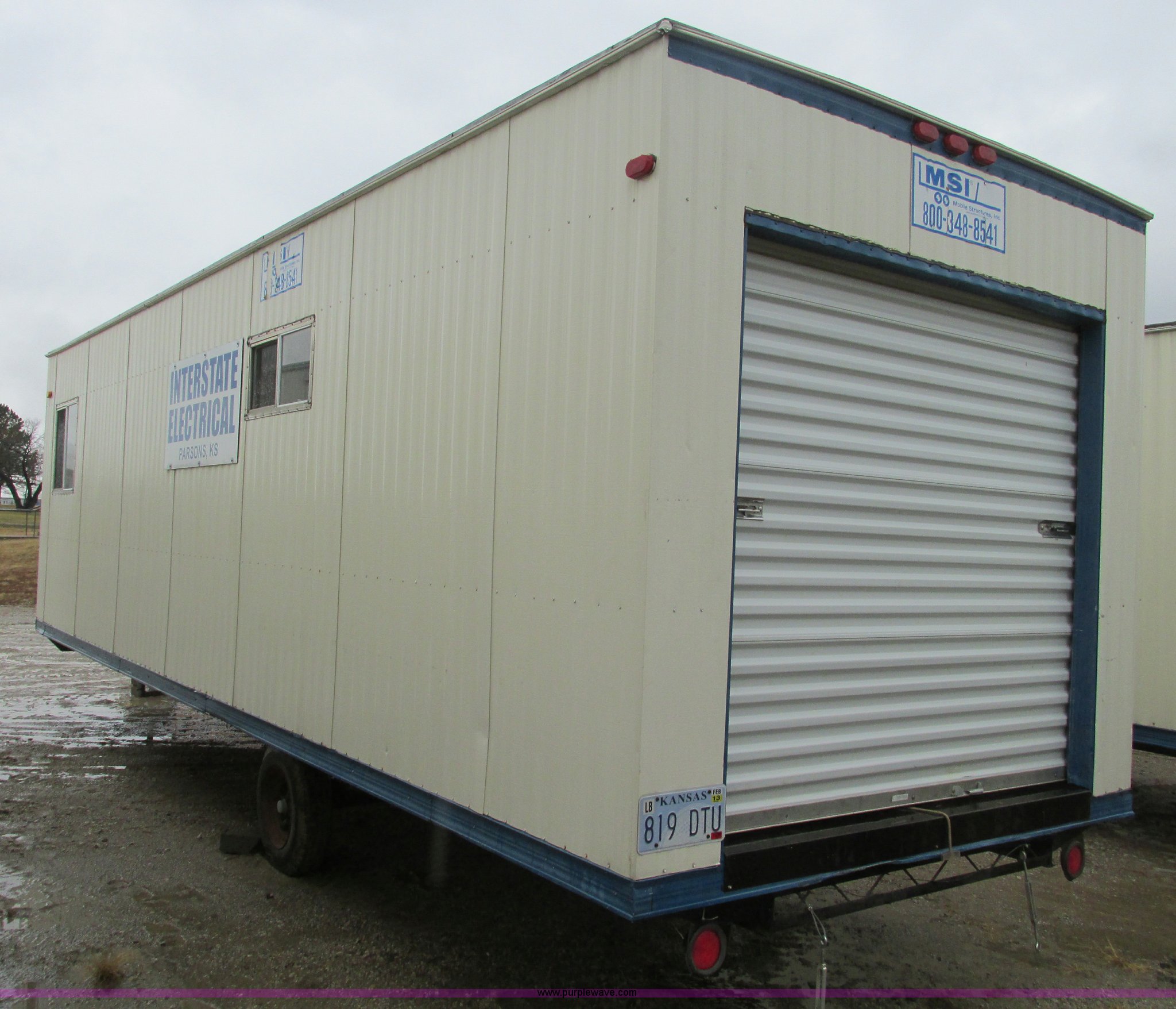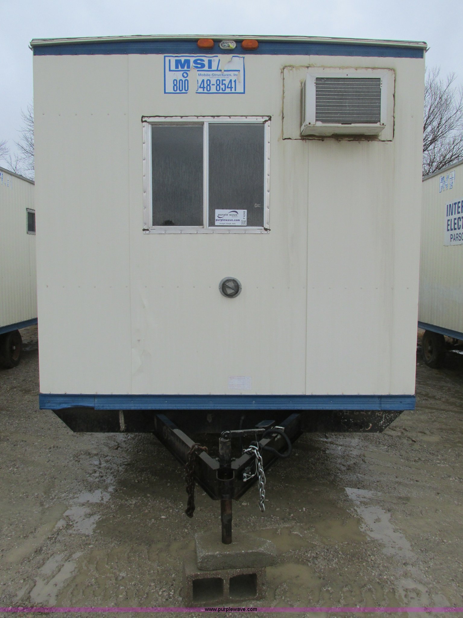 Purple Wave is selling a used Manufactured Home or Office in Kansas. This item is a 2005 Comb 26' single axle office trailer with the following: 8'W exterior, 7'H ceiling, 7'9"L x 7.5'W front office, 17.5'L x 7.5'W rear room, 6'W x 5'8"H rear roll-up door, 2 5/16" ball, Safety break-away chain, Front office has AC and heat, 7-14.5 tires, Unit# K190