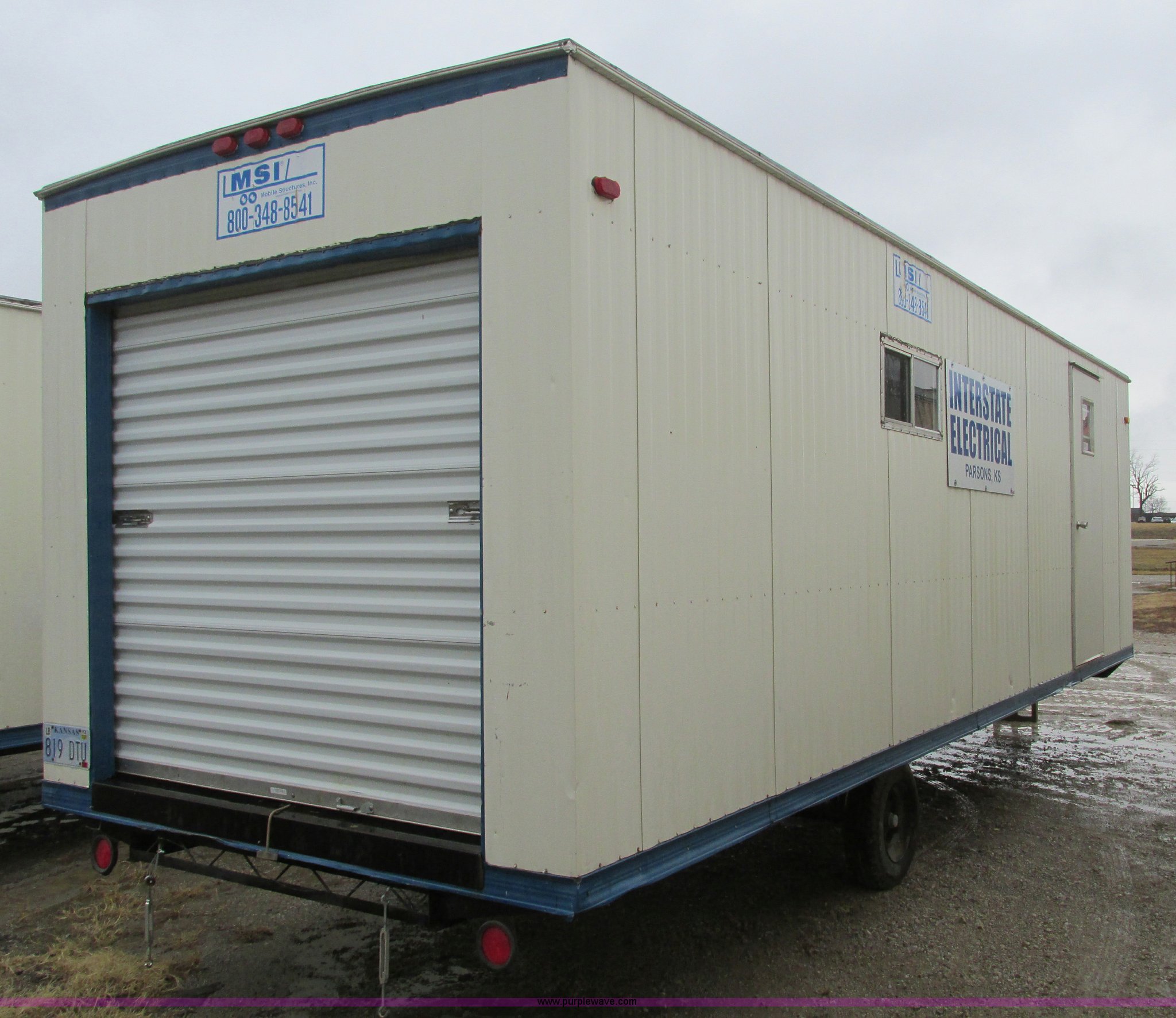 2005 Comb 26' single axle office trailer. 8'W exterior, 7'H ceiling, 7'9"L x 7.5'W front office, 17.5'L x 7.5'W rear room, 6'W x 5'8"H rear roll-up door, 2 5/16" ball, Safety break-away chain, Front office has AC and heat, 7-14.5 tires, Unit# K190. 0511142. Shipping quotes available. Interstate Electrical Construction Inc.. 1715 S US Highway 59. Parsons, KS 67357