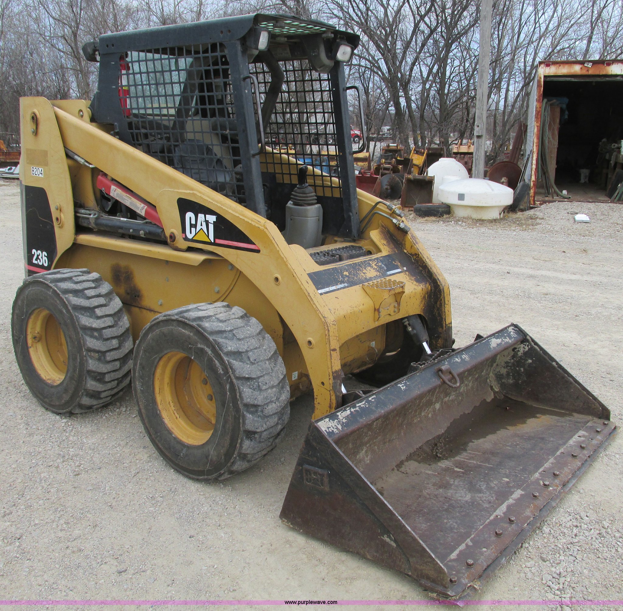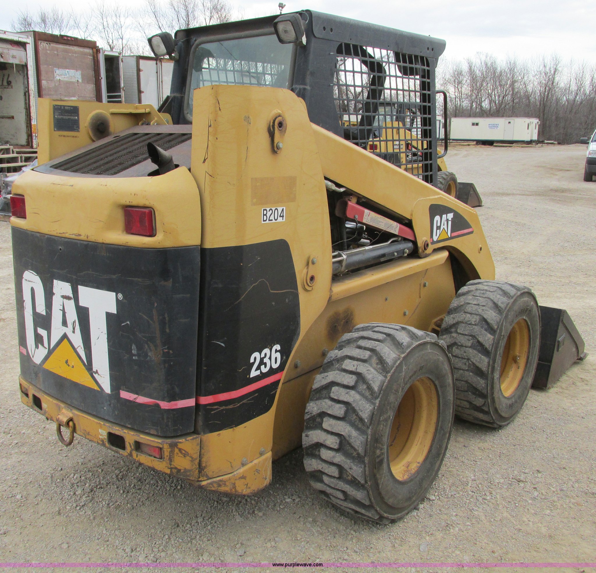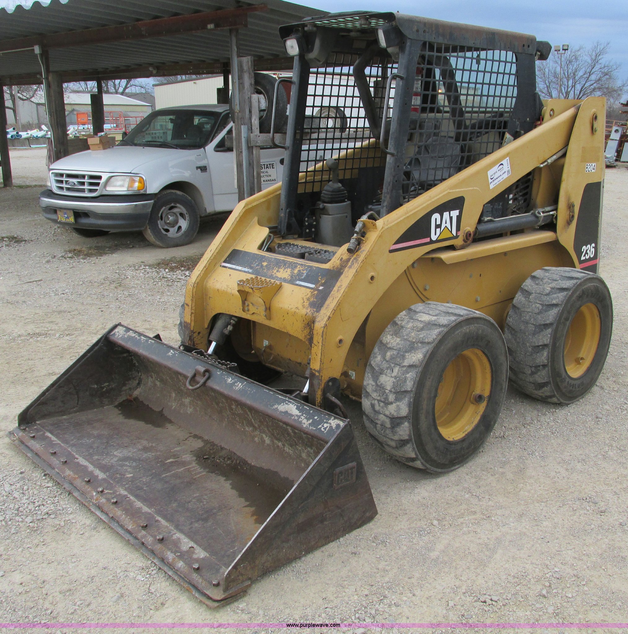 Purple Wave is selling a used Skid Steer Loader in Kansas. This item is a 2002 Caterpillar 236 skid steer with the following: 2,584 hours on meter, Caterpillar four cylinder diesel engine, OROPS, Light kit, 73"W bucket, Smooth bolt-on cutting edge, 12-16.5 tires, 6,641 lbs. base operating weight, Serial CAT00236H4YZ05401, Unit# B204