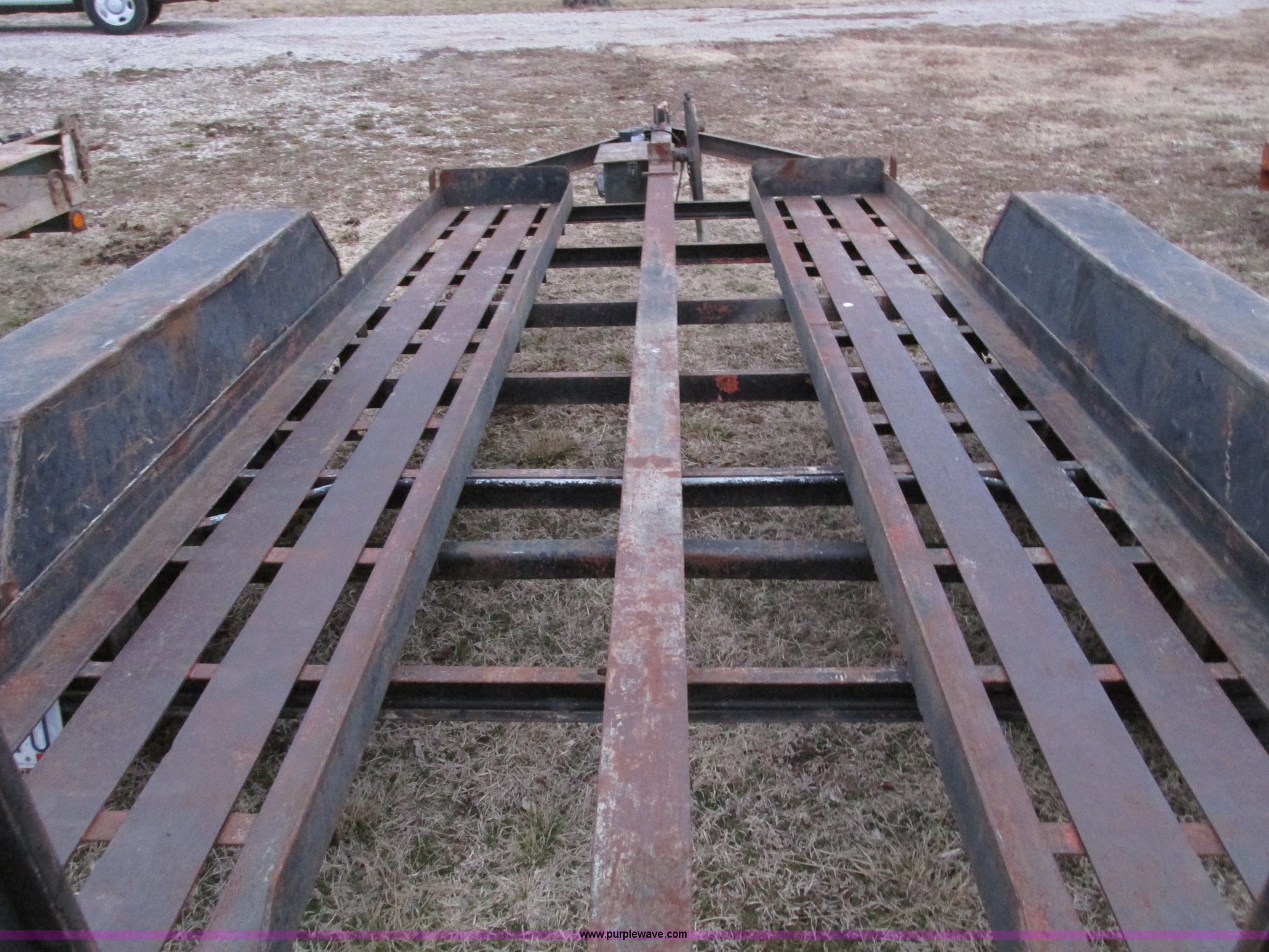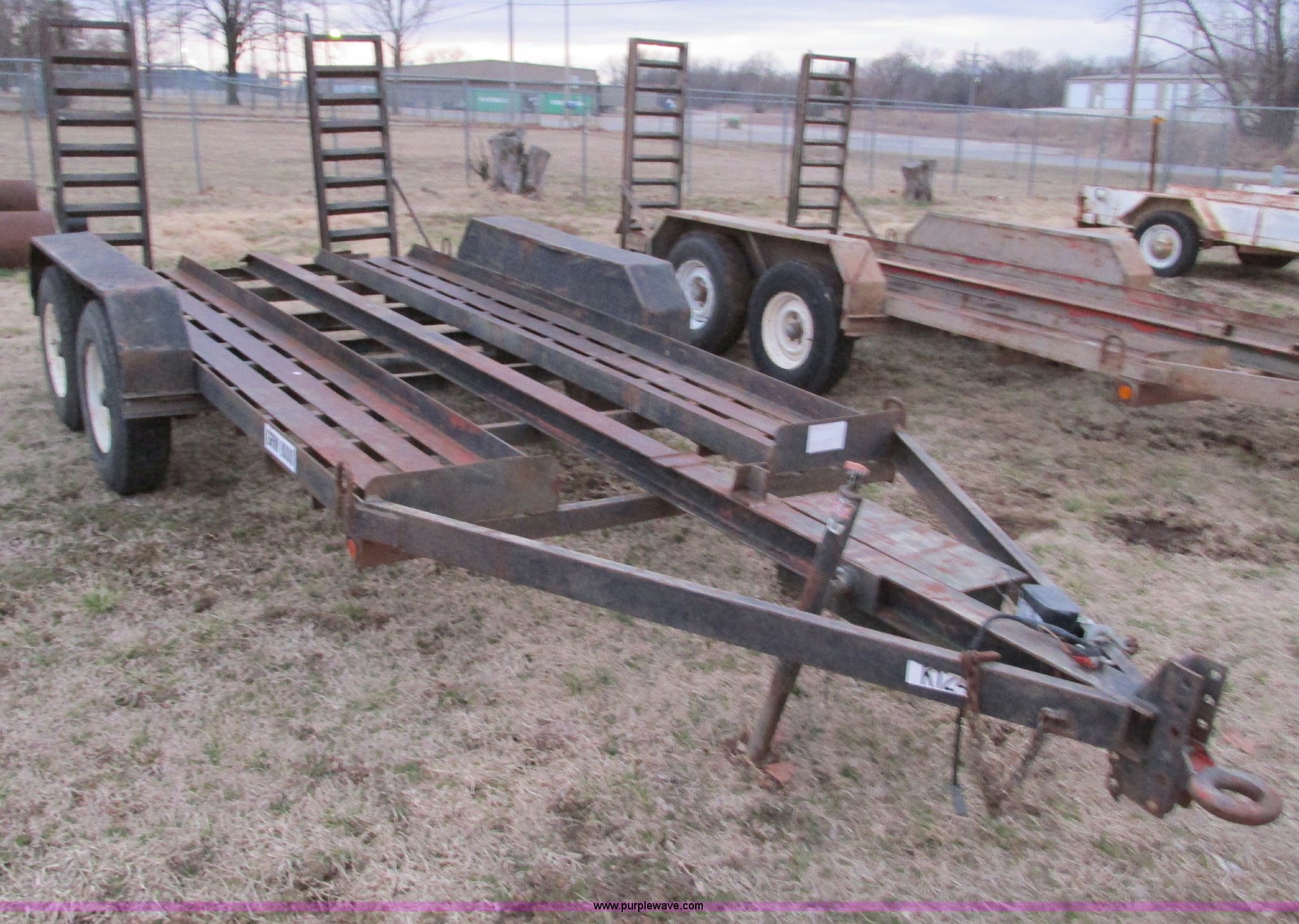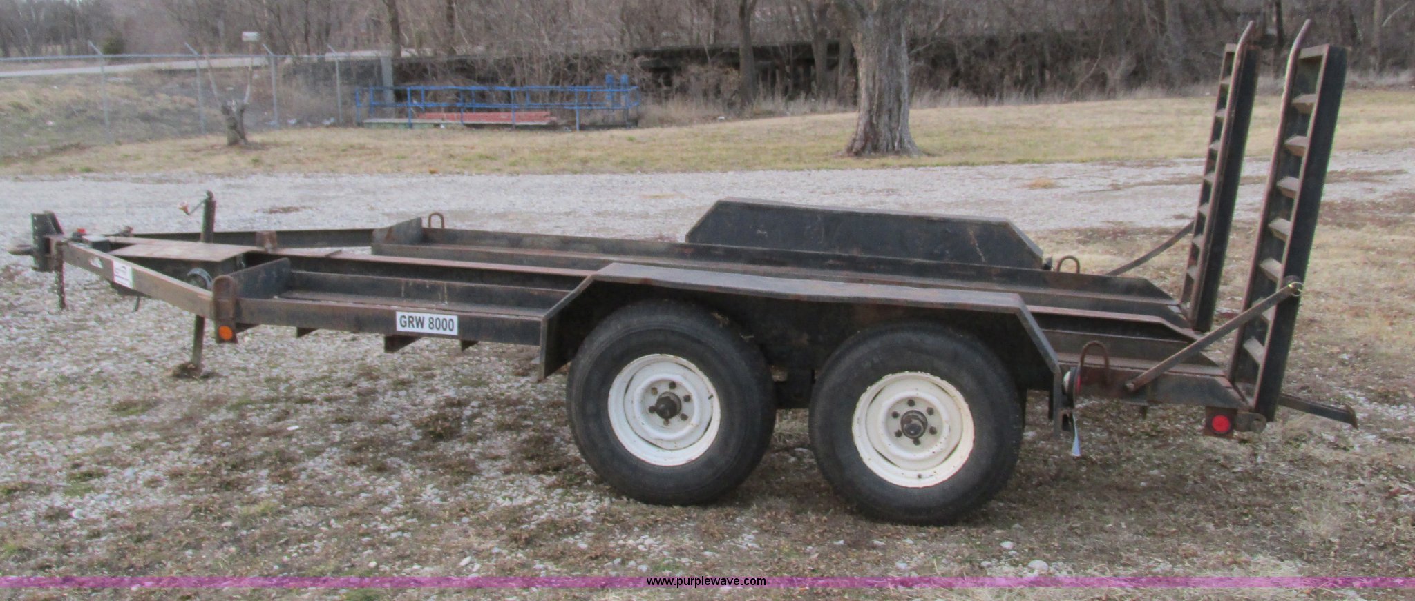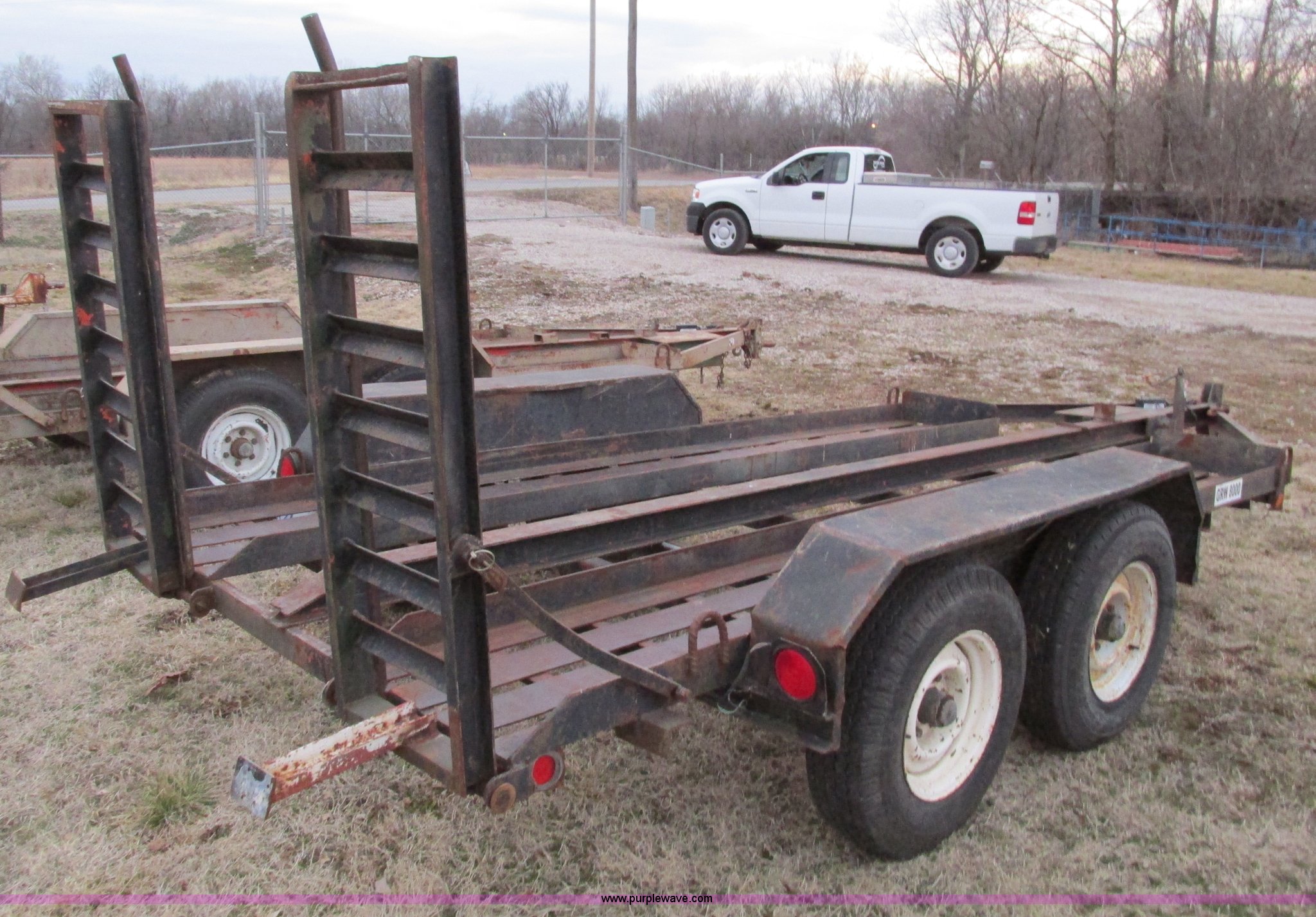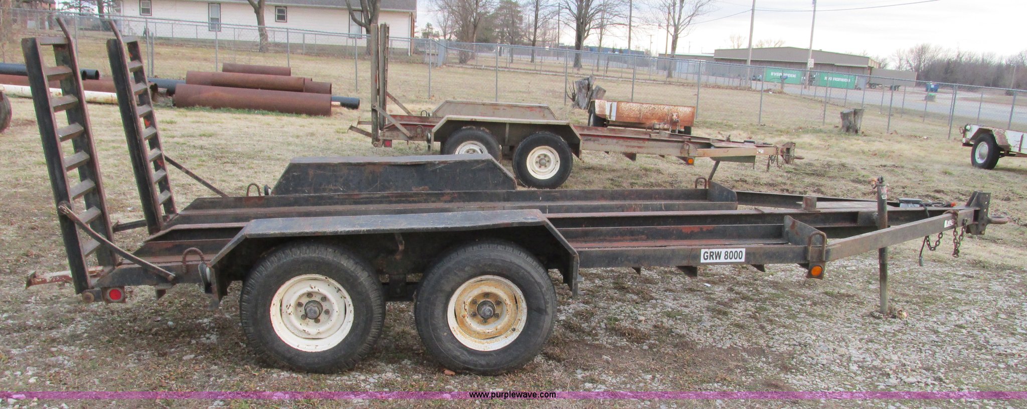 Purple Wave is selling a used Equip. Trailer in Kansas. This item is a 1977 13' tandem axle trailer with the following: 75"W, 52"L x 18"W ramps, Pintle hitch, Safety break-away chain, 7-15 tires, Unit# K124