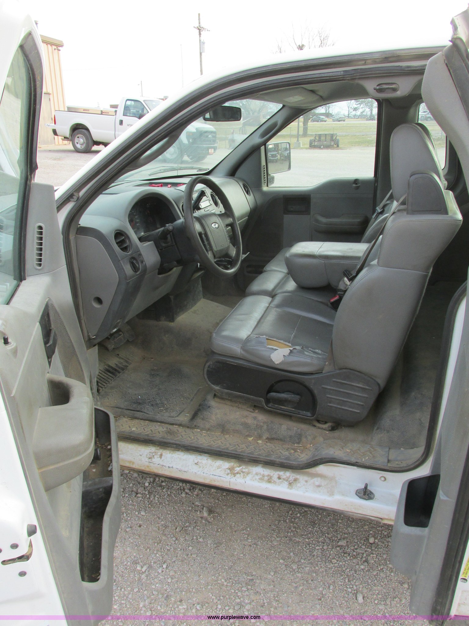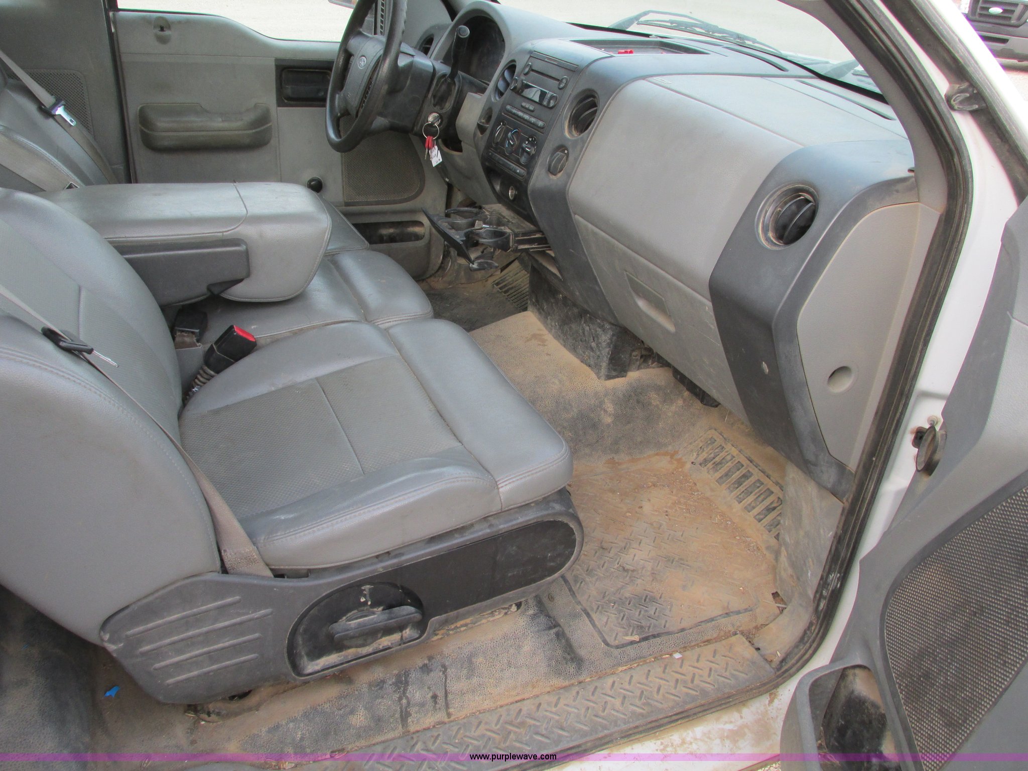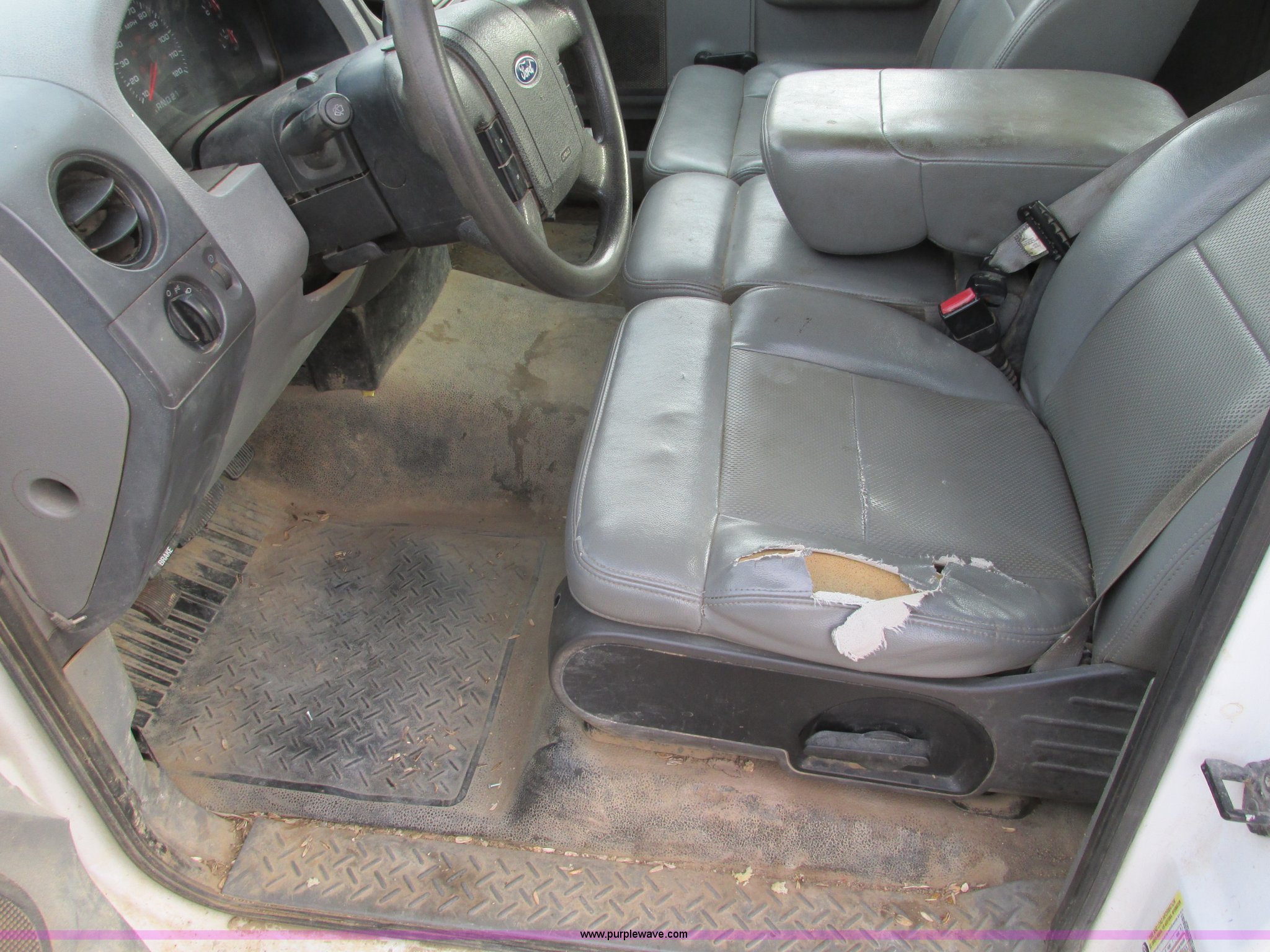 Purple Wave is selling a used 1/2 Ton Pickup or Van in Kansas. This item is a 2005 Ford F150 XL pickup truck with the following: 142,542 miles on odometer, 4.6L V8 SOHC 16V gas engine, Automatic transmission, AC and heat, Tilt, Cruise, AM/FM/CD, Manual windows and locks, Vinyl interior, Long bed, WeatherGuard aluminum diamond plate toolboxes, Keys included, Receiver hitch, Trailer wiring, 245/70R17 tires, Interior/exterior cosmetic damage, Torn seat, Unit# A450