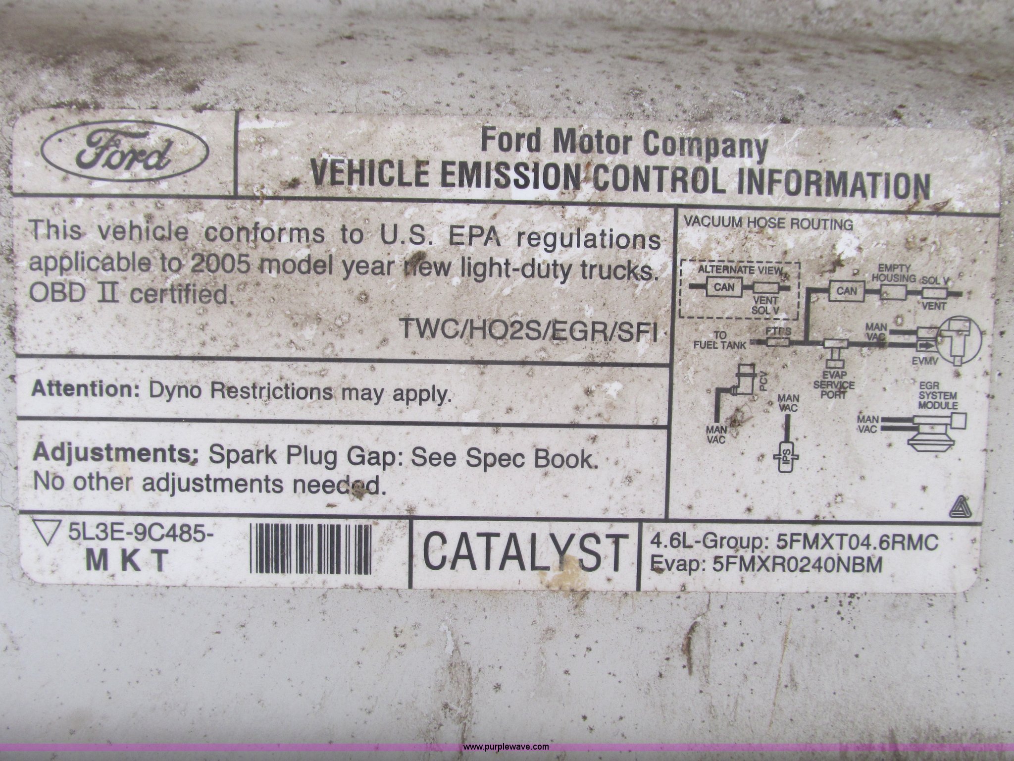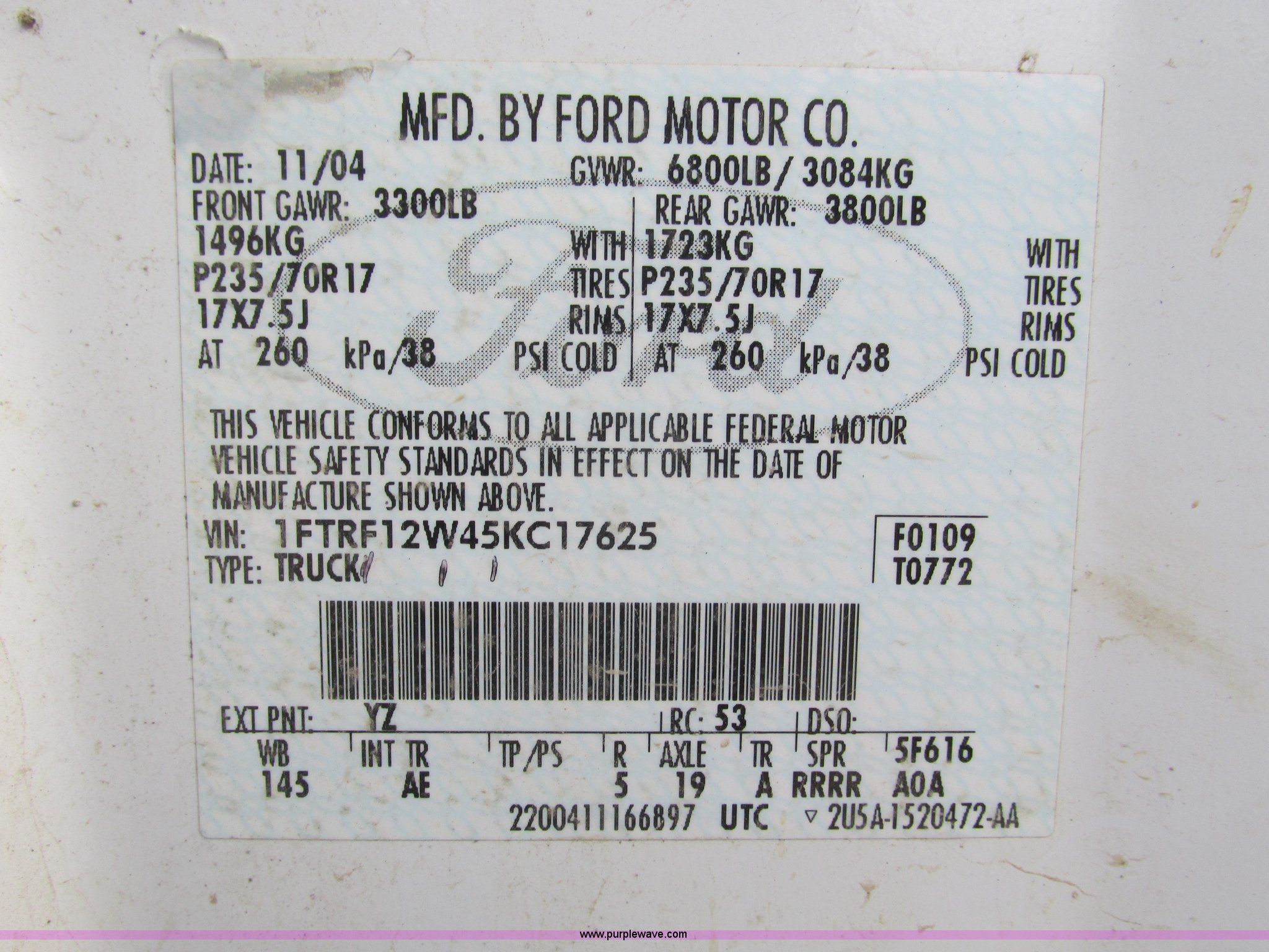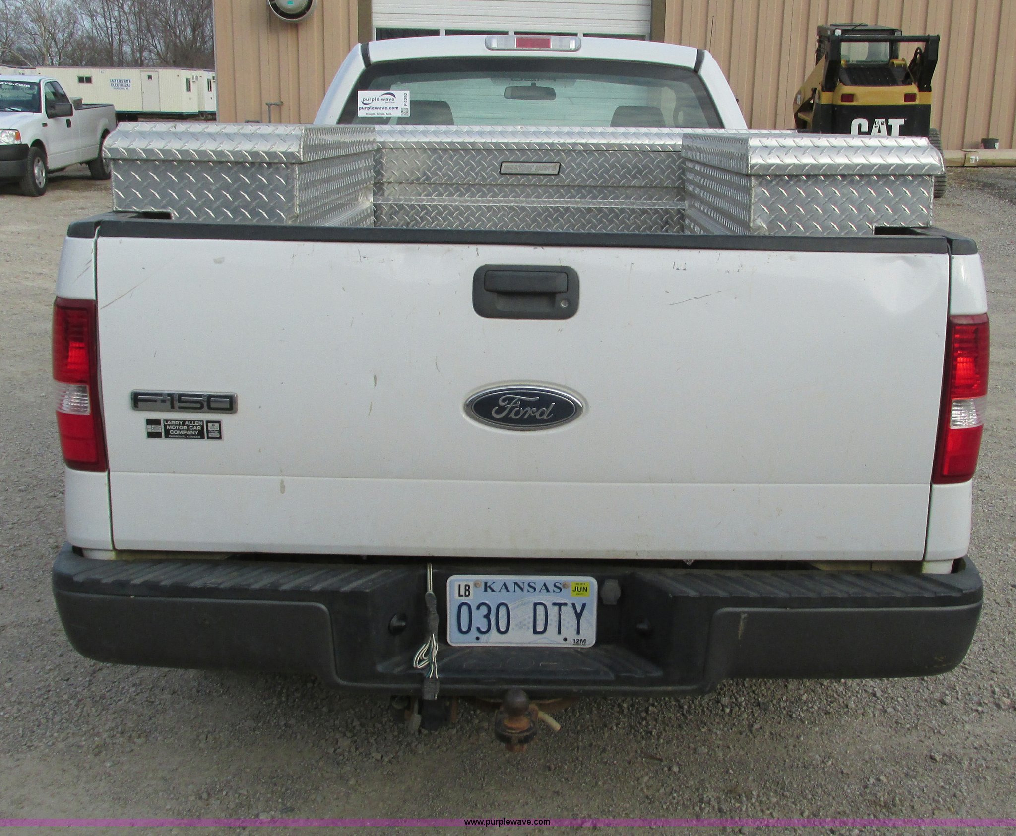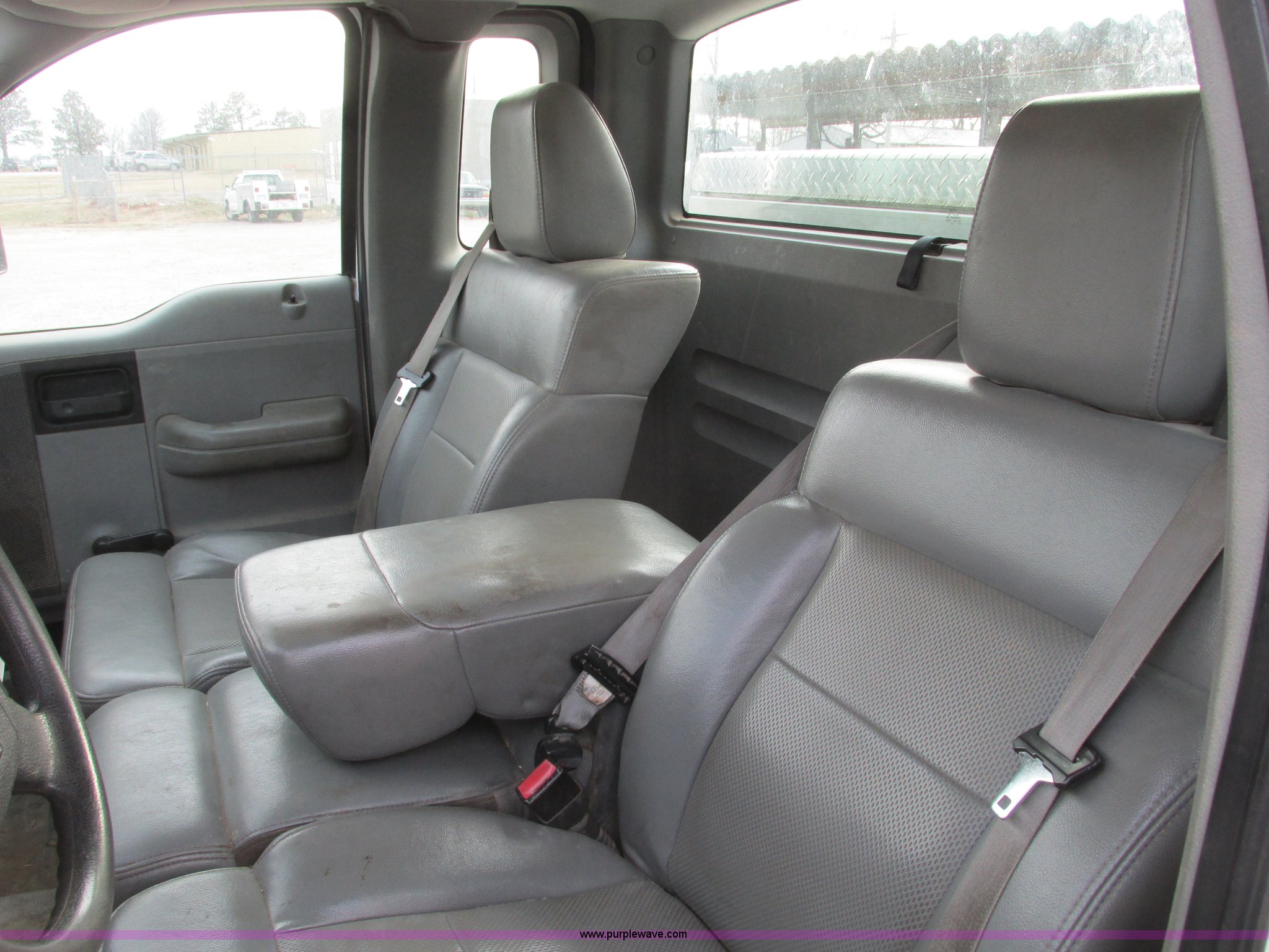 Purple Wave is selling a used 1/2 Ton Pickup or Van in Kansas. This item is a 2005 Ford F150 XL pickup truck with the following: 142,542 miles on odometer, 4.6L V8 SOHC 16V gas engine, Automatic transmission, AC and heat, Tilt, Cruise, AM/FM/CD, Manual windows and locks, Vinyl interior, Long bed, WeatherGuard aluminum diamond plate toolboxes, Keys included, Receiver hitch, Trailer wiring, 245/70R17 tires, Interior/exterior cosmetic damage, Torn seat, Unit# A450