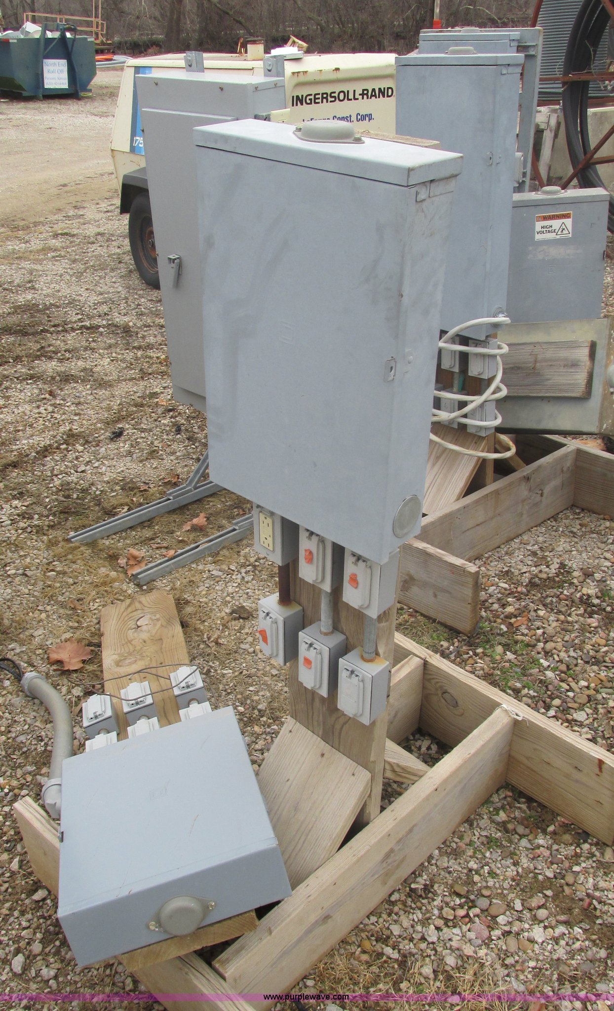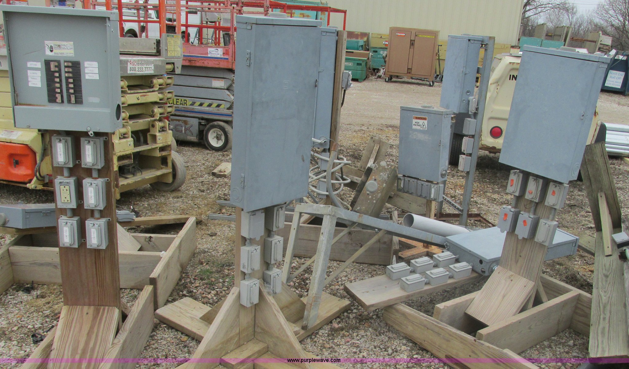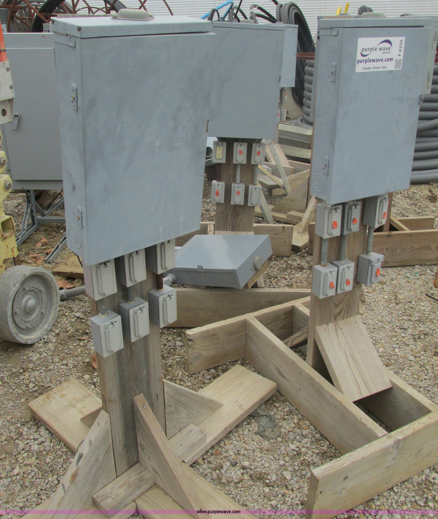Assorted electrical boxes. Approx. 15 boxes, Mounted on wood stands, Previously used for temporary jobs. Shipping quotes available. Interstate Electrical Construction Inc.. 1715 S US Highway 59. Parsons, KS 67357
