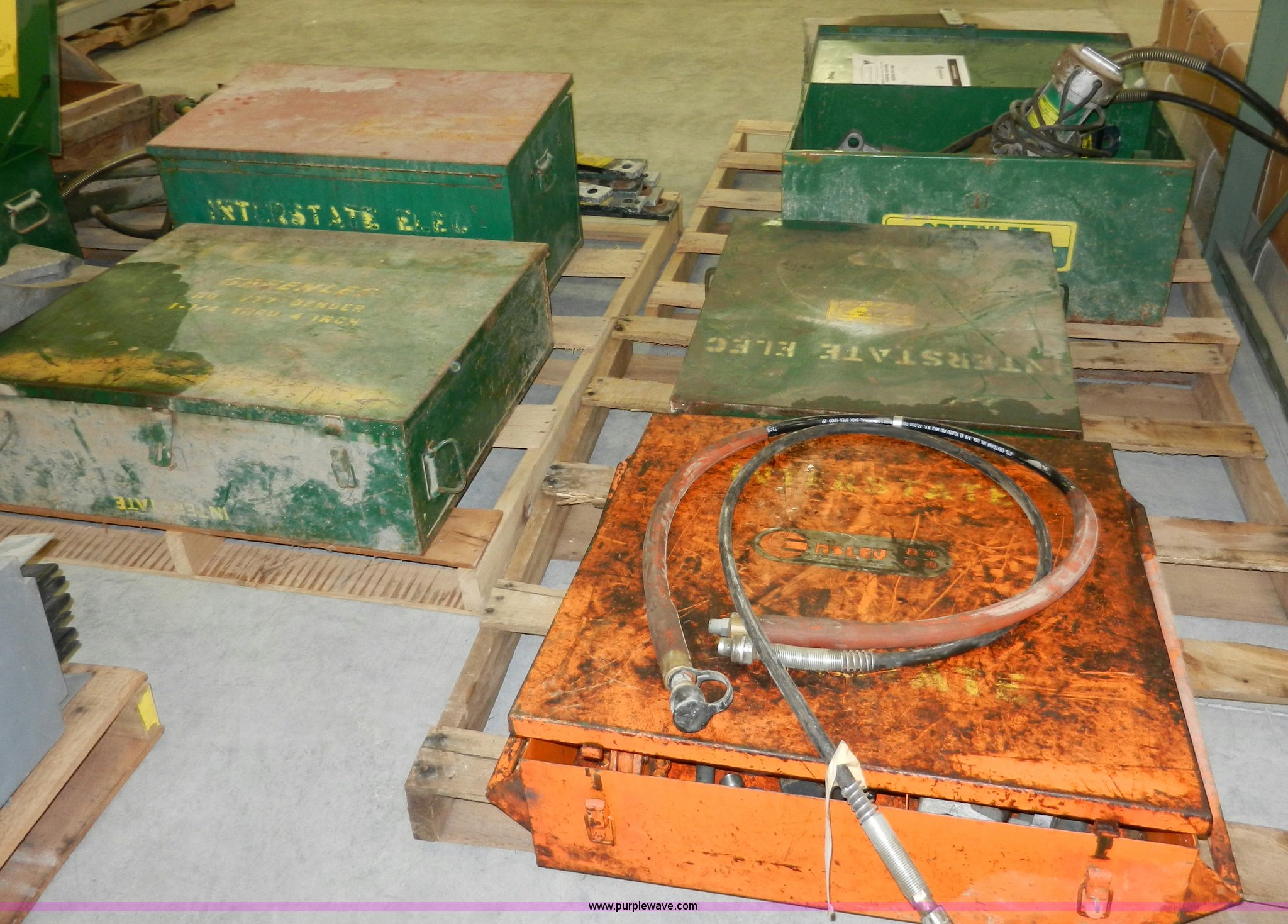(10) Assorted hydraulic pipe benders. (9) Greenlee, Ensley, Parts only, No complete units, Some dies included. Shipping quotes available. Interstate Electrical Construction Inc.. 1715 S US Highway 59. Parsons, KS 67357