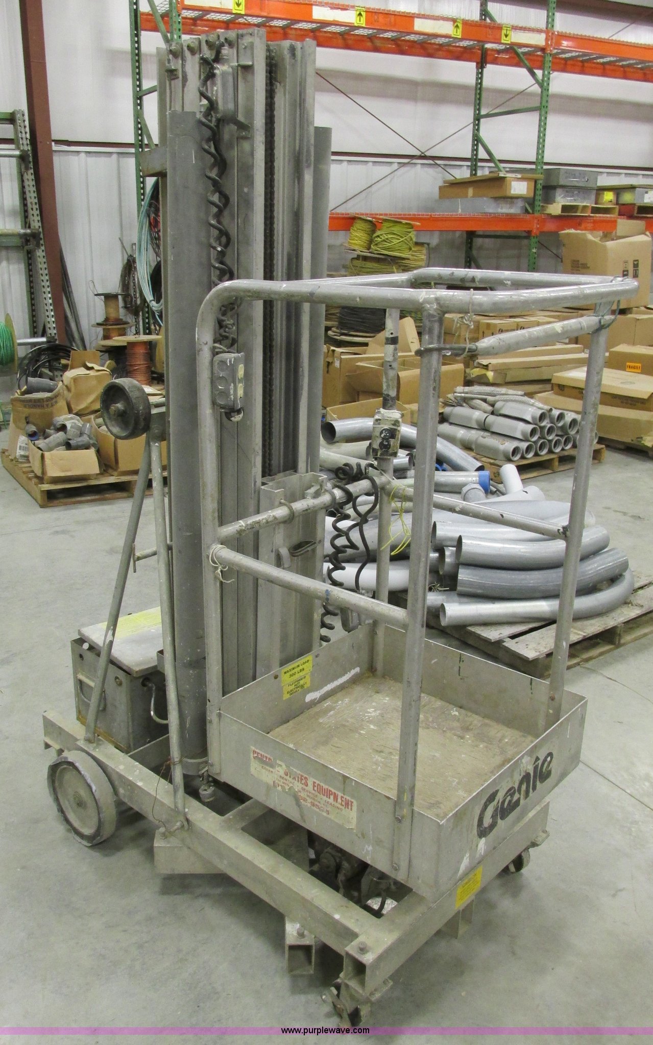 Genie PLC-24DC single man lift has sold in Parsons, Kansas for $1265. Item Y9598 sold on March 12th, 2013.