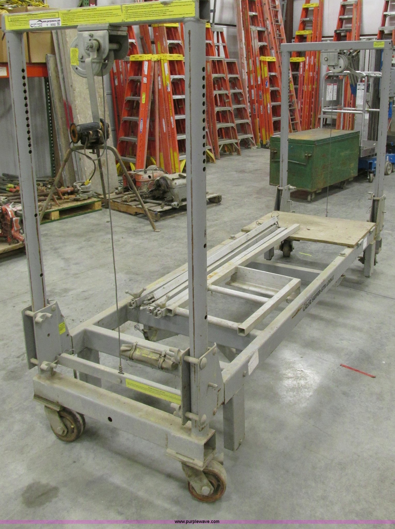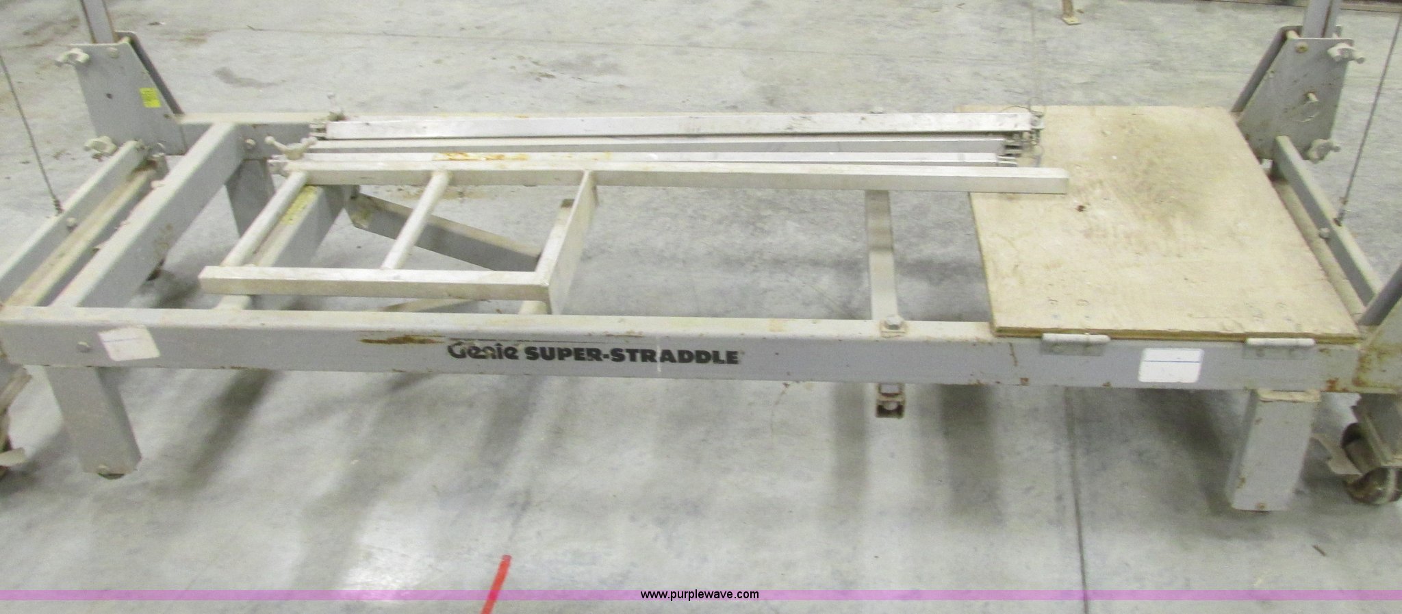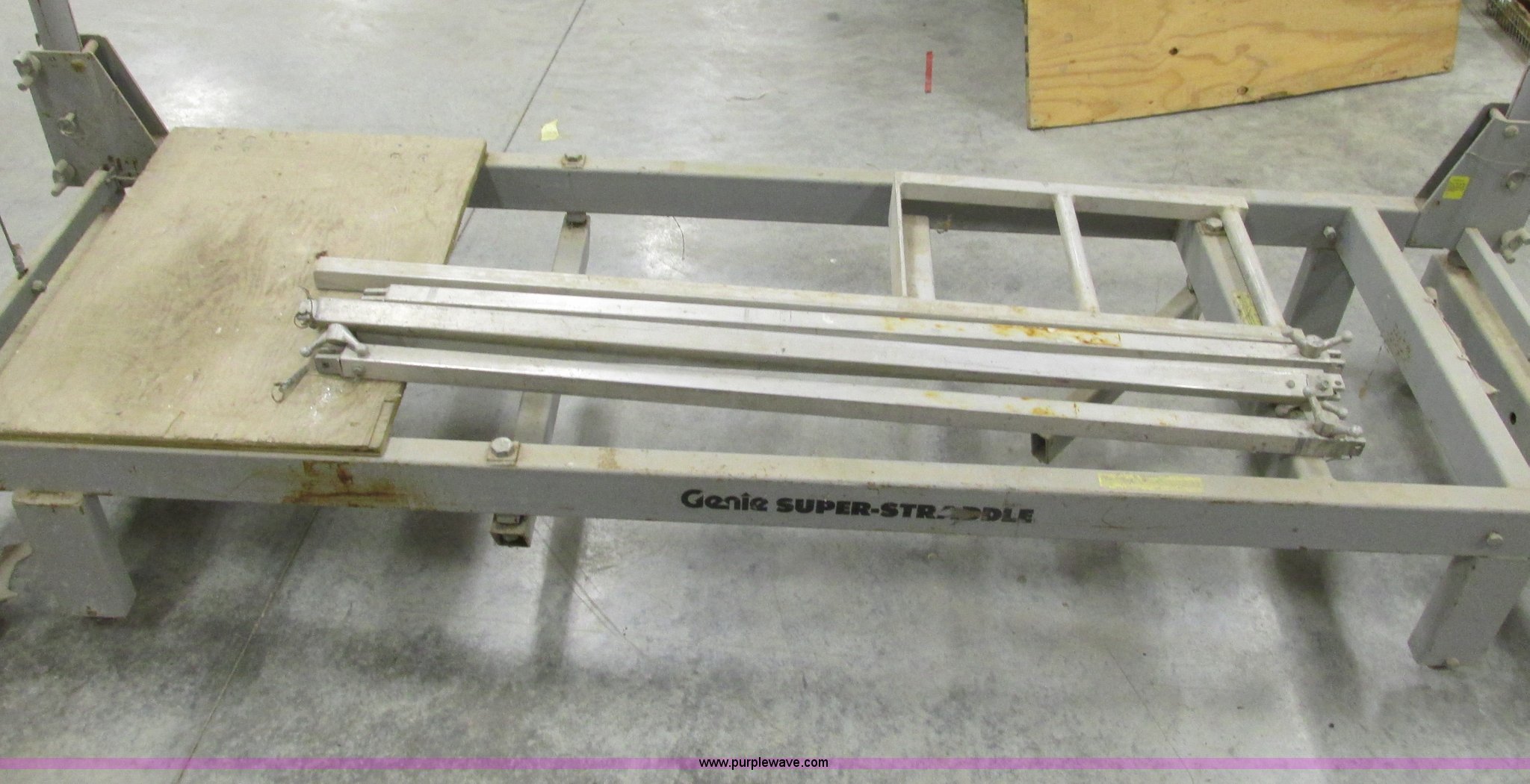 Purple Wave is selling a used Scissor or Vertical Lift in Kansas. This item is a (2) Genie lifts with the following: Genie PLC-30 single man lift, 30' max height, 300 lb max capacity, 12V electrical system, On-board charger, Approx. 2'W x 2' basket, Approx. 44"H side rails, (2) outriggers, Extra dolly wheels, Extension to wheel through door ways, Recently replaced batteries, Serial 14-88-15272-S, Genie Super straddle, Model SS30ADJ, Casters, Approx. 109"L x 33"W x 70"H, Serial 2885-473