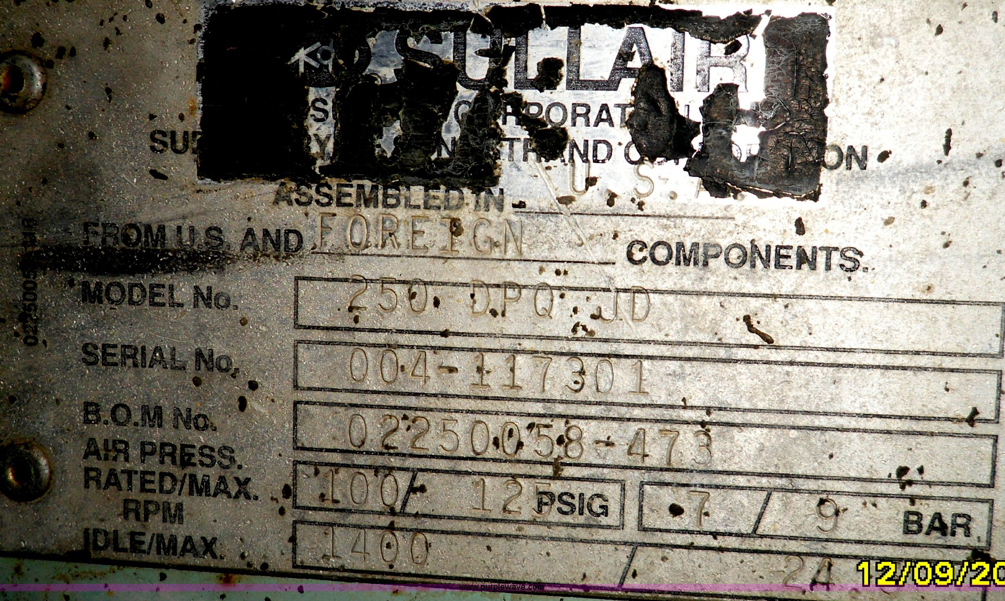 Take a look at this used Sullair 250 DPQJD being sold on January 30th, 2013 in the SOLD! Wednesday January 30 Ag Equipment Auction made by Sullair. Take a look at all of the item information below or take a look at similar auctions for Compressors.