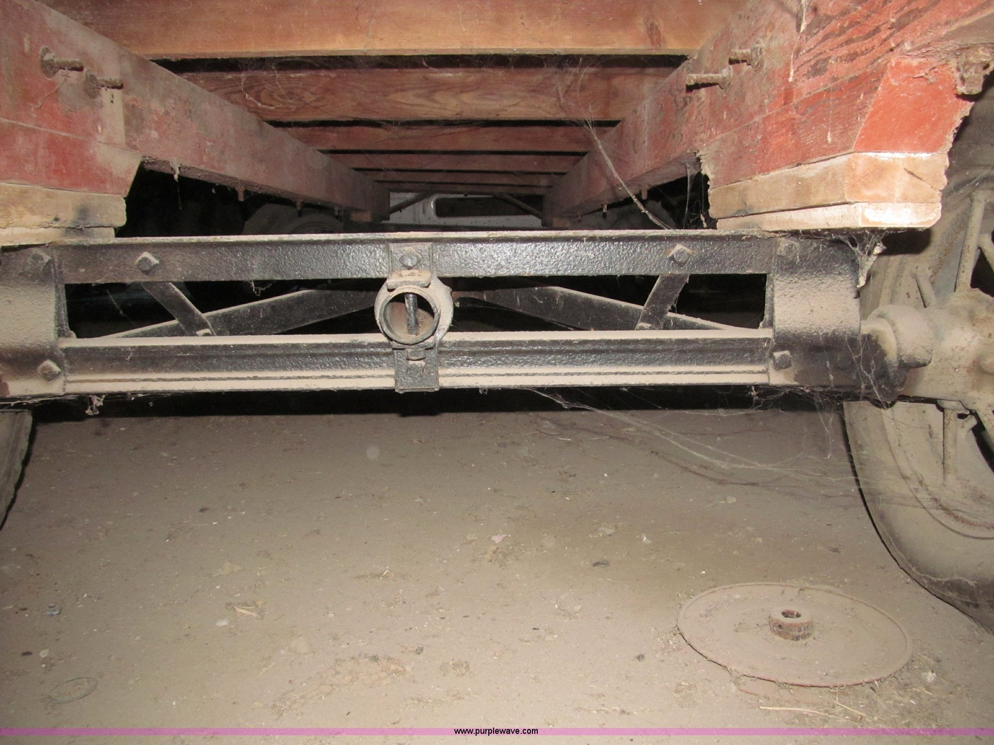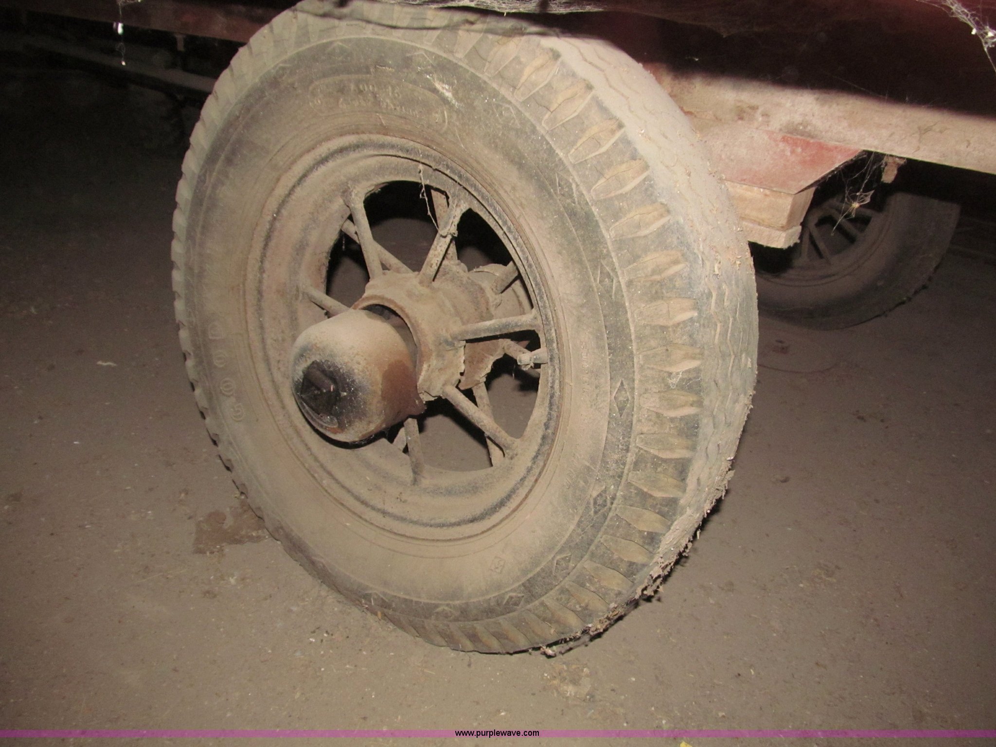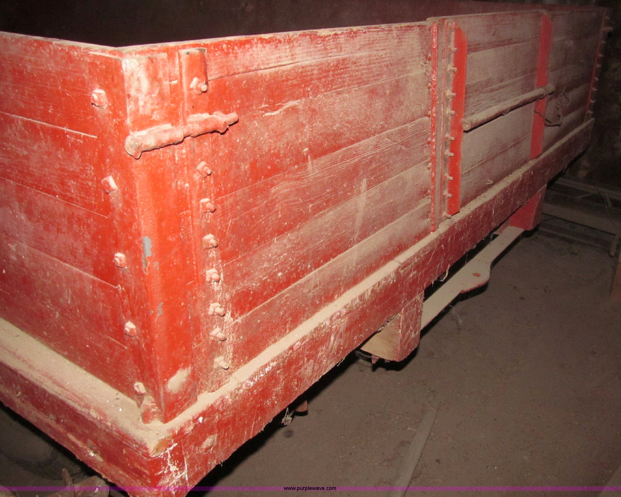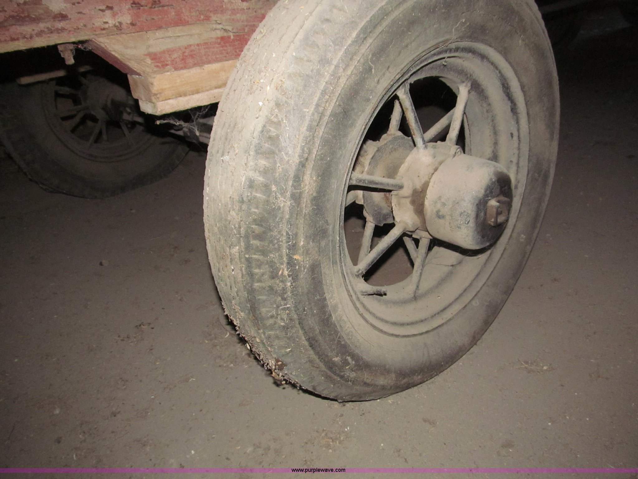 Purple Wave is selling a used Other Grain or Fertilizer Handling in Nebraska. This item is a Radio Flyer 2000 pull type wagon with the following: 14' x 7', 16" high wood sides, John Deere running gear, Wood bed, 27"W removable end gate, Entire end gate removable, Rear hitch, Pin hitch, Spoked rims, 7.00-16 and 6.00-16 tires, 4 ply, Wheel bearings replaced in 2000, Left rear wheel hub loose, Contents not included