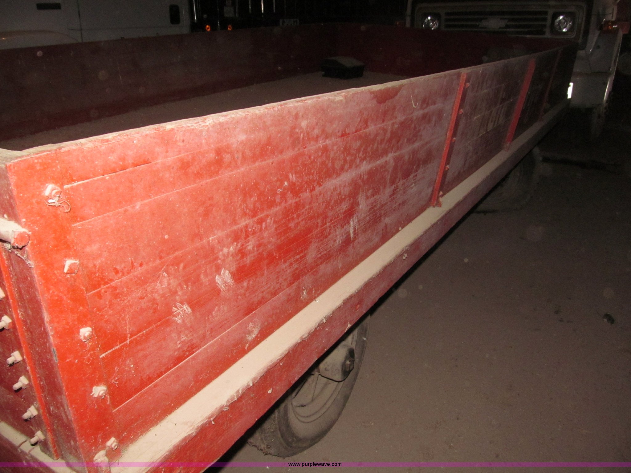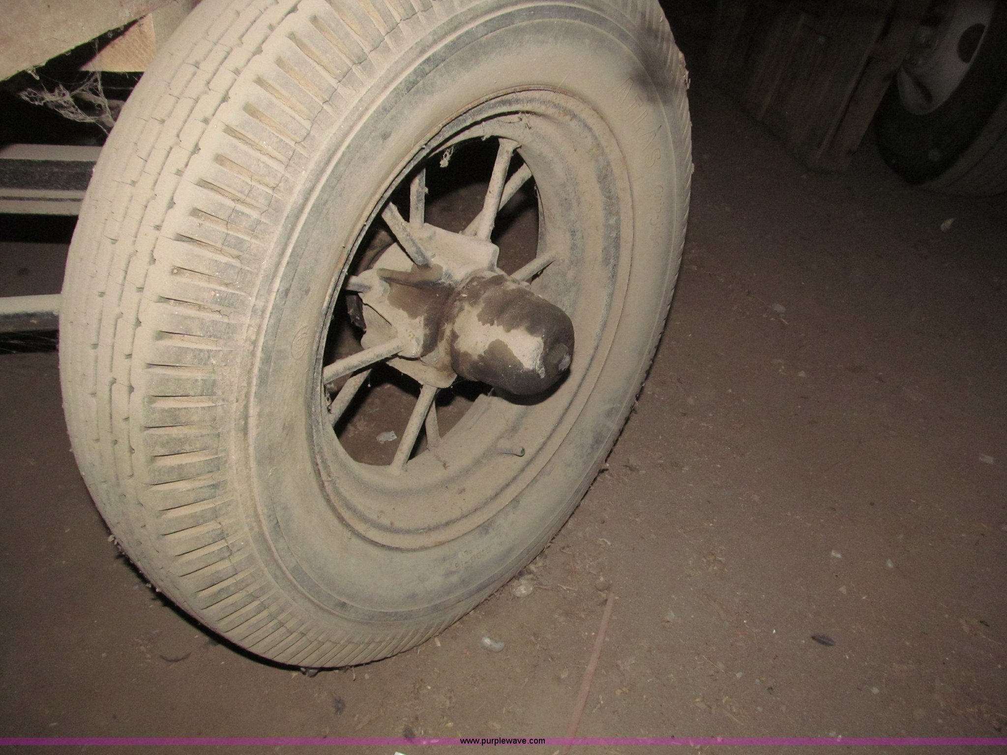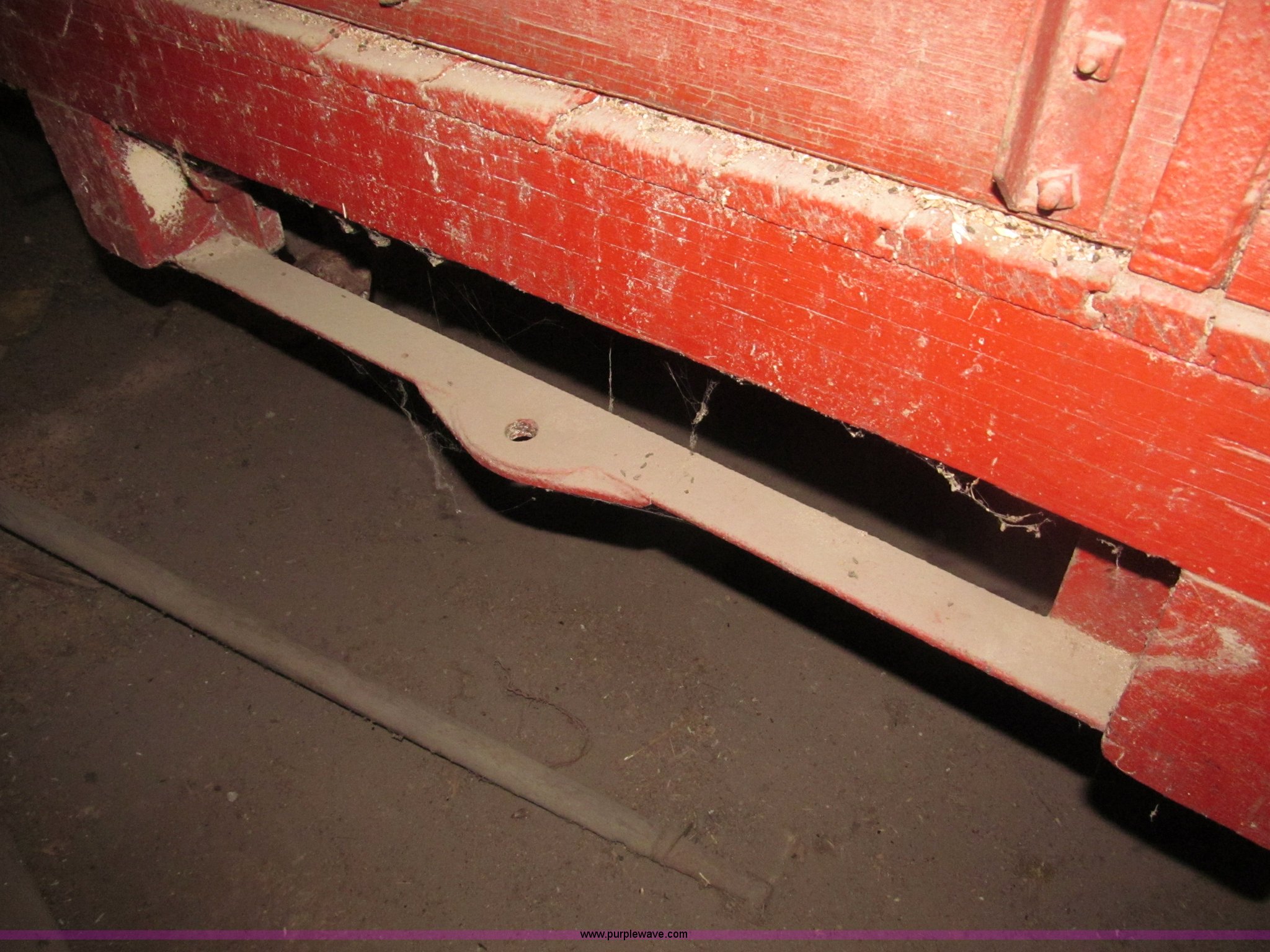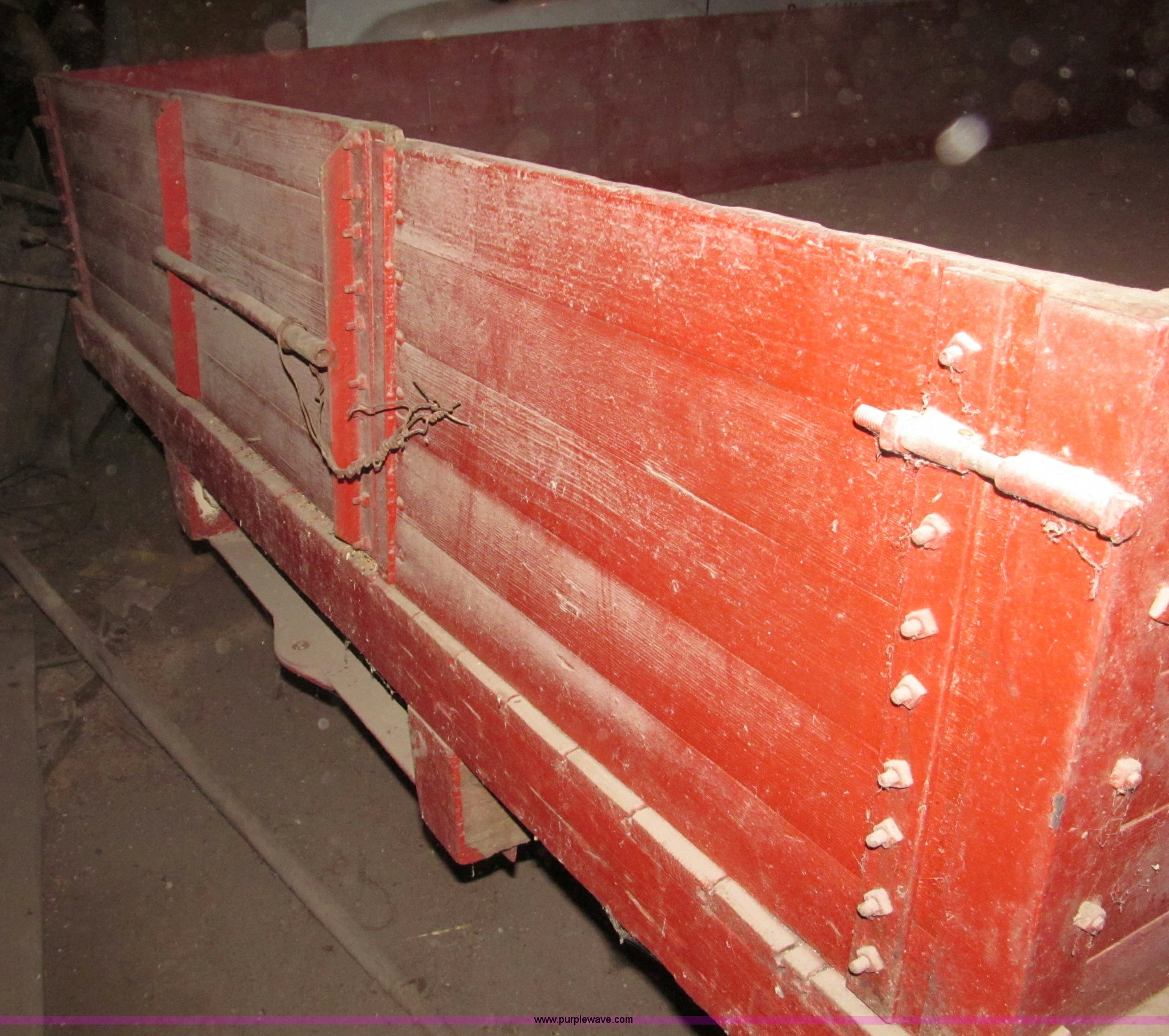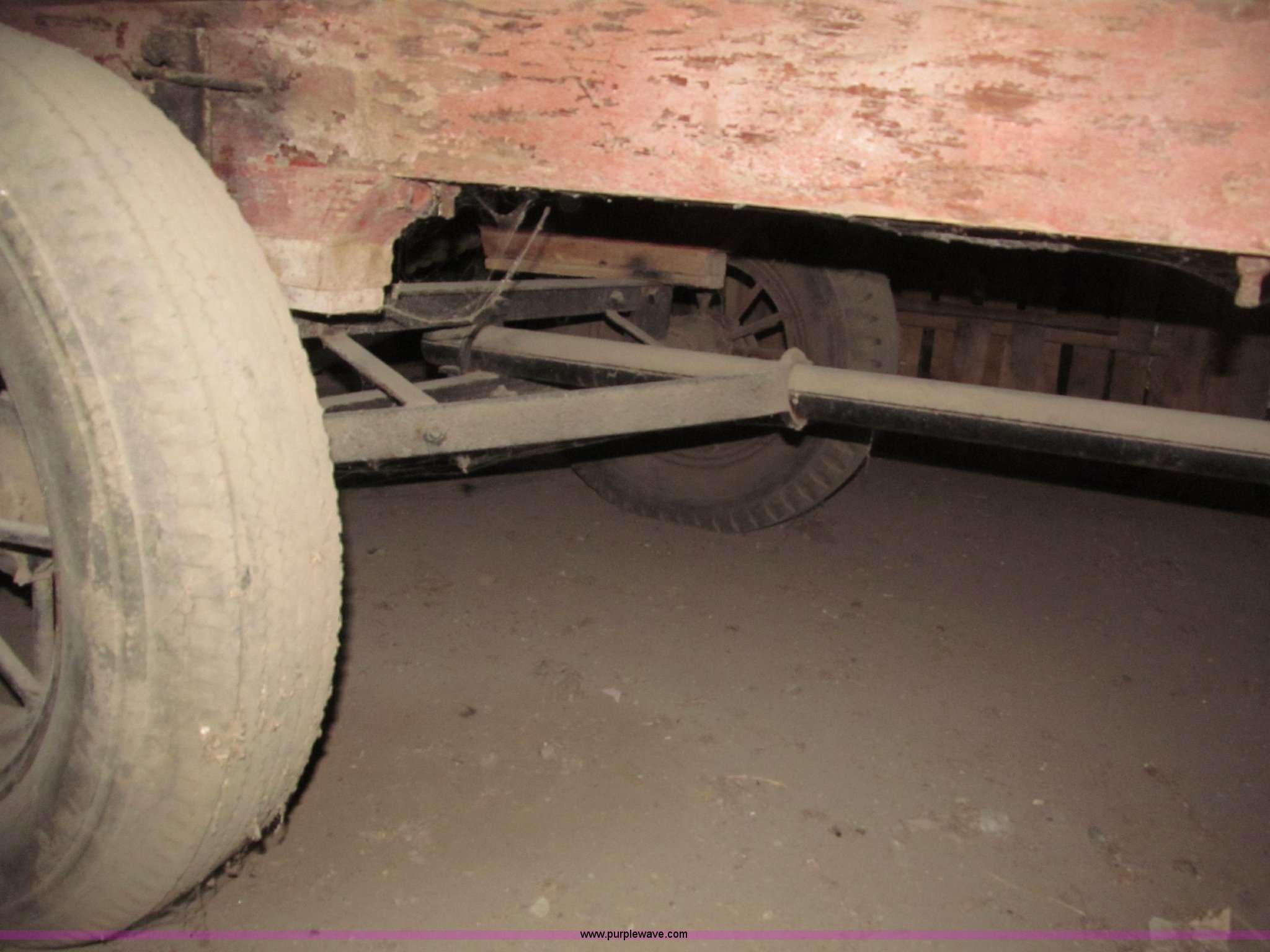 Purple Wave is selling a used Other Grain or Fertilizer Handling in Nebraska. This item is a Radio Flyer 2000 pull type wagon with the following: 14' x 7', 16" high wood sides, John Deere running gear, Wood bed, 27"W removable end gate, Entire end gate removable, Rear hitch, Pin hitch, Spoked rims, 7.00-16 and 6.00-16 tires, 4 ply, Wheel bearings replaced in 2000, Left rear wheel hub loose, Contents not included