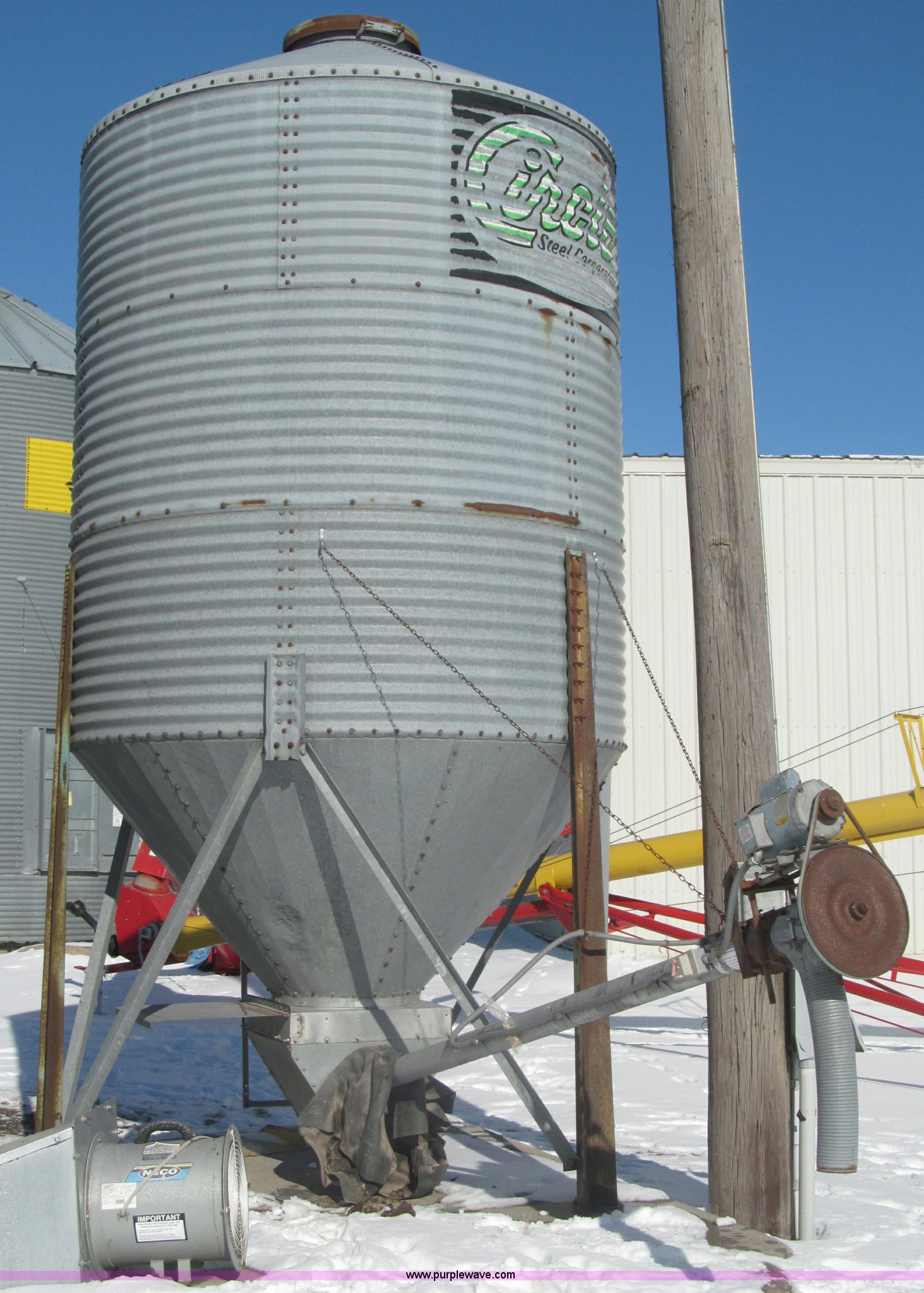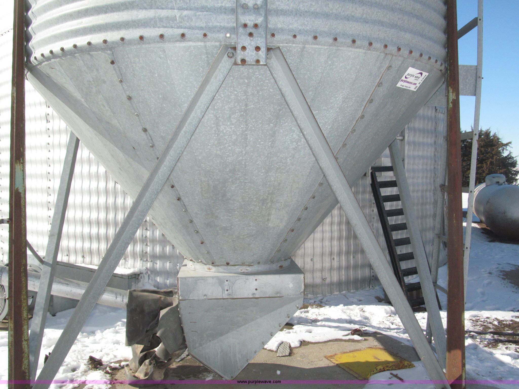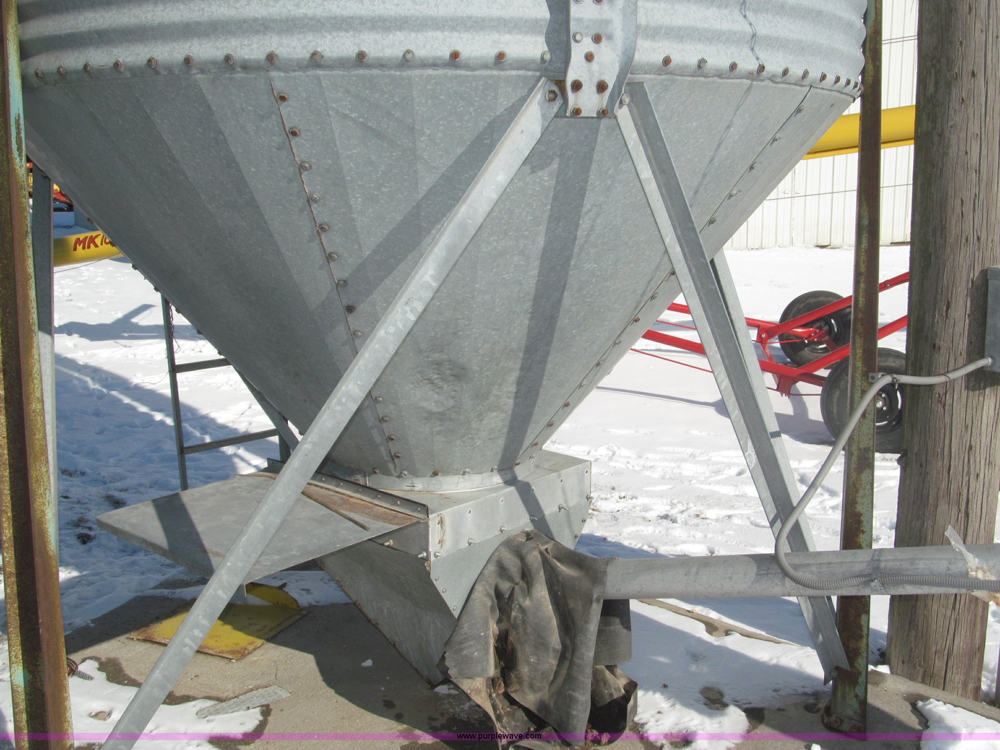 Purple Wave is selling a used Other Grain or Fertilizer Handling in Nebraska. This item is a Circle 10 ton bulk tank with the following: 4" x 9' discharge auger, 24" downspout, Baldor 1 HP single phase motor, 115/230V, No belt/pulley guard, Carlon E98RSC on/off switch, Auger support chains, Approx. 8'W x 16.5'H, Access ladder, Hinged lid, Rubber wrap on bottom of auger due to leak, Slide gate stuck, Cosmetic damage, Last used three years ago for bean meal