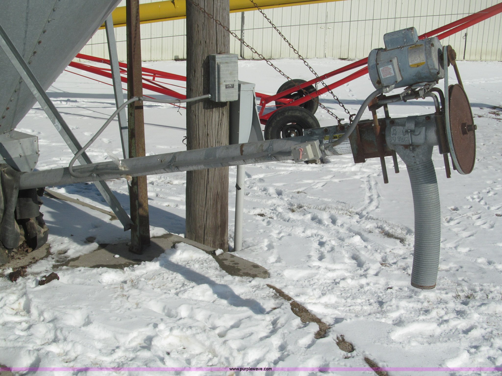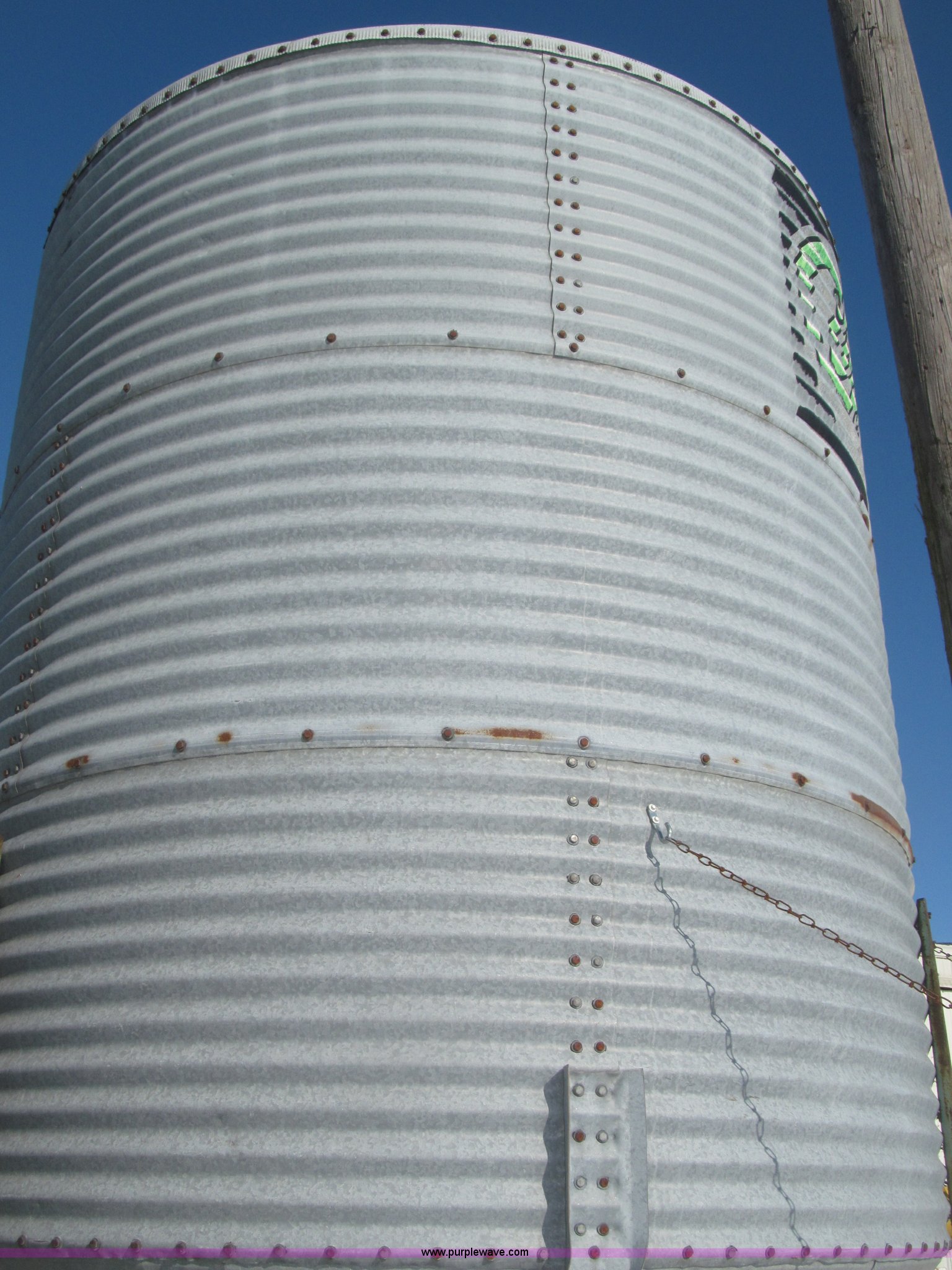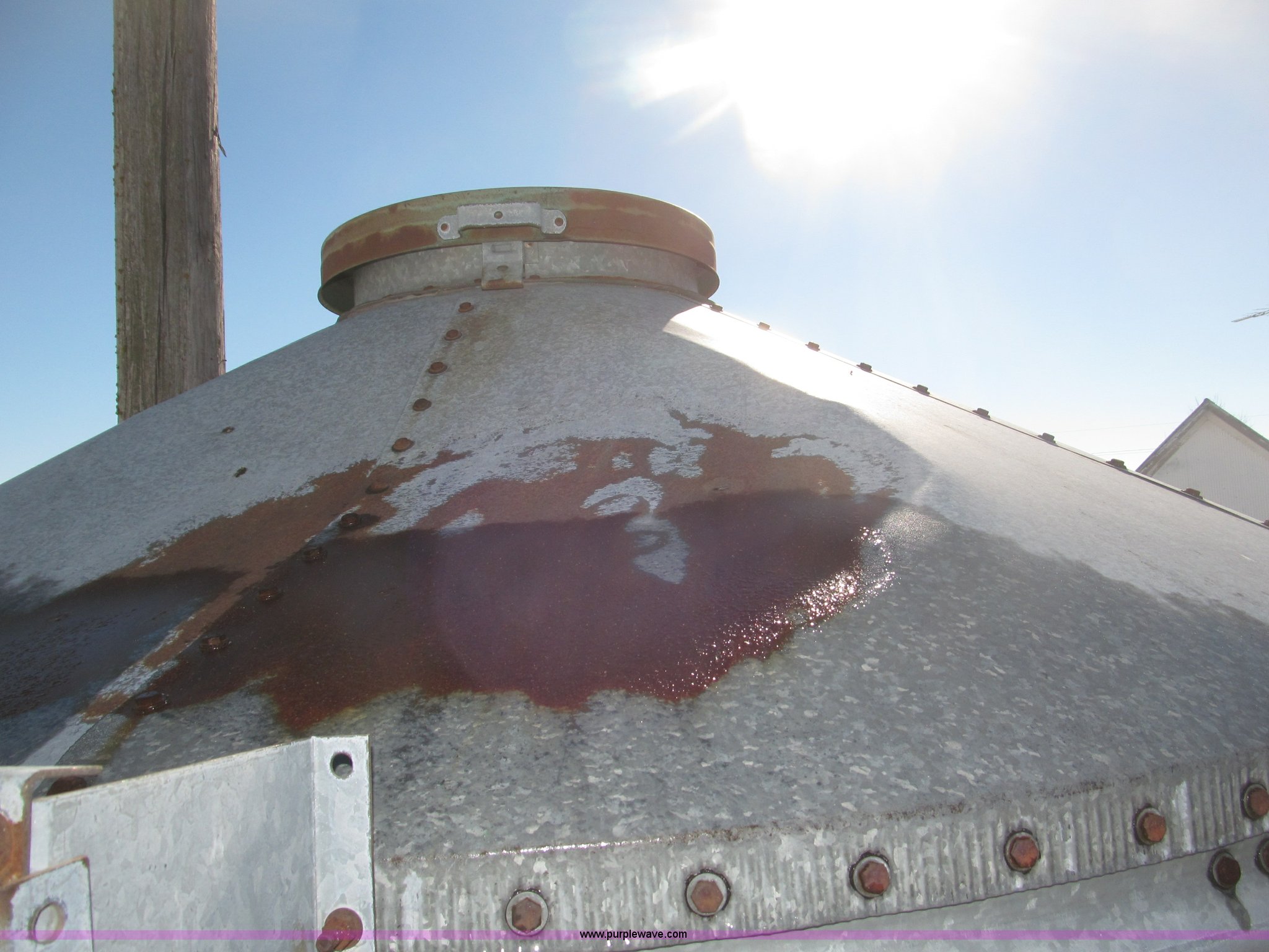 Purple Wave is selling a used Other Grain or Fertilizer Handling in Nebraska. This item is a Circle 10 ton bulk tank with the following: 4" x 9' discharge auger, 24" downspout, Baldor 1 HP single phase motor, 115/230V, No belt/pulley guard, Carlon E98RSC on/off switch, Auger support chains, Approx. 8'W x 16.5'H, Access ladder, Hinged lid, Rubber wrap on bottom of auger due to leak, Slide gate stuck, Cosmetic damage, Last used three years ago for bean meal