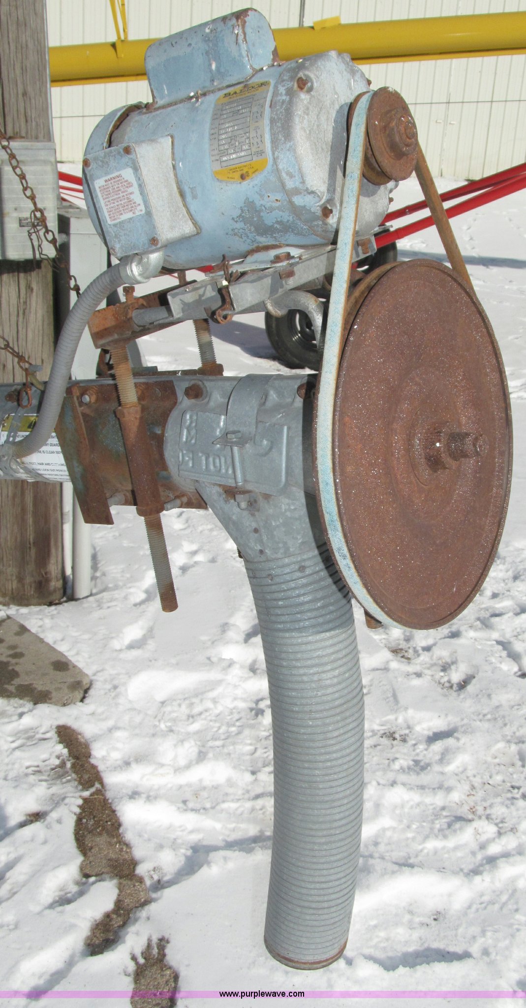 Circle 10 ton bulk tank. 4" x 9' discharge auger, 24" downspout, Baldor 1 HP single phase motor 115/230V, No belt/pulley guard, Carlon E98RSC on/off switch, Auger support chains, Approx. 8'W x 16.5'H, Access ladder, Hinged lid, Rubber wrap on bottom of auger due to leak, Slide gate stuck, Cosmetic damage, Last used three years ago for bean meal. Shipping quotes available. Bloss Family Farms. 62518 708 Rd. Pawnee City, NE 68420