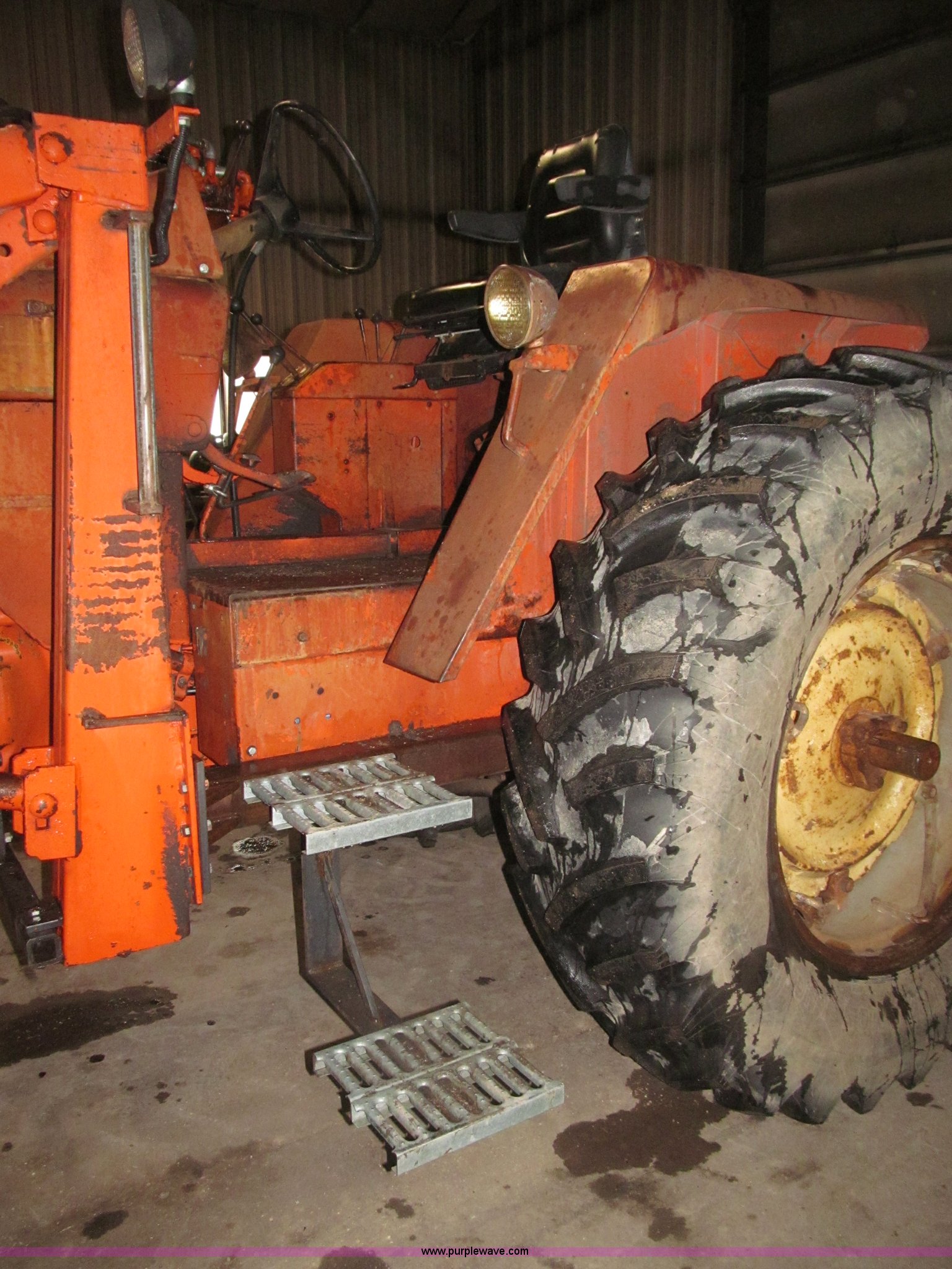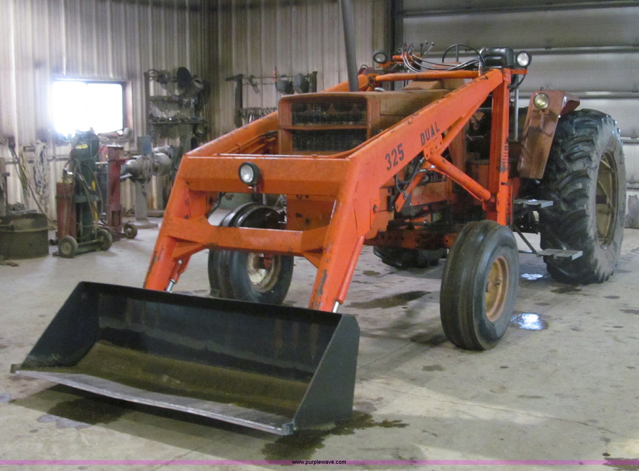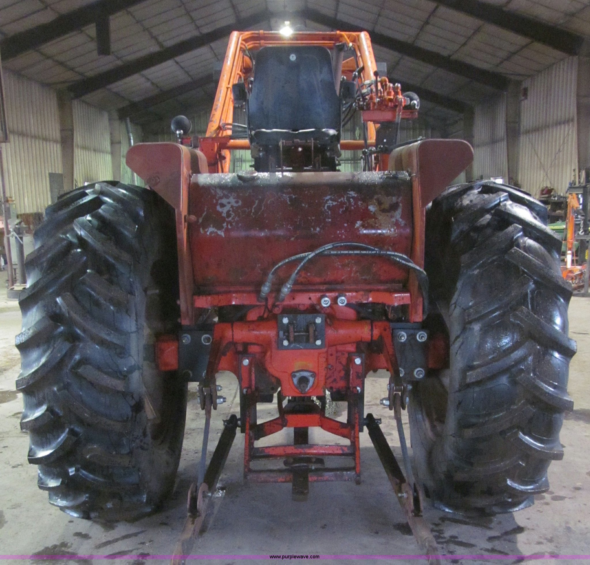 Purple Wave is selling a used Tractor in Nebraska. This item is a 1965 Allis-Chalmers 190XT row crop tractor with the following: 1,212 hours on meter, Hour meter may not be functional, Allis Chalmers 4.9L six cylinder turbo diesel engine, Partial powershift transmission, 8F-2R gears, Aftermarket spring suspension seat, Category 2 tree point, Missing top link, Loader mounted custom made quick attach, Designed for John Deere accessories, 53 1/8"W, Draw bar, (2) front hydraulic remotes, (4) rear hydraulic remotes, Dyal 325 loader, Front head lights, Toolbox under seat, Rear fuel tank, Custom built aluminum steps, Power adjustable rear rims, 145" maximum dump height to pin, 105" wheel base, 10.00-16 front ribbed tires, 18.4-34 rear lugged tires, 7,945 lbs lbs. base operating weight, Bucket replaced January 2013, Engine sleeves, pistons, rings, and bearings replaced 2011, Starter rebuilt 2012, Exhaust pipe is loose, Serial 1907295DXT