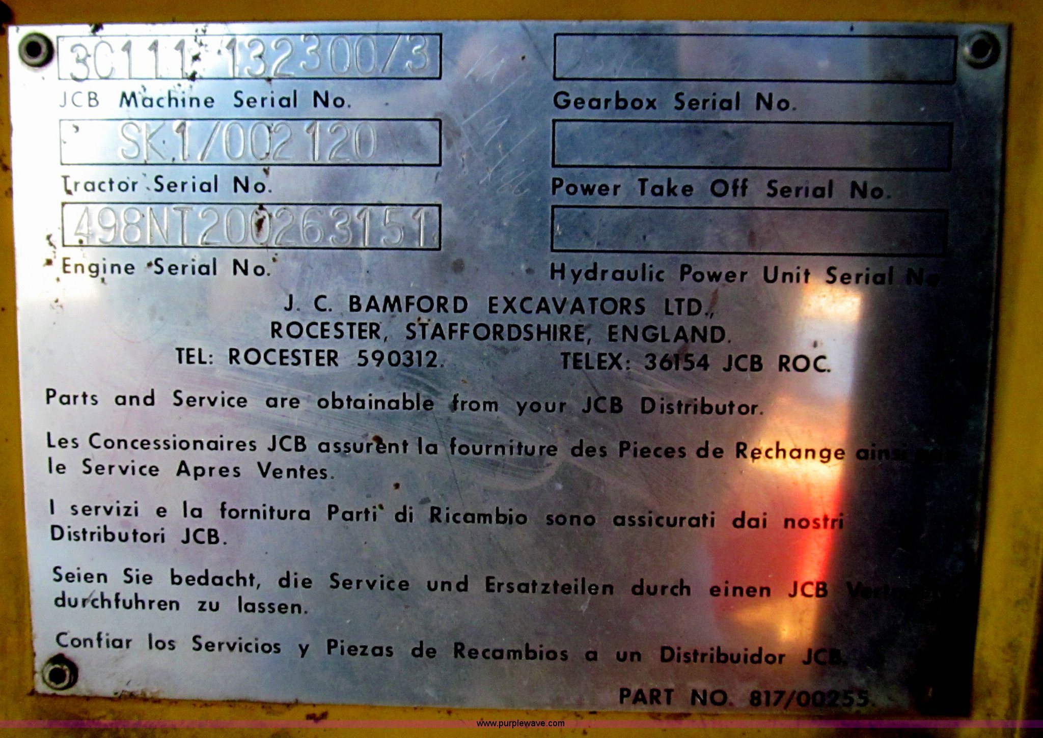 JCB backhoe. JCB Leylan 4-98NT four cylinder diesel engine 85 HP, JCB synchroshuttle transmission 4F-4R gears, 14.3' maximum digging depth, 1.3 yard bucket capacity, 16.9-28 rear tires, Tractor serial SK17002120, Engine serial 498NT200263151, Machine serial 3C111 13230073. View equipment video. Shipping quotes available. 3907 Frische Lane. Dalhart, TX 79022