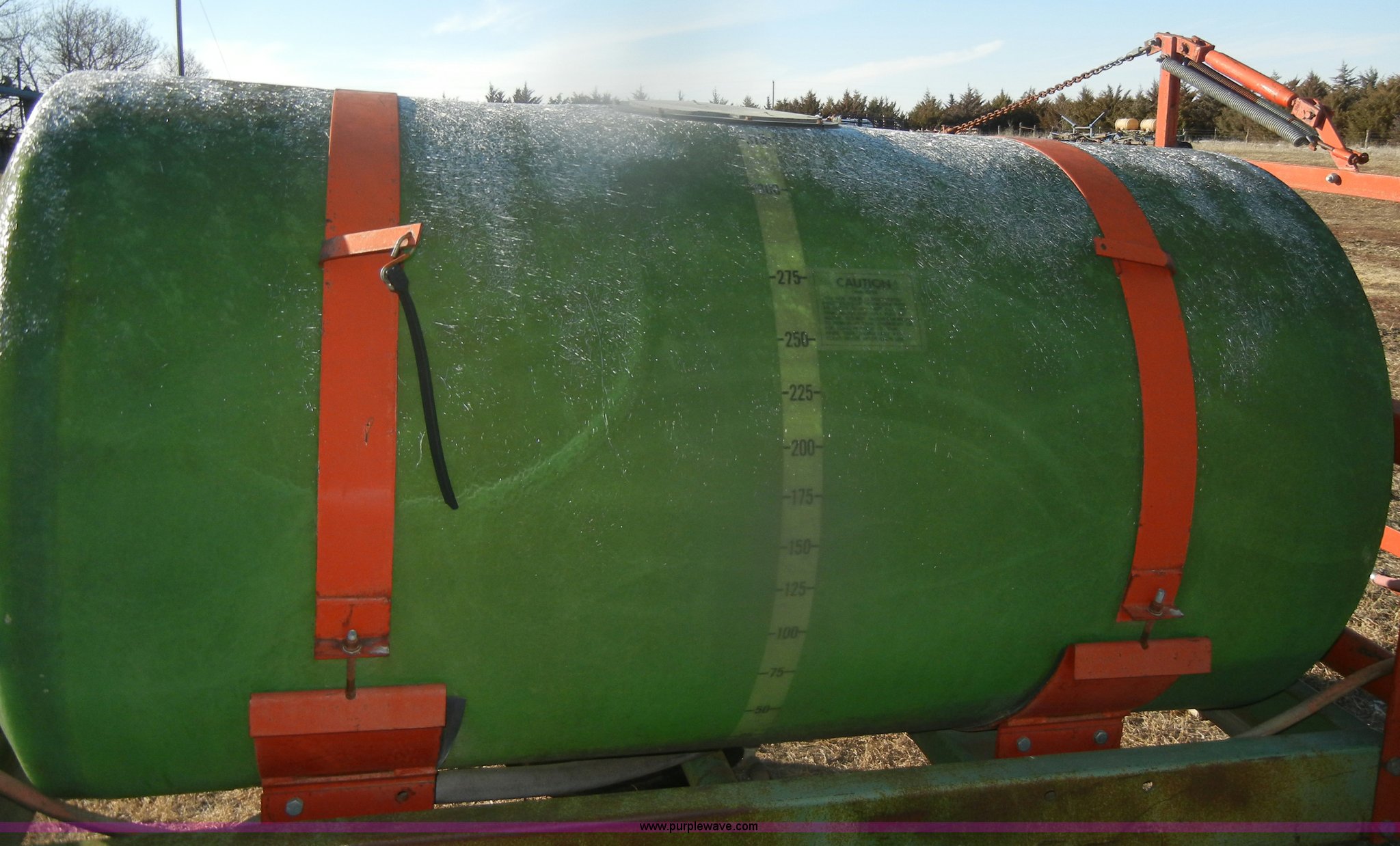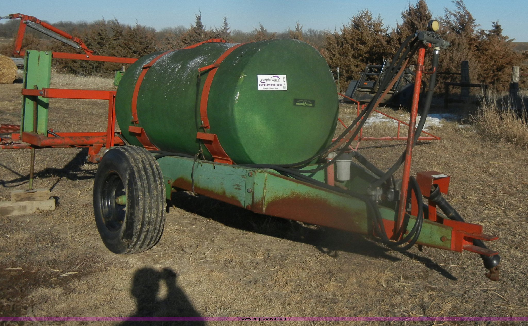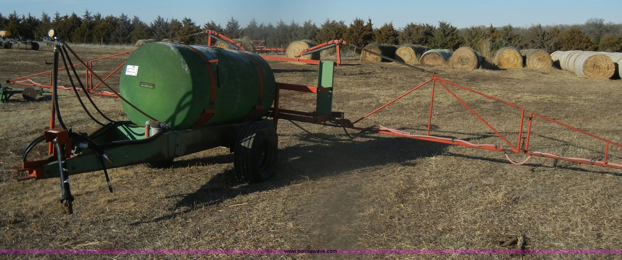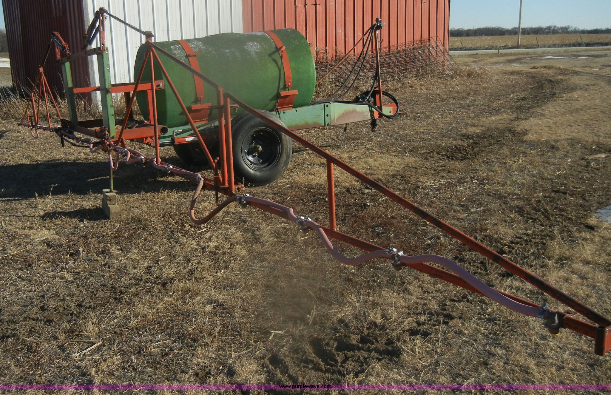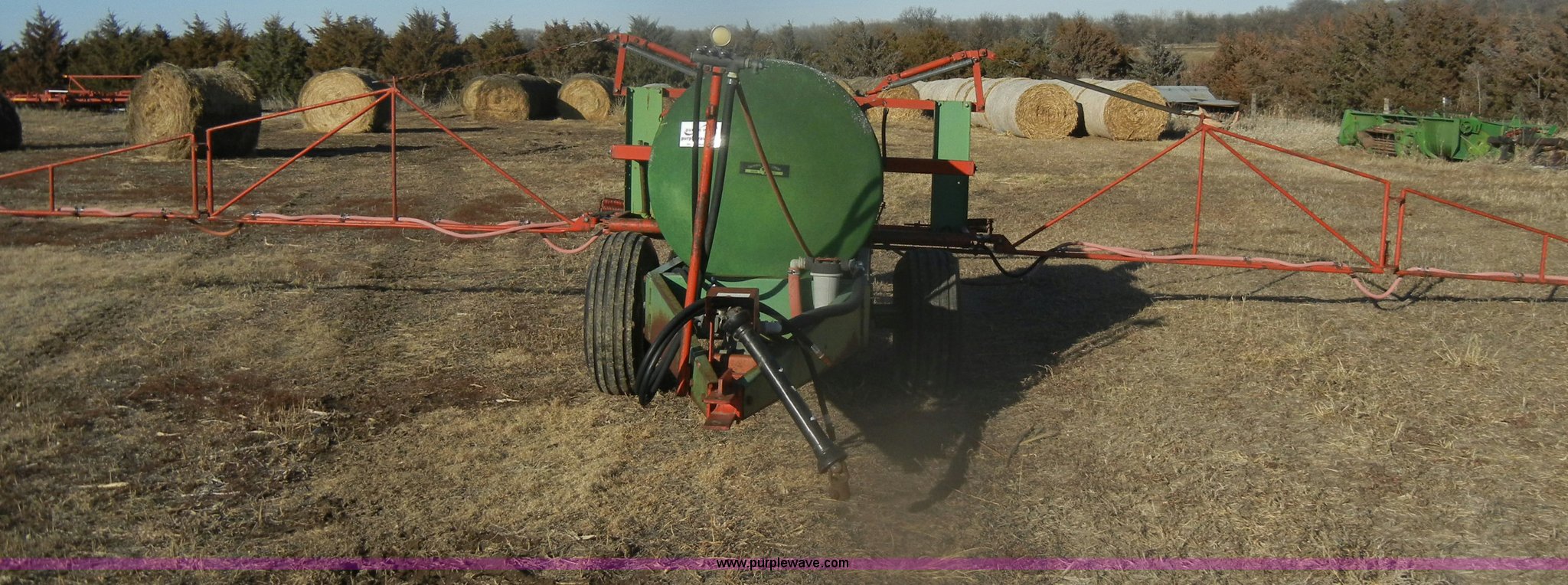 Purple Wave is selling a used Applicator Pull Type in Kansas. This item is a Continental 315g poly sprayer with the following: 35' boom, 20" nozzle spacing, Hydraulics, Pin hitch, 540 PTO, 9.5L-15 tires, One flat