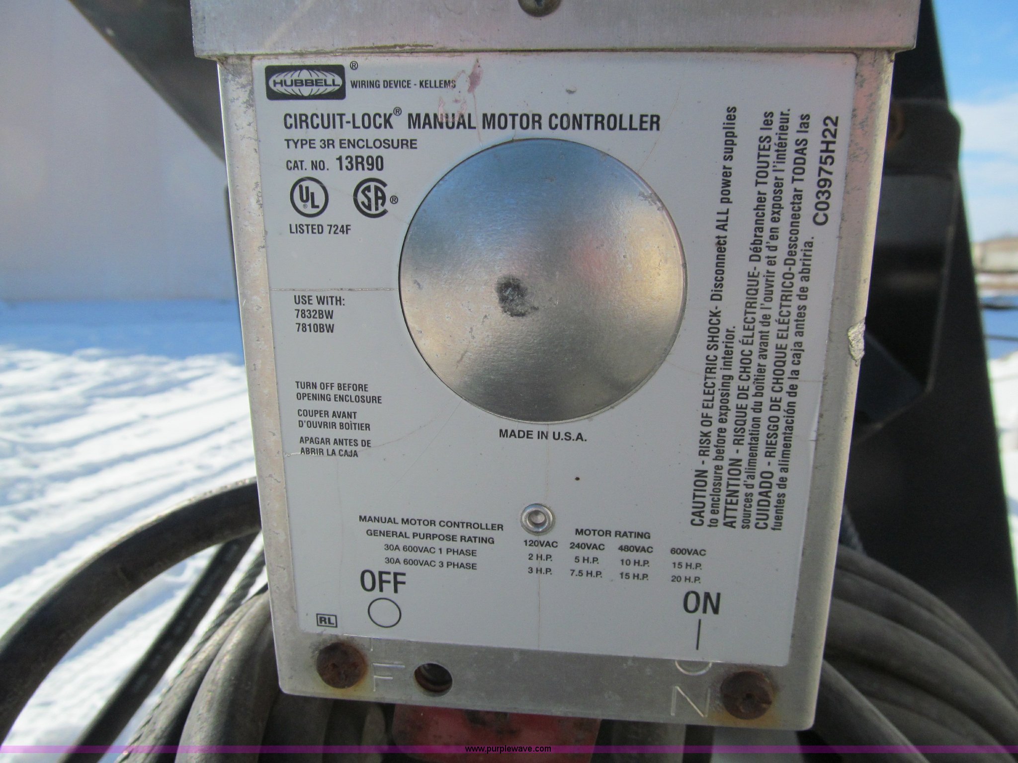 Purple Wave is selling a used Auger or Conveyor in Iowa. This item is a Convey All TC1055 portable conveyor with the following: 10 HP 230V electric motor, Hubbell Curcuit-Lock motor controller, 55'L, 12"W rubber conveyor belt, Manual raise and lower, Front clevis hitch, Hydraulic jack stand, P215/75R15 tires, Serial 1403023750