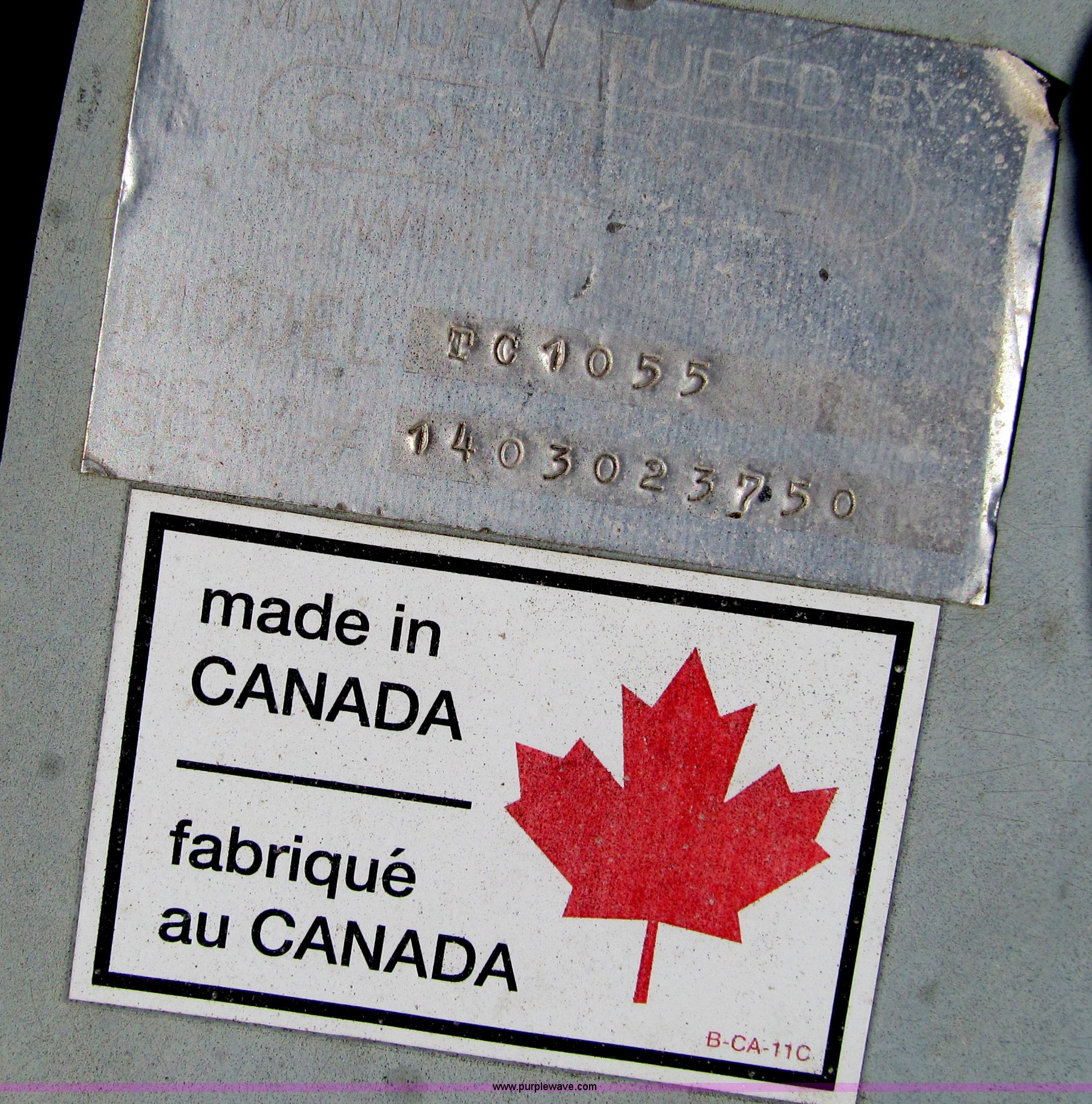 Convey All TC1055 portable conveyor. 10 HP 230V electric motor Hubbell Curcuit-Lock motor controller, 55'L, 12"W rubber conveyor belt, Manual raise and lower, Front clevis hitch, Hydraulic jack stand, P215/75R15 tires, Serial 1403023750. Shipping quotes available. Gavilon Ag Service. 300 Osage Street. Creston, IA 50801