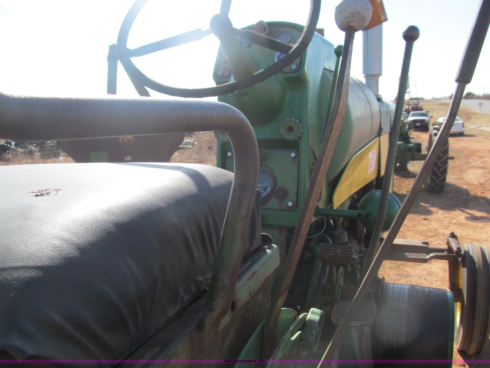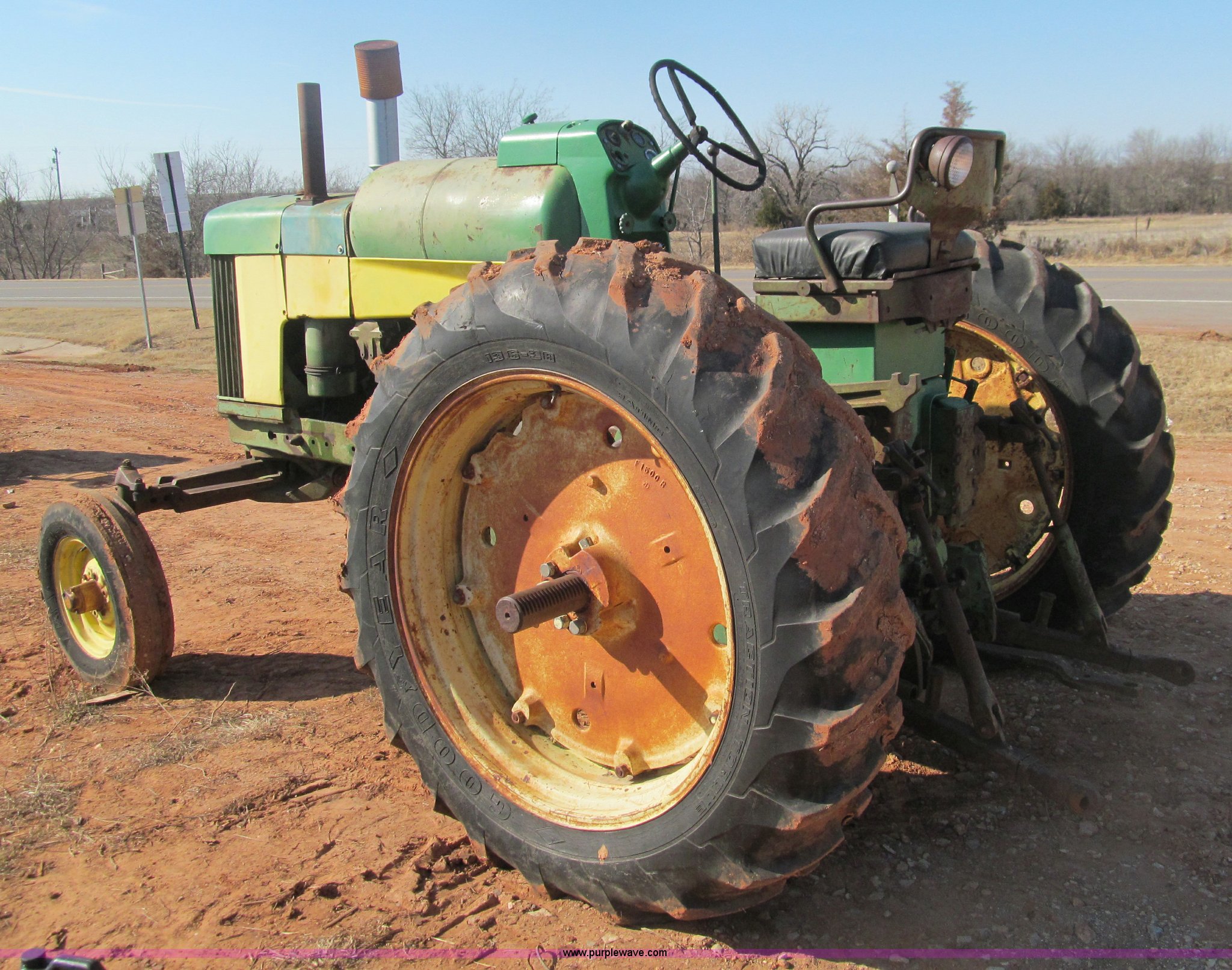 Purple Wave is selling a used Tractor in Oklahoma. This item is a 1955 John Deere 630 tractor with the following: 1,821 hours on meter, Propane engine, 6F-1R gears, PTO, Hydraulics, Three point, 6.00-16 front tires, 13.6-38 rear tires, Propane tank with new valves