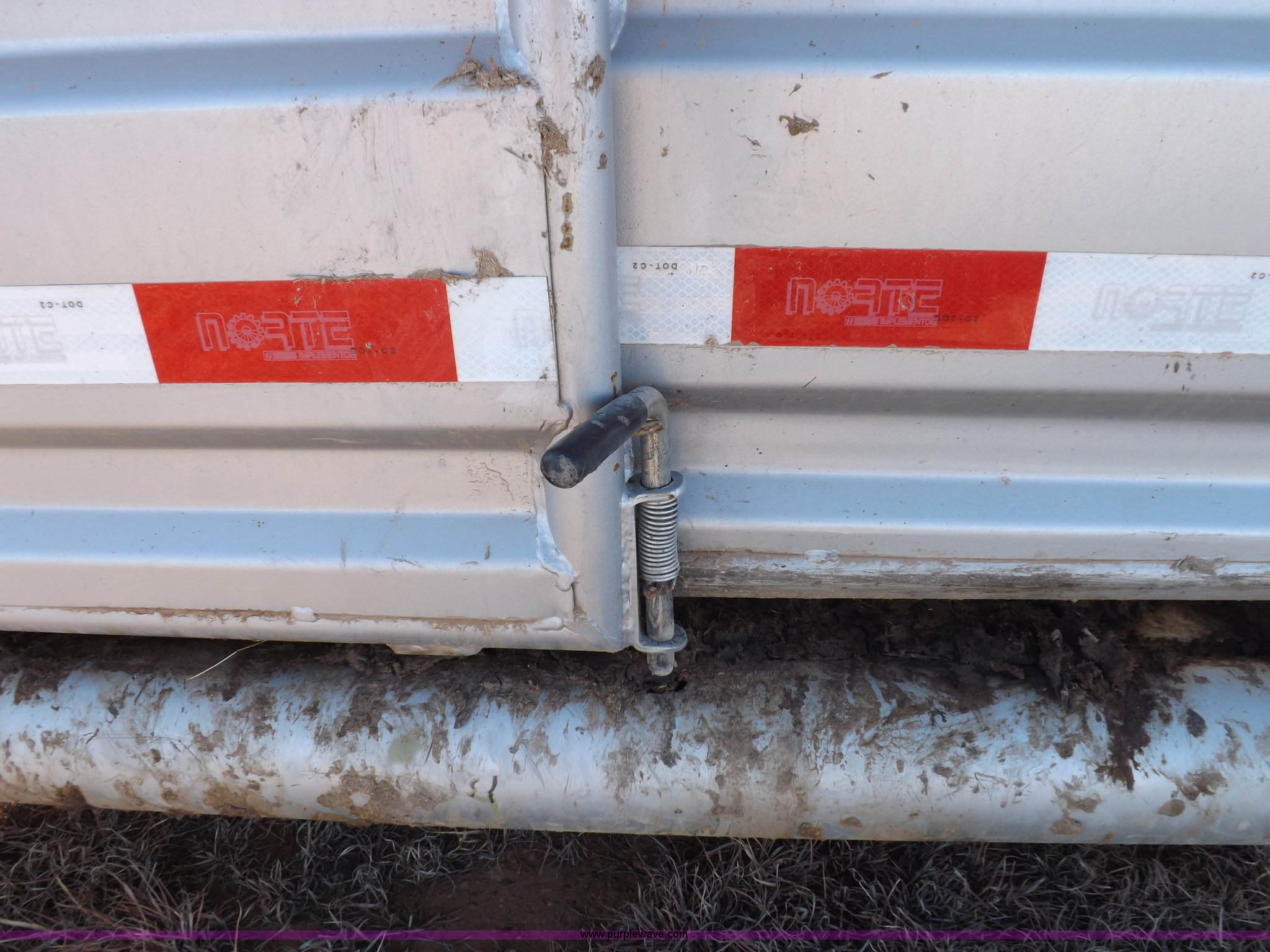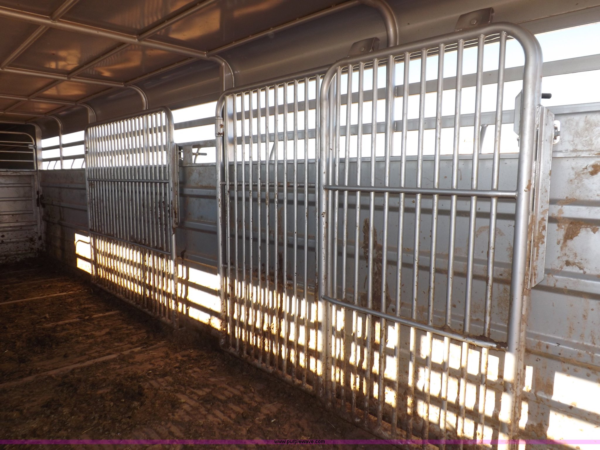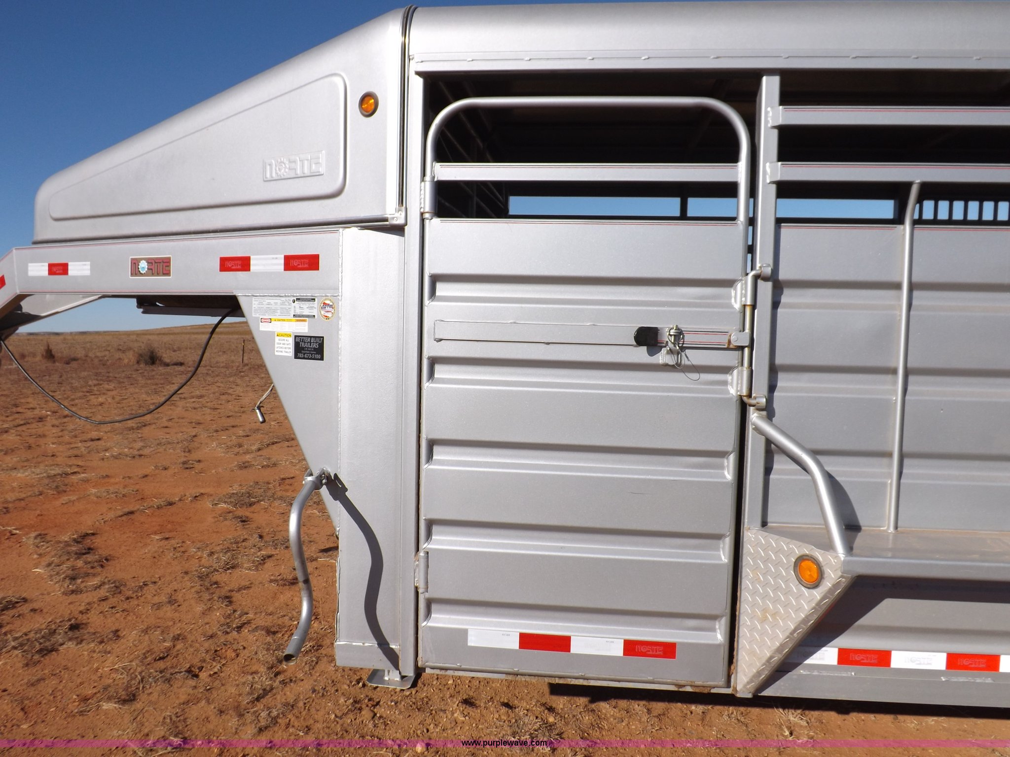 Purple Wave is selling a used Livestock Trailer in Kansas. This item is a 2011 Norte 24' gooseneck livestock trailer with the following: 24' x 6'8", (2) divider gates, One has sort gate, (3) compartment, Gated storage over gooseneck, Driver side access door, Full rear swing door with half slide panel, Trailer break-away device, Adjustable hitch, Taillight protectors, 2 5/16" ball, Seven pin RV electric plug, 7,000 lb axles, 235/85R16 tires, 14 ply, Spare tire