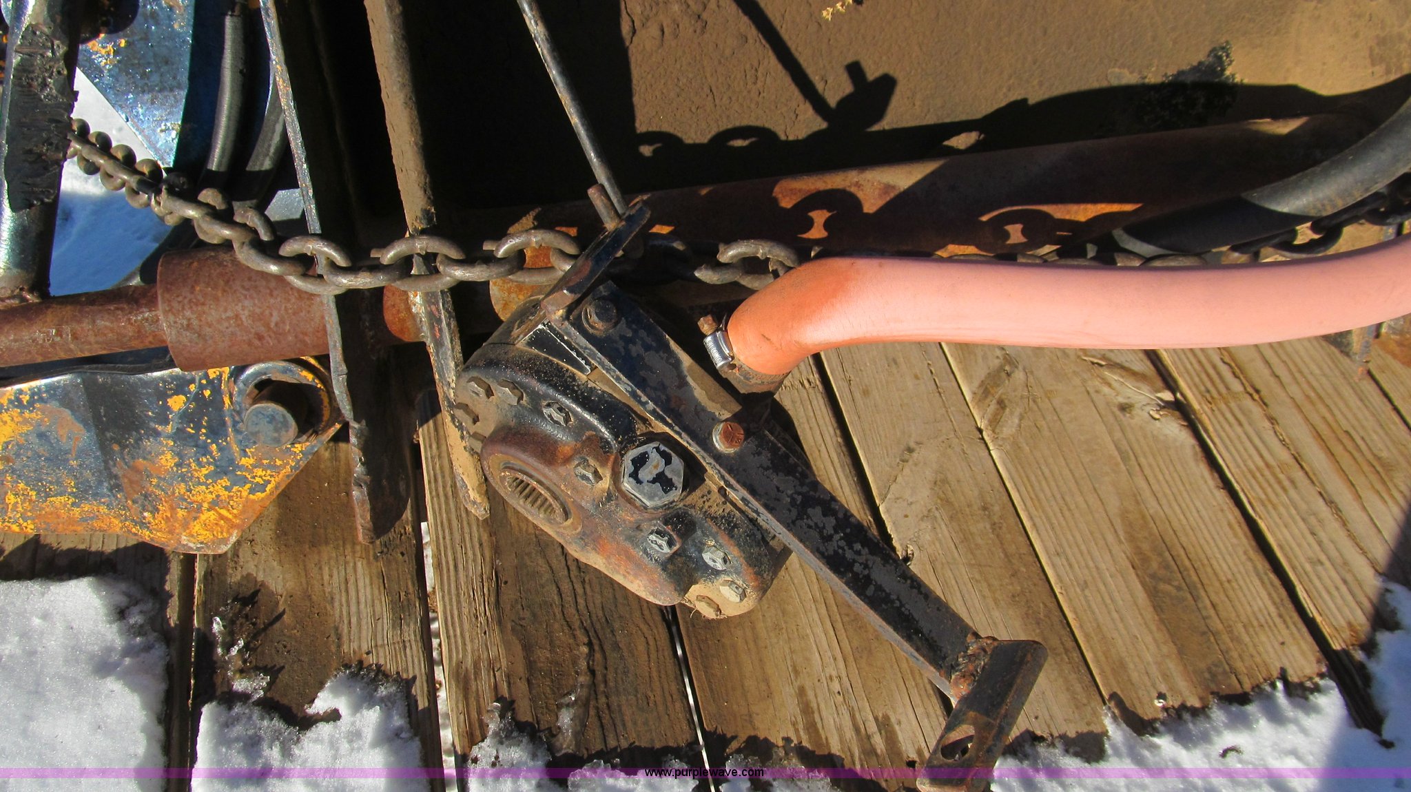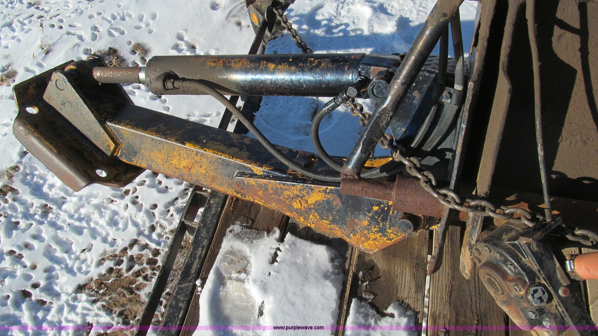 Purple Wave is selling a used Ag Tractor Loader or Attach. in Texas. This item is a John Deere backhoe with the following: 1000 PTO, Three point, Hydraulic oil tank, Stabilizing arms, Bucket
