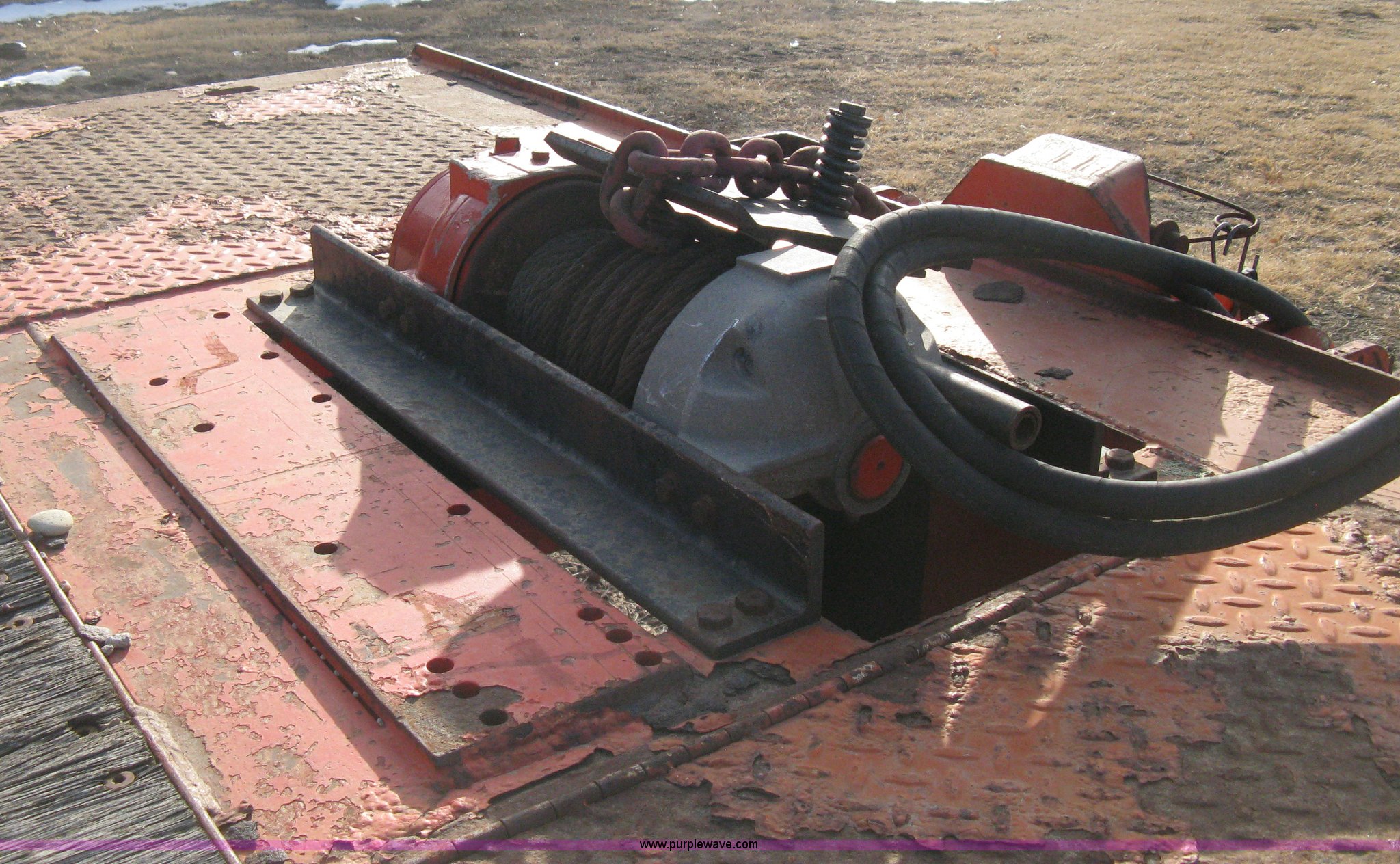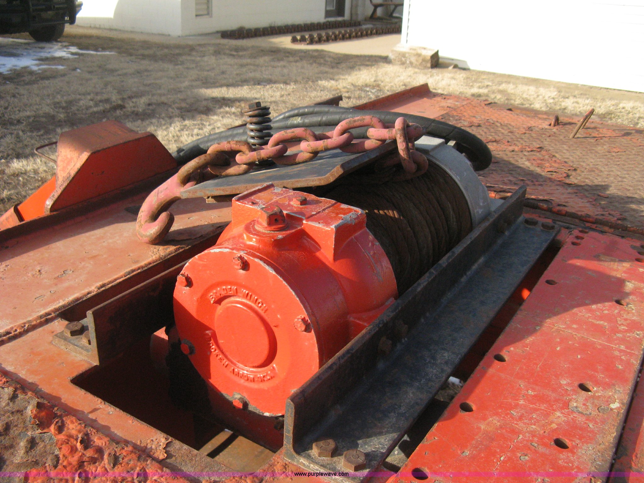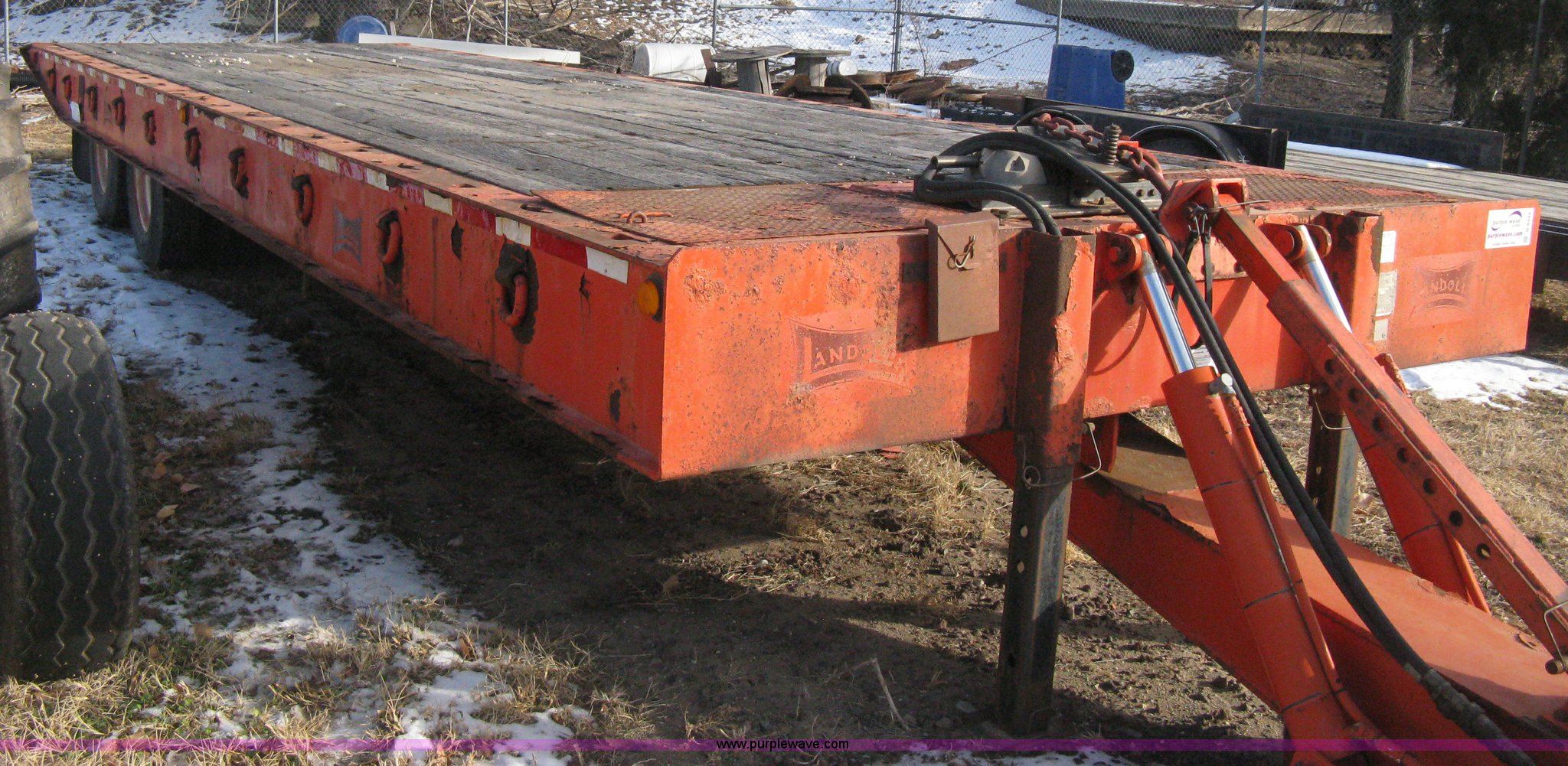 Purple Wave is selling a used Equip. Trailer in Kansas. This item is a 1996 Landoll Haul 0LL tilt deck equipment trailer with the following: 31'L x 102"W, Hydraulic drop tongue, Two cylinder, Pintle hitch, Break-away chains, Two post landing gear, Braden recessed hydraulic driven winch, Side mount tilt and winch control levers, Wood floor, Stake side pockets, Chain slot/pockets, (10) D-ring tie downs per side, Air brakes, Tandem axle, 10R17.5 tires, GVWR 50,000 lbs, GAWR 17,640 lbs