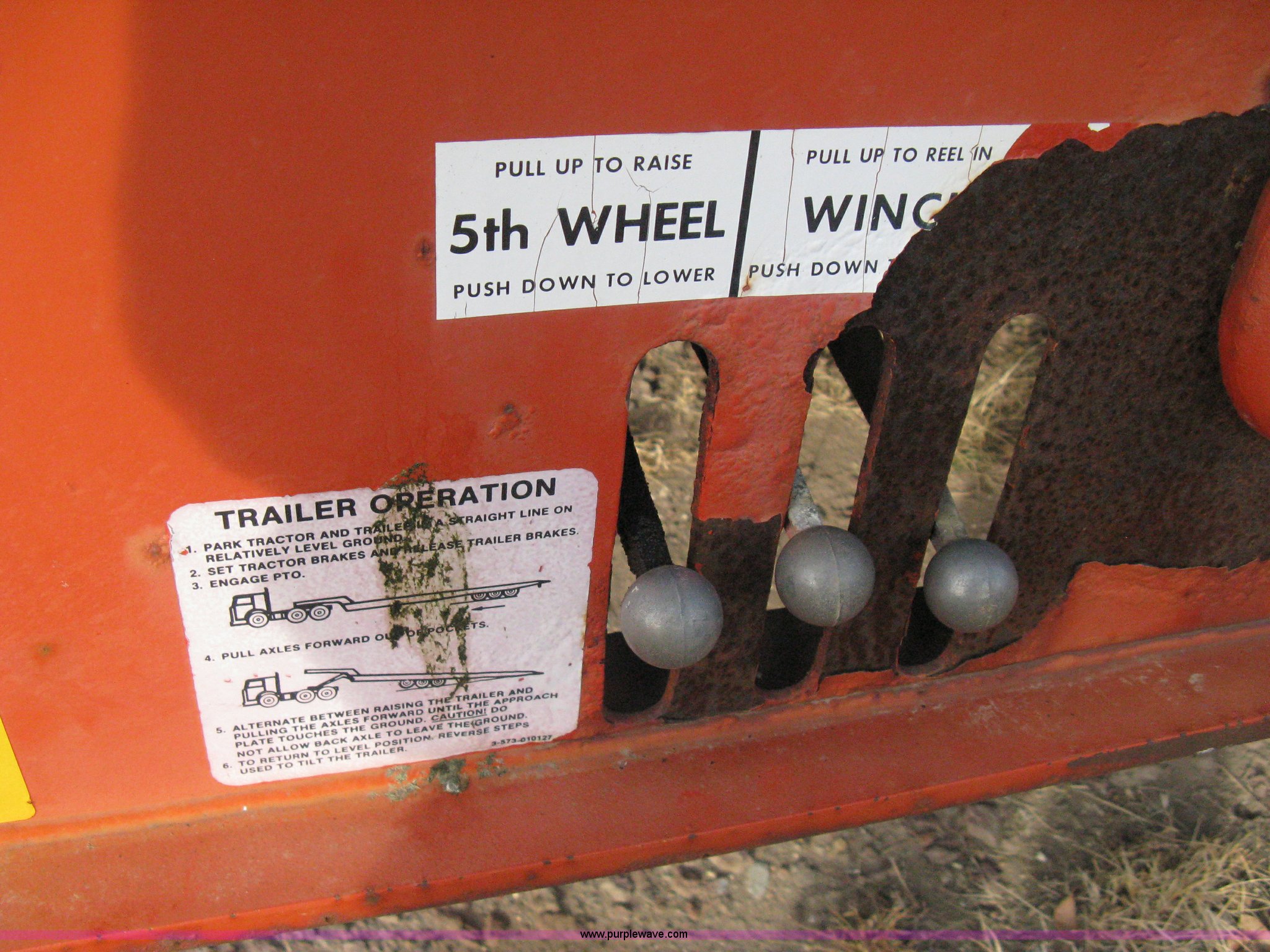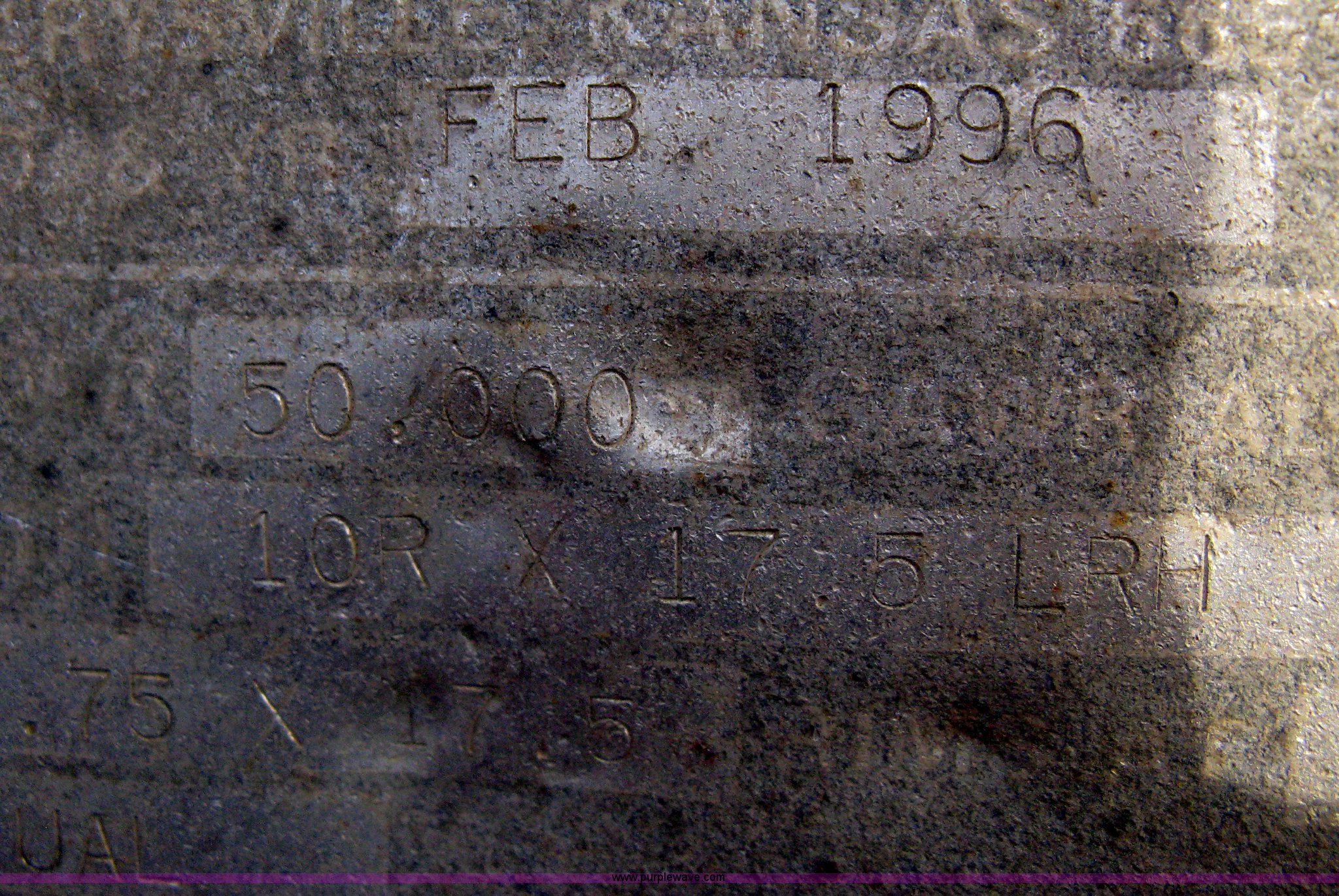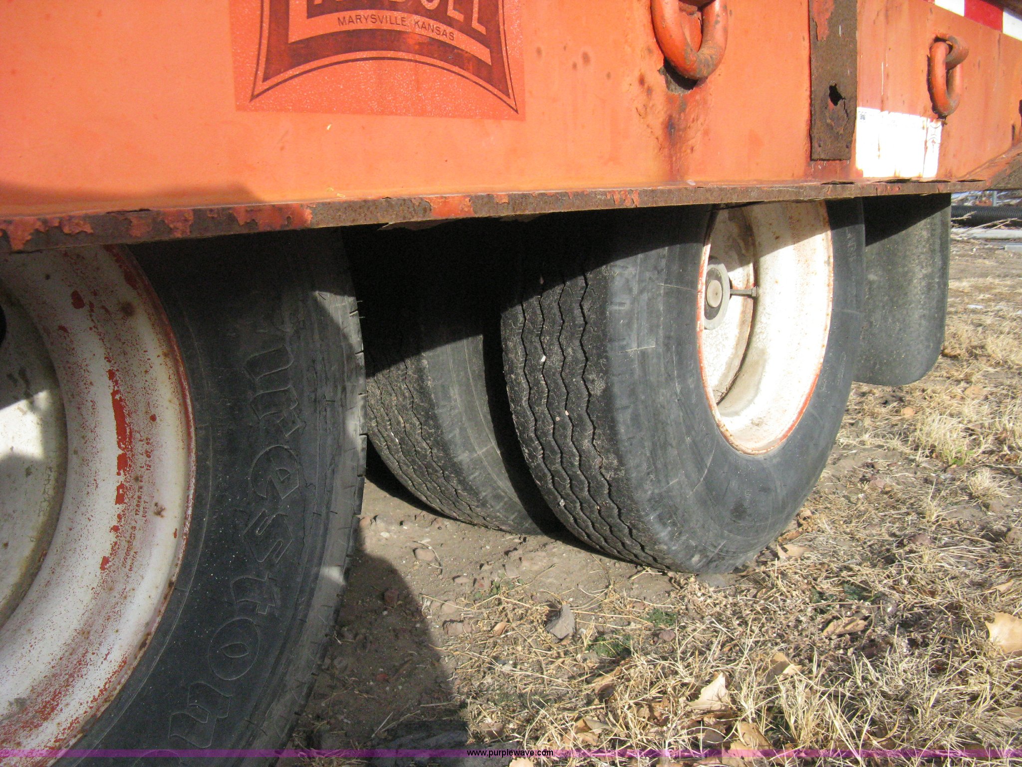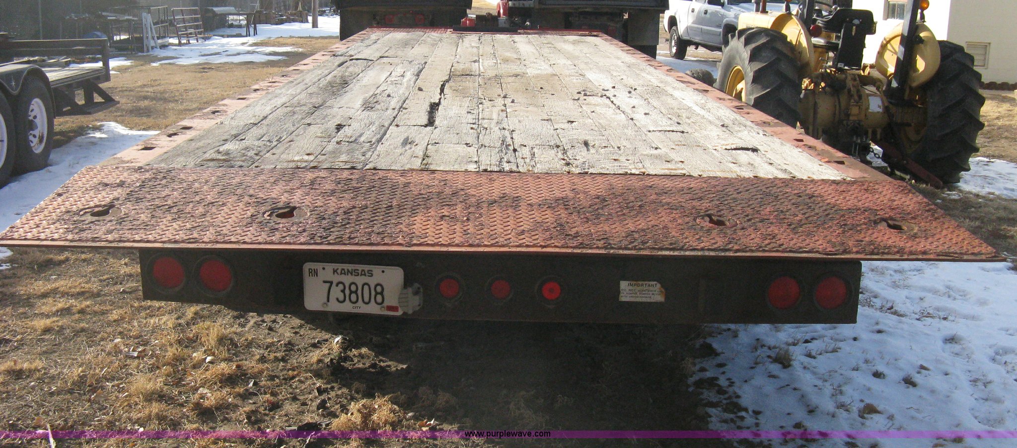Purple Wave is selling a used Equip. Trailer in Kansas. This item is a 1996 Landoll Haul 0LL tilt deck equipment trailer with the following: 31'L x 102"W, Hydraulic drop tongue, Two cylinder, Pintle hitch, Break-away chains, Two post landing gear, Braden recessed hydraulic driven winch, Side mount tilt and winch control levers, Wood floor, Stake side pockets, Chain slot/pockets, (10) D-ring tie downs per side, Air brakes, Tandem axle, 10R17.5 tires, GVWR 50,000 lbs, GAWR 17,640 lbs