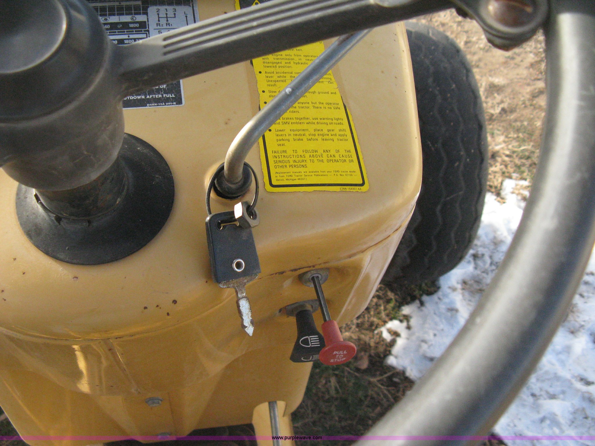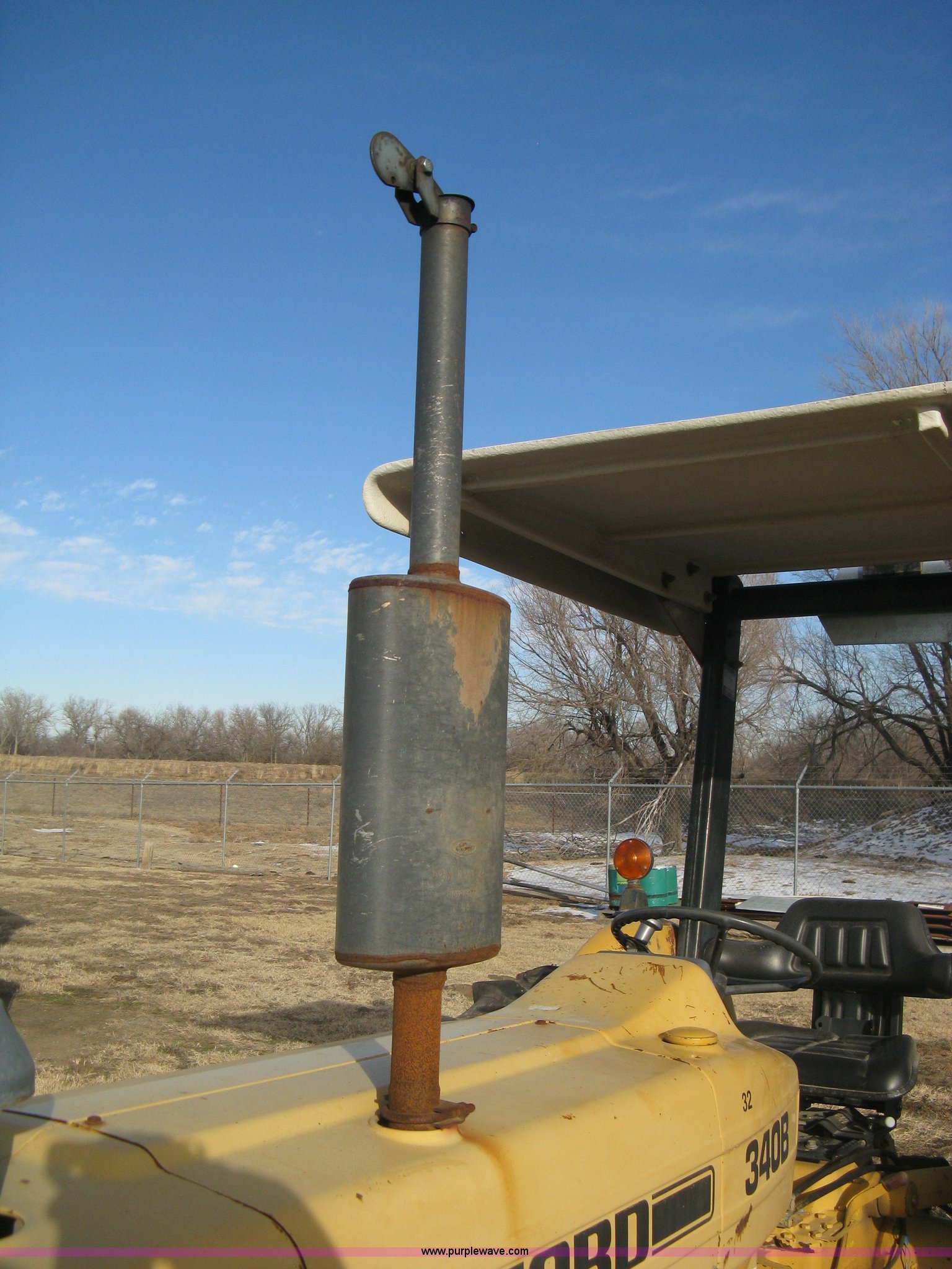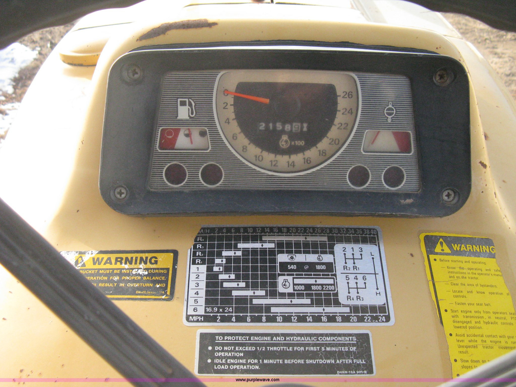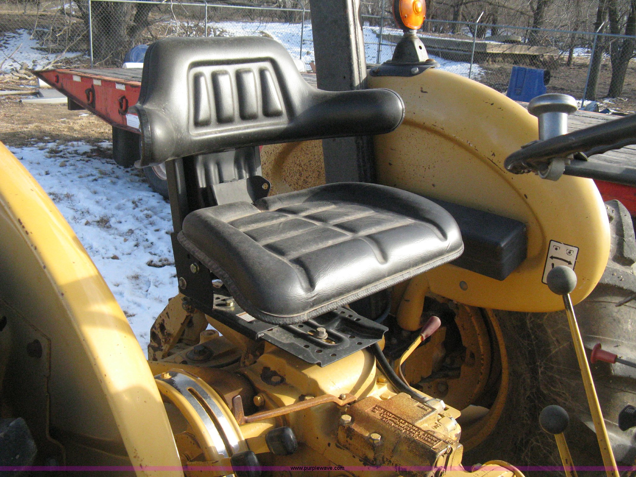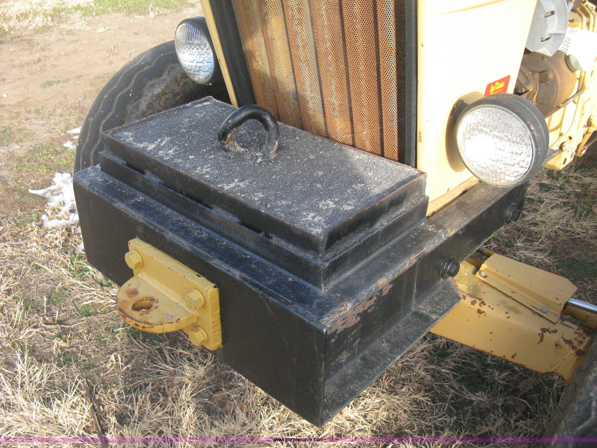 Purple Wave is selling a used Tractor in Kansas. This item is a Ford 340B industrial tractor with the following: 2,159 hours on meter, Three cylinder diesel engine, Three speed hi-lo transmission, 6F-4R gears, Two post roll bar with hard top fiberglass canopy, Foot and column throttle control, Suspension seat, Three point, Hydraulic remotes, Draw bar with receiver hitch attachment, 540 PTO, Inner/outer rear wheel weights, Front mounted weight with pin hitch, Work and caution lights, 11L-16SL front tires, 16.9-24 rear tires, Serial D9NN-7006-FA, Unit# 32