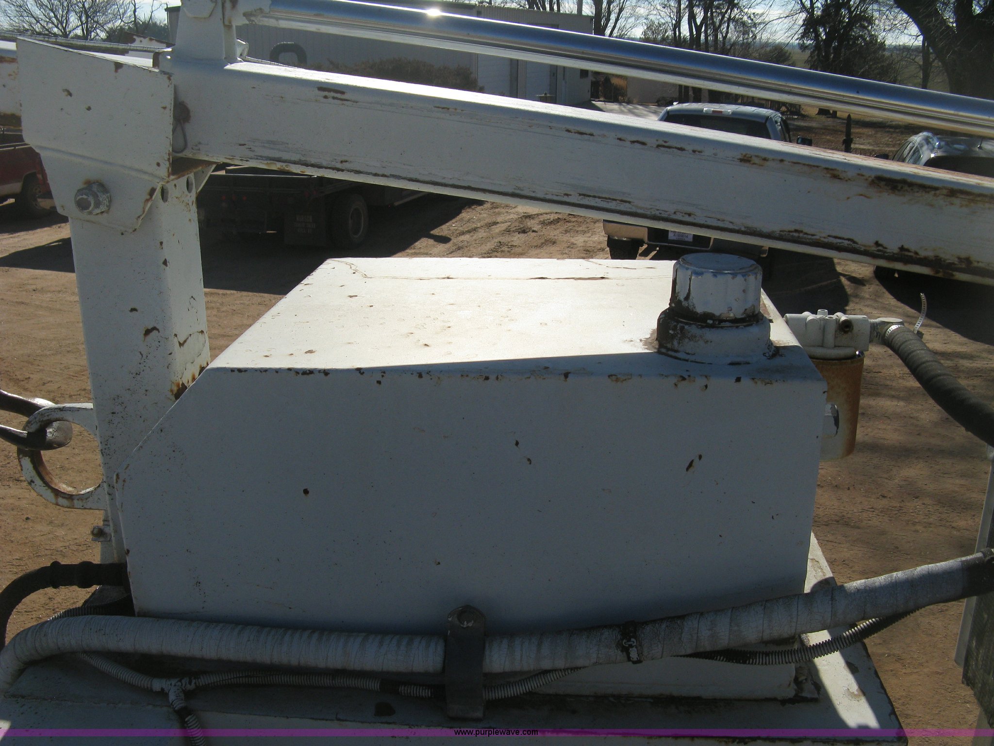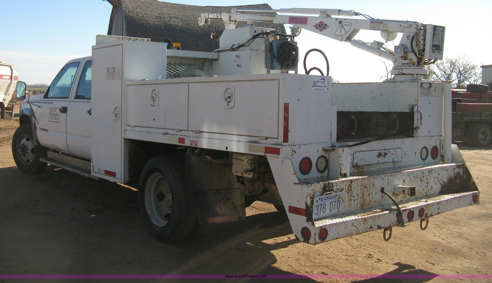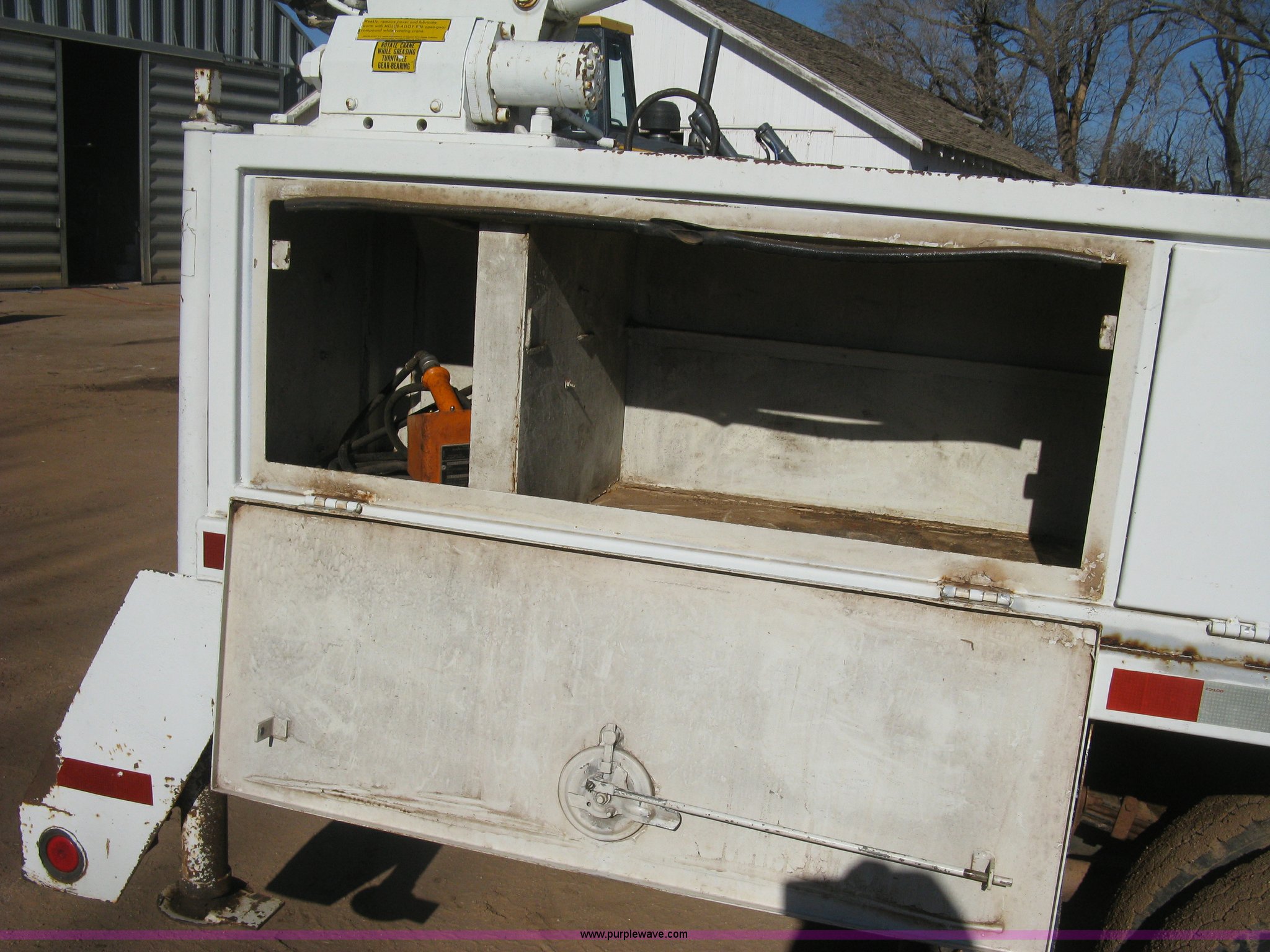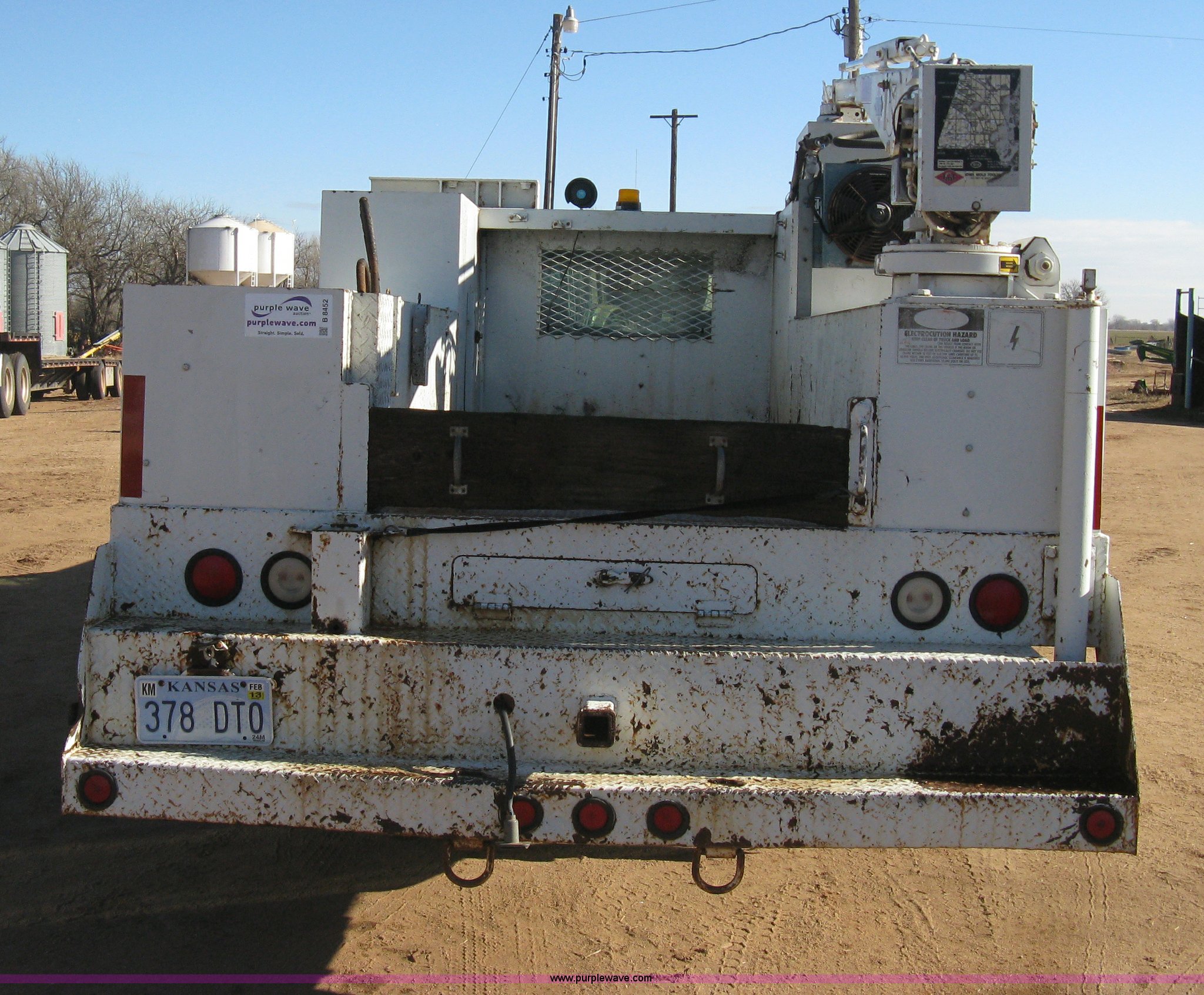 Purple Wave is selling a used Bucket Truck in Kansas. This item is a 1994 Chevrolet 3500 Crew Cab utility truck with the following: 135,296 miles on odometer, 9,266 hous on meter, 7.4L V8 OHV 16V gas engine, Five speed manual transmission, AC and heat, AM/FM, Manual windows and locks, Vinyl interior, Chelsea PTO, Alton 11'L x 90"W utility bed, Diamond plate floor, Step up bumper, (6) tool cabinets, Serial 901728, IMT 1014 telescoping crane, Oscillating, 1.75 ton hook end, Rear hydraulic remotes, Receiver hitch, Trailer wiring, 8R19.5 tires