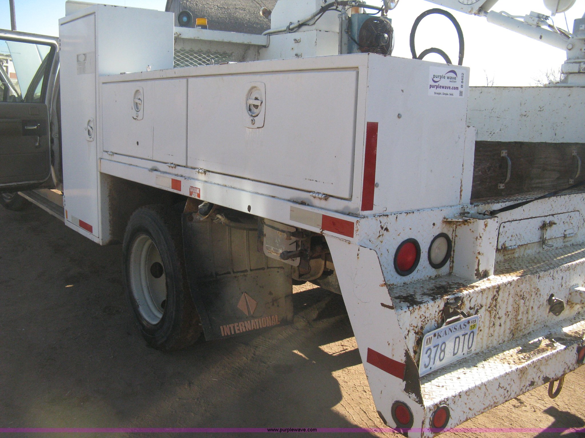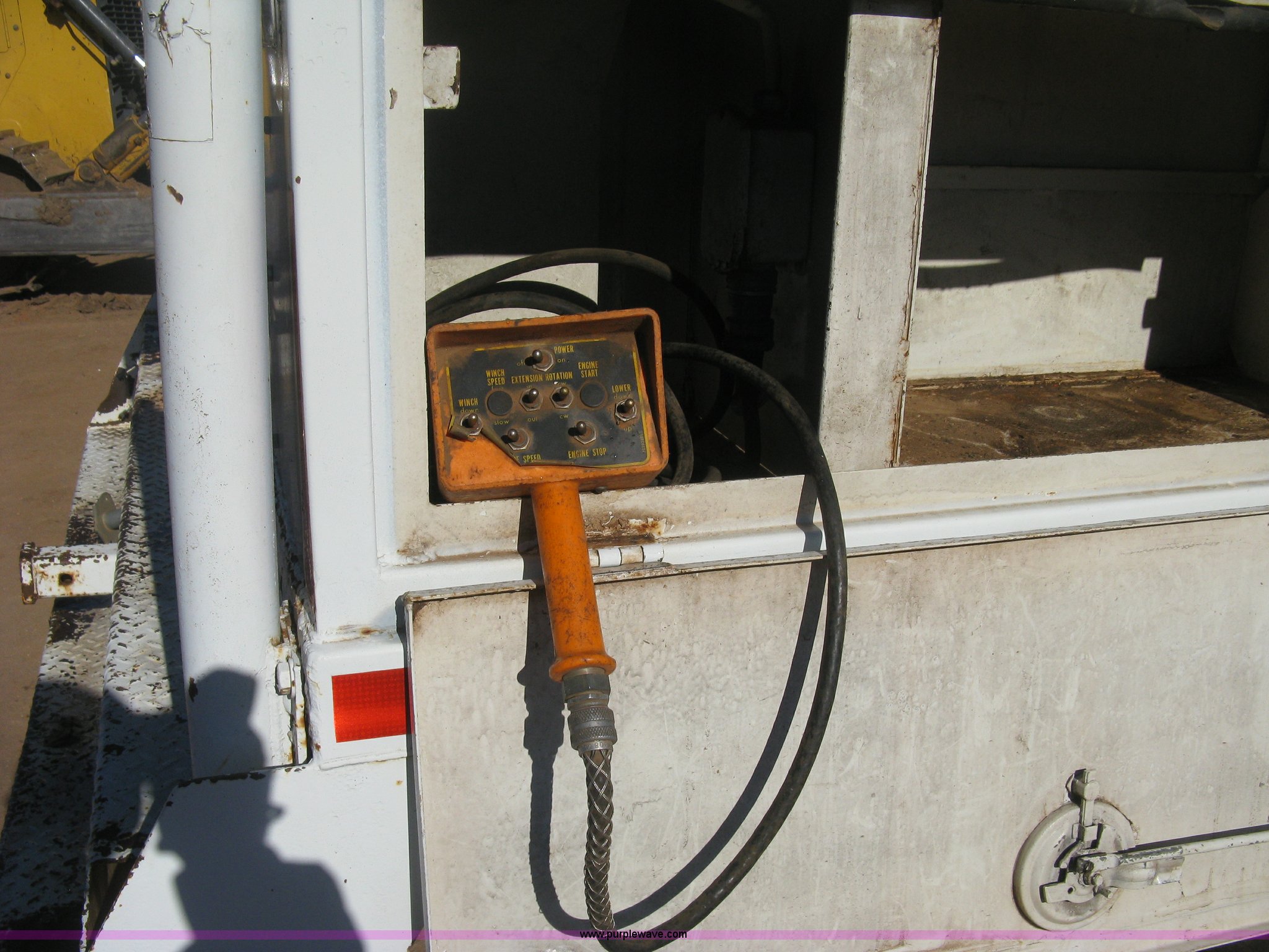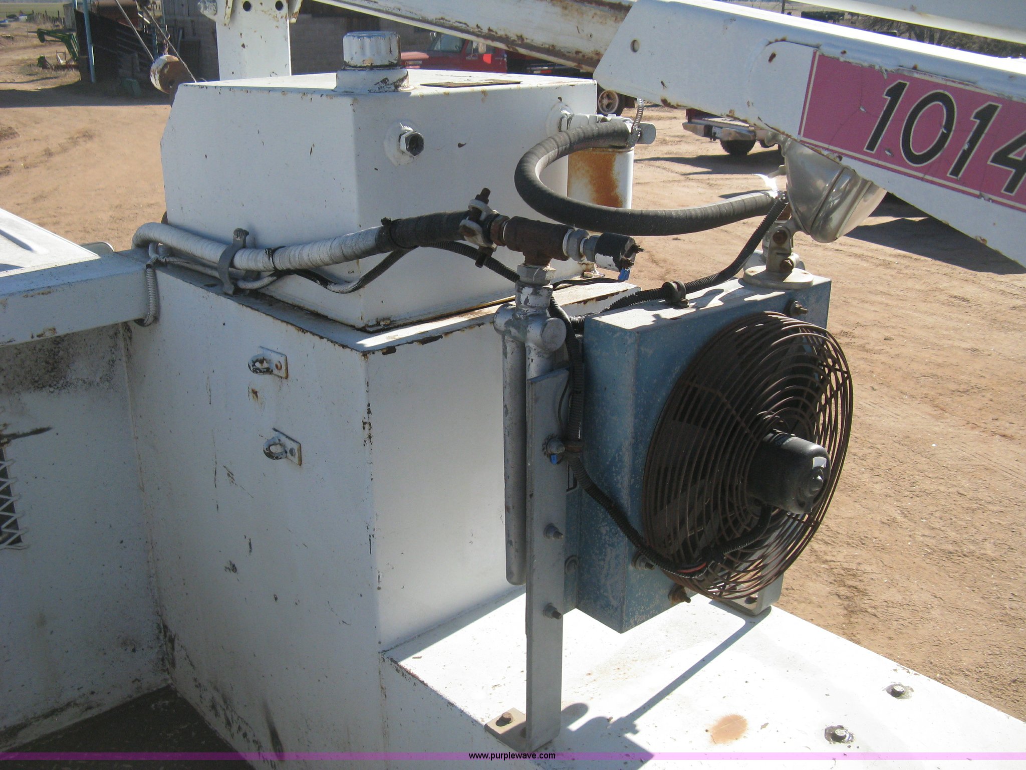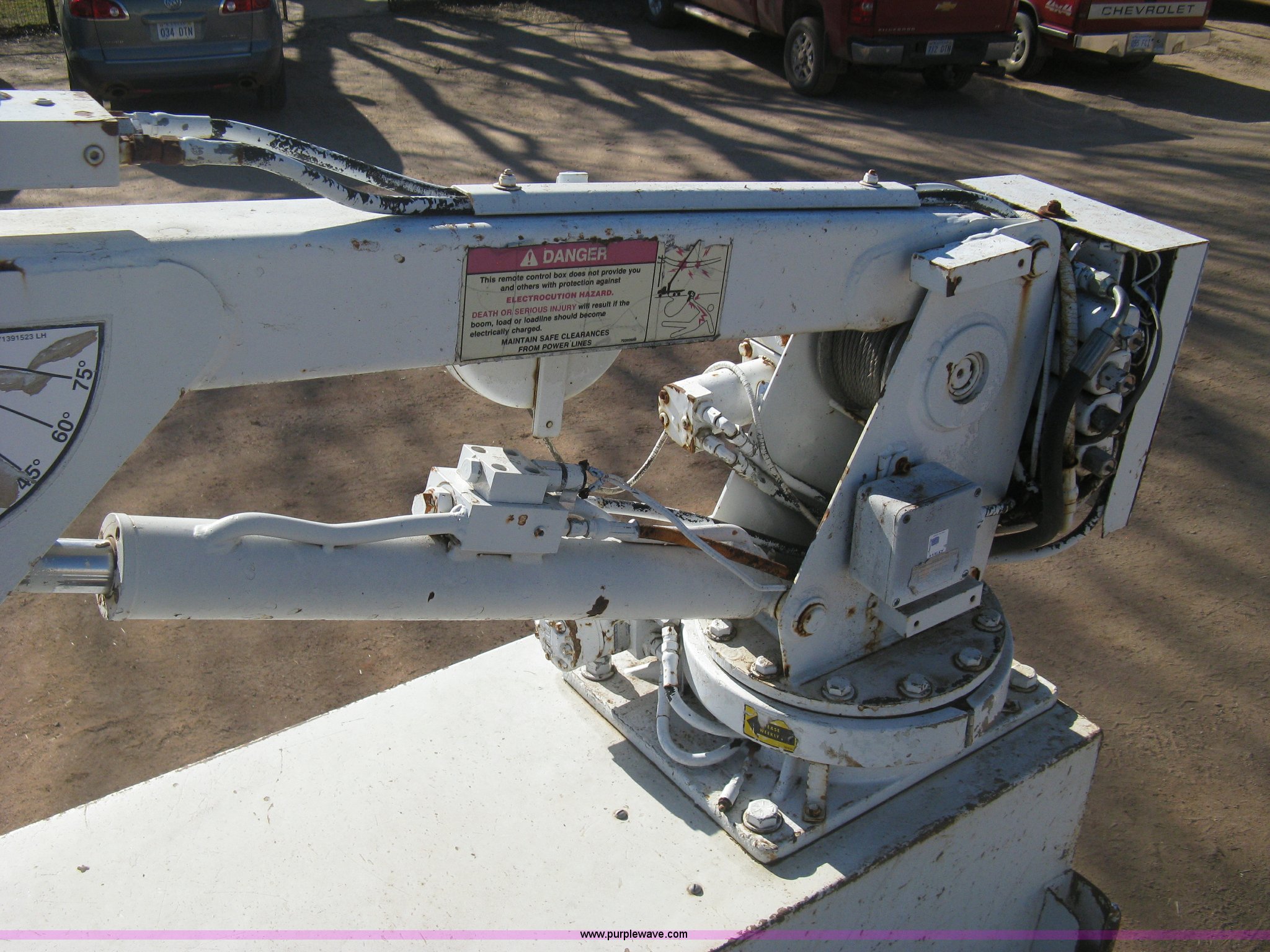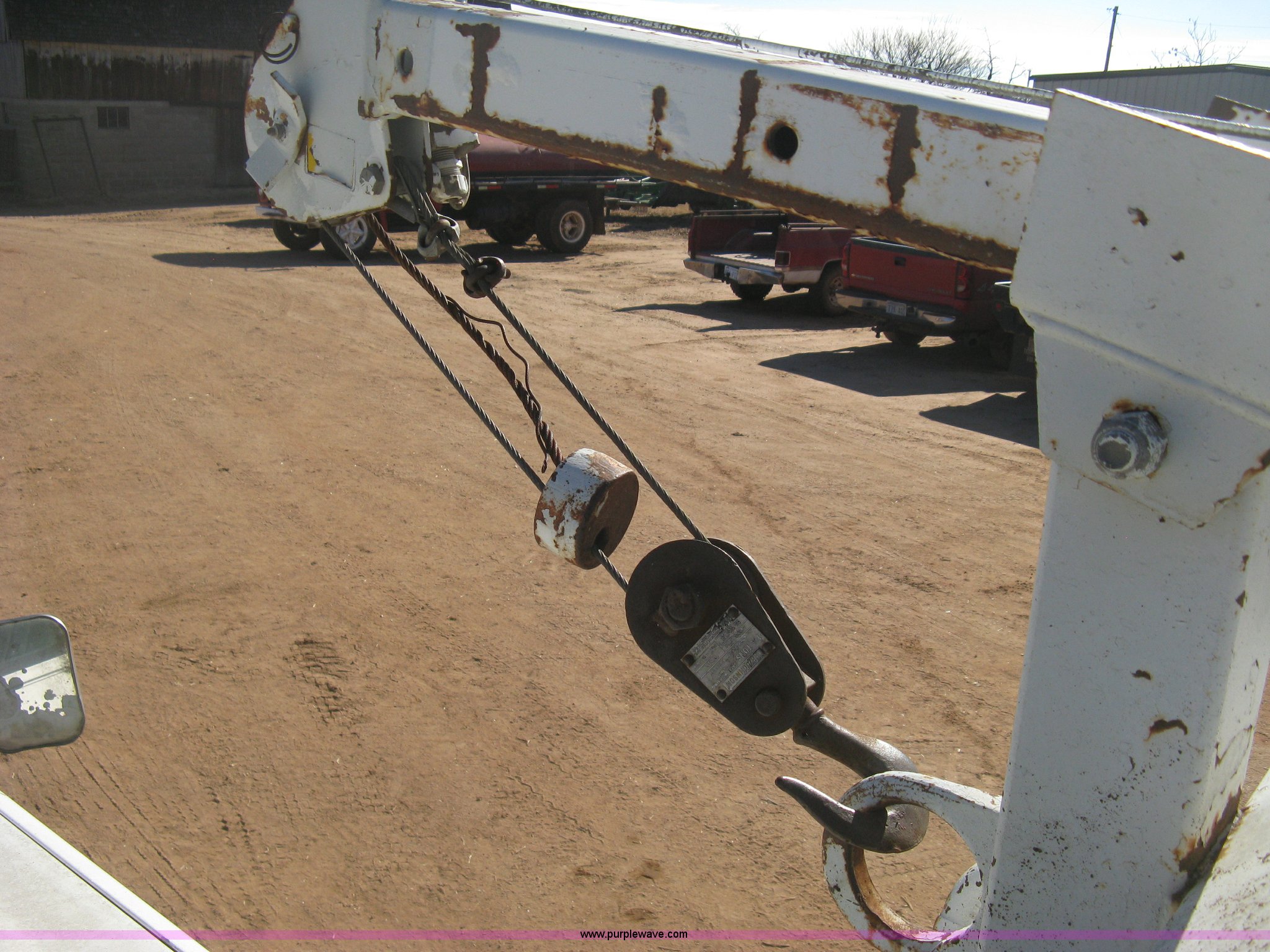 Purple Wave is selling a used Bucket Truck in Kansas. This item is a 1994 Chevrolet 3500 Crew Cab utility truck with the following: 135,296 miles on odometer, 9,266 hous on meter, 7.4L V8 OHV 16V gas engine, Five speed manual transmission, AC and heat, AM/FM, Manual windows and locks, Vinyl interior, Chelsea PTO, Alton 11'L x 90"W utility bed, Diamond plate floor, Step up bumper, (6) tool cabinets, Serial 901728, IMT 1014 telescoping crane, Oscillating, 1.75 ton hook end, Rear hydraulic remotes, Receiver hitch, Trailer wiring, 8R19.5 tires