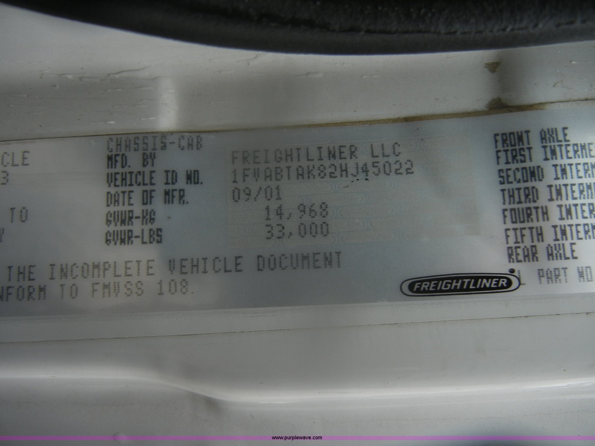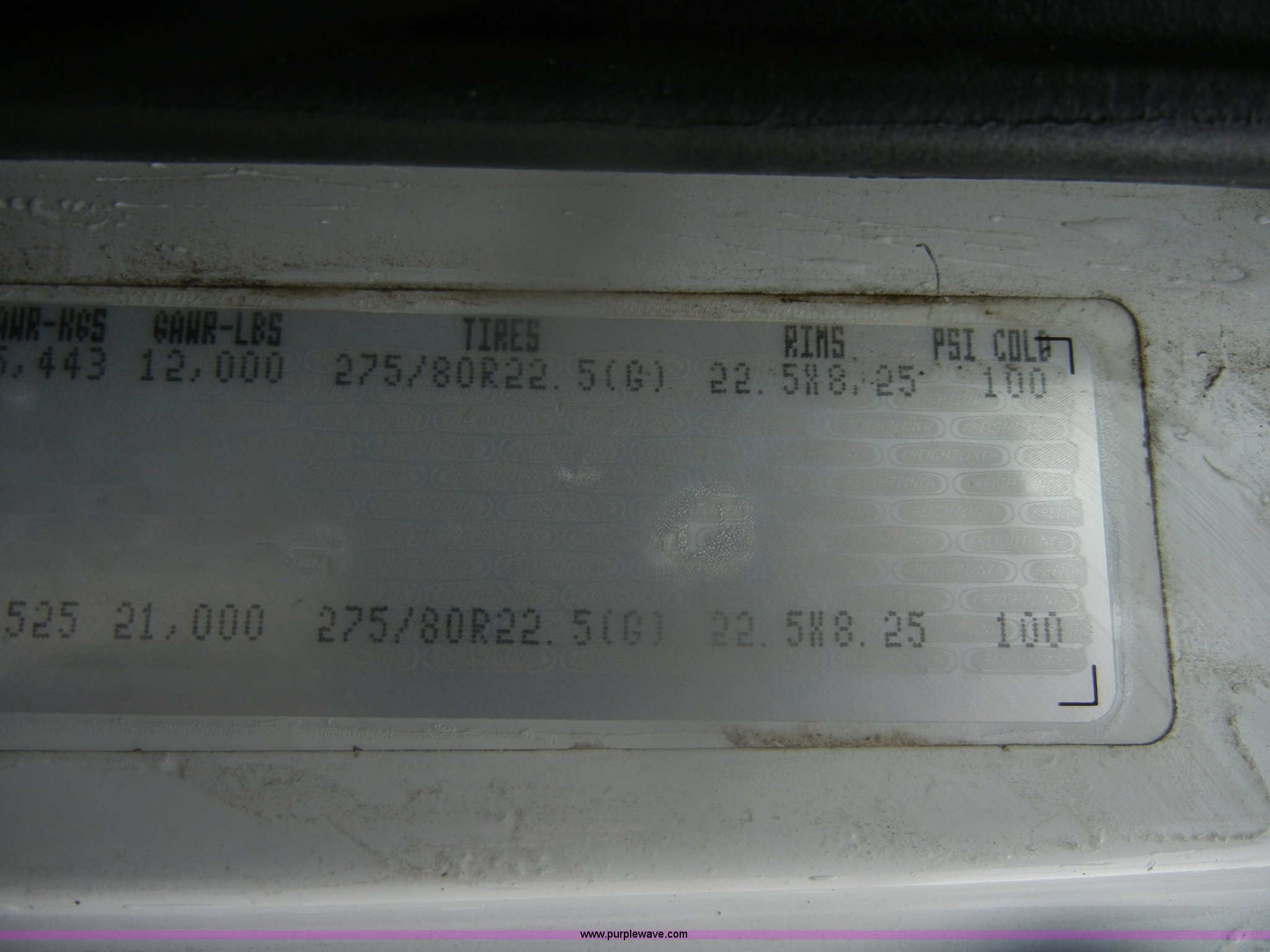 Purple Wave is selling a used Truck Tractor in Kansas. This item is a 2002 Freightliner FL70 with the following: 199,708 miles on odometer, Caterpillar 3126 7.2L L6 diesel engine, Eaton Fuller automatic transmission, AC and heat, Tilt, Telescopic steering wheel, Cruise, AM/FM, Manual windows and locks, Power mirrors, Air suspension seat, Cloth interior, Dual rear windows, Heated mirrors, block heater, 75 gallon fuel tank, (4) toolboxes, Some rusted, Maibar 16'L x 8' bed, Steel plated, 40" sides, Air suspension over spring, Air brakes, 3,500 lbs capacity lift gate, 275/80R22.5 tires, GVWR 33,000 lbs, FAWR 12,000 lbs, RAWR 21,000 lbs, Paint peeling on front grill, Manuals included