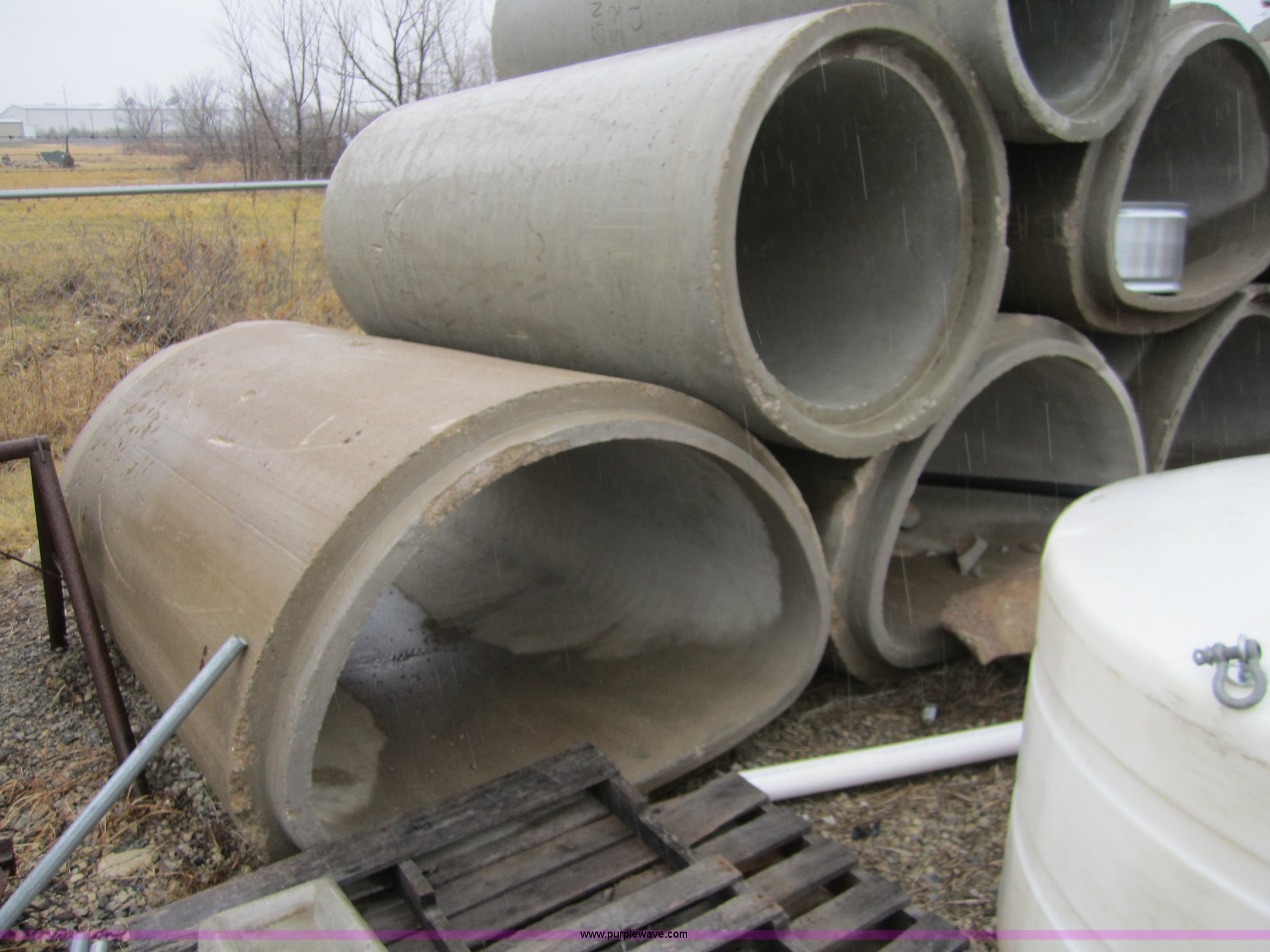 Purple Wave is selling a used Pipe in Oklahoma. This item is a (10) reinforced concrete elliptical pipe with the following: 38" x 60", Class 3, 8'L, 8,000 lbs per section, Damage on bell and spigot ends, No gaskets