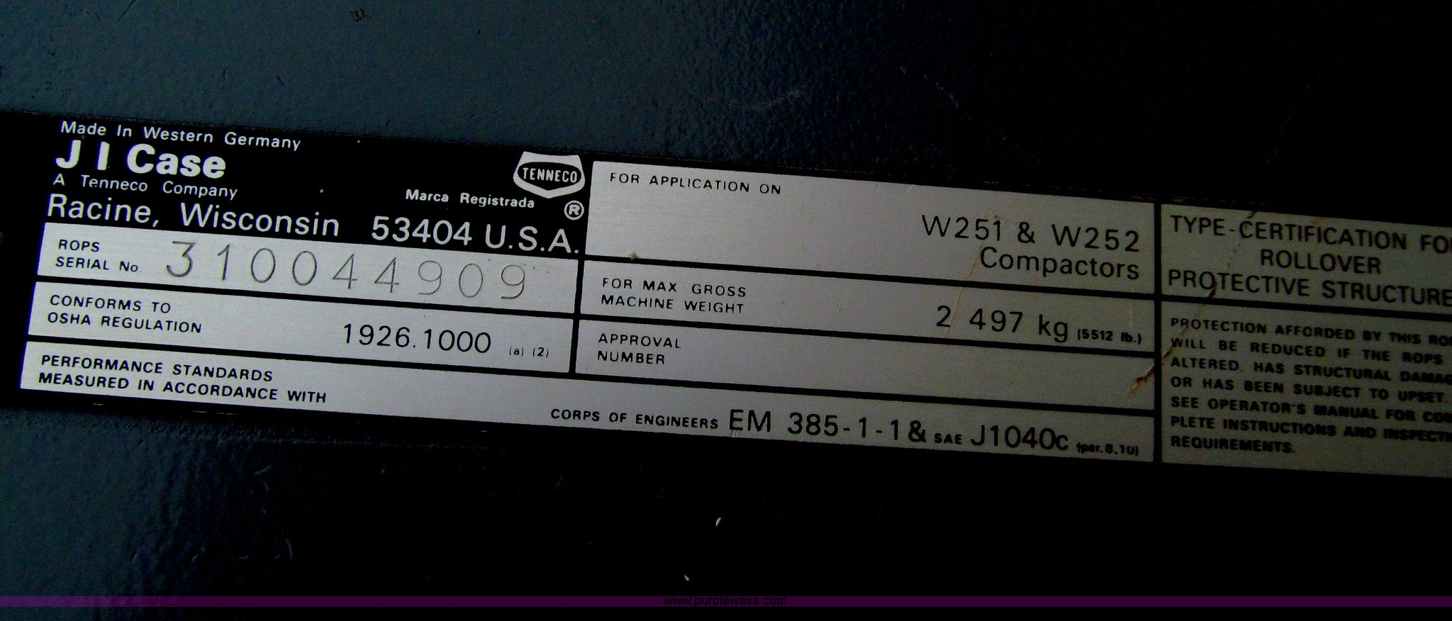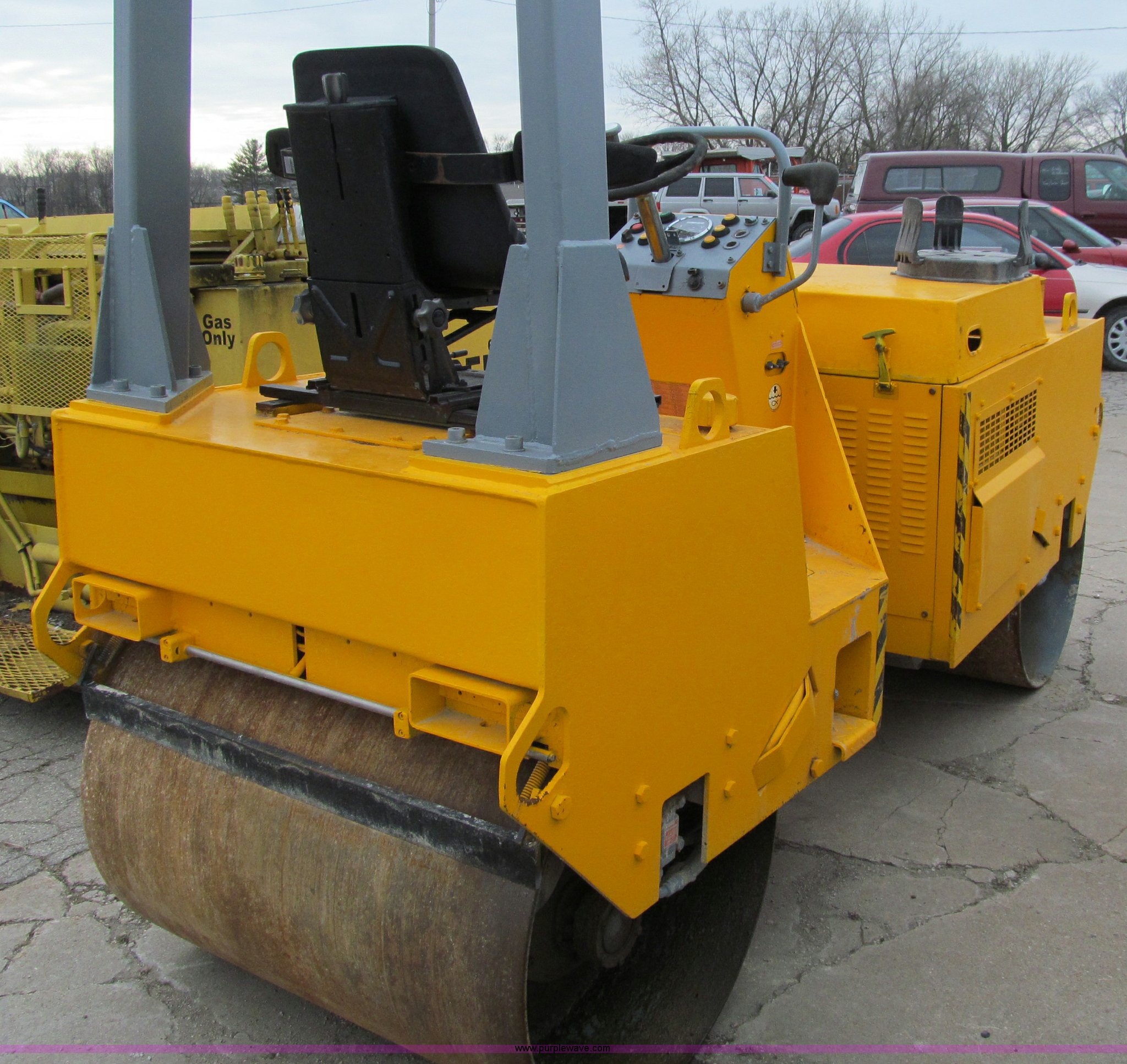 Purple Wave is selling a used Double Drum Roller Compactor in Iowa. This item is a Case W252 Vibromax dual drum vibratory roller with the following: 1,545 hours on meter, Two cylinder diesel engine, 39" steel drums, 2,500 lbs lbs. base operating weight, Serial JKC7514404