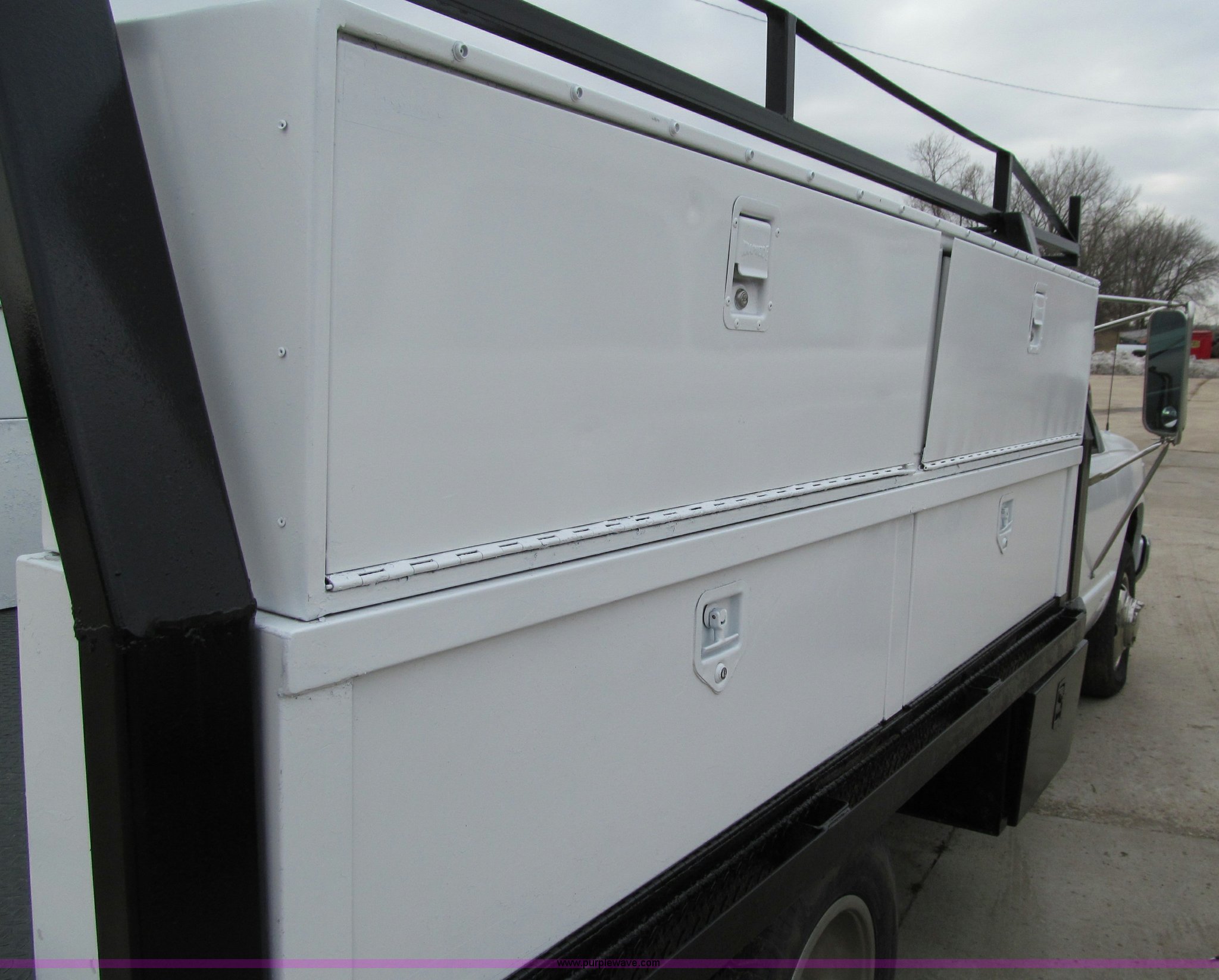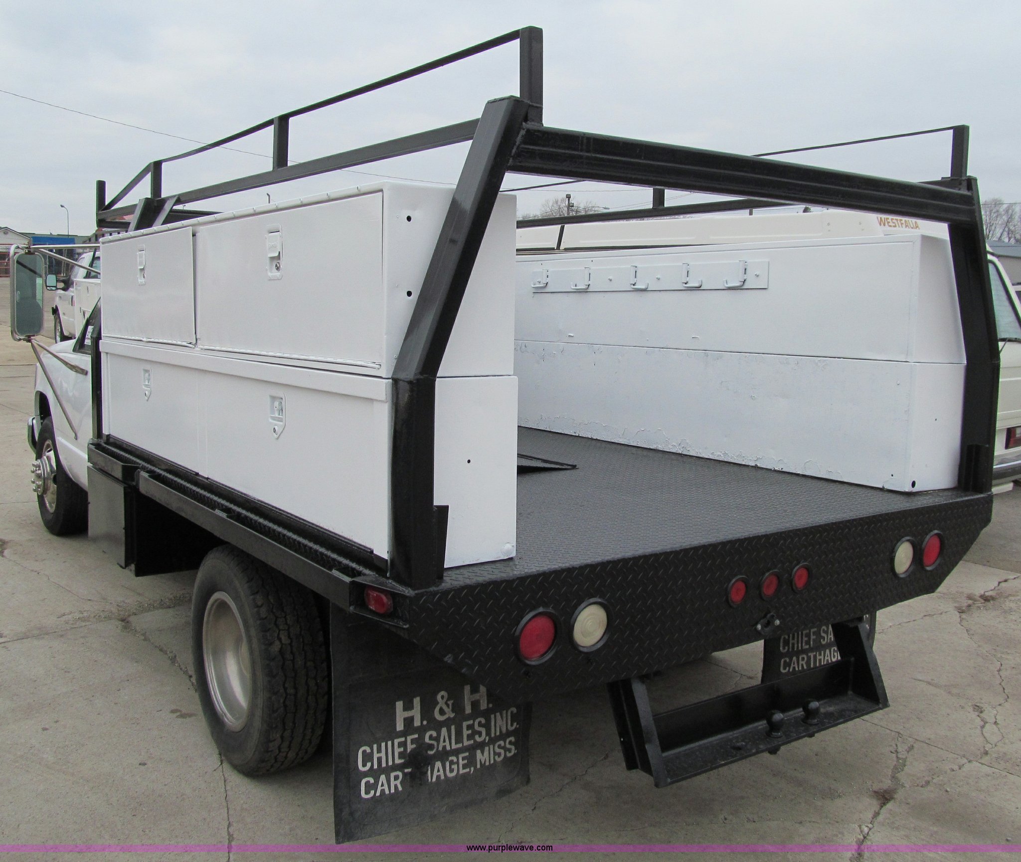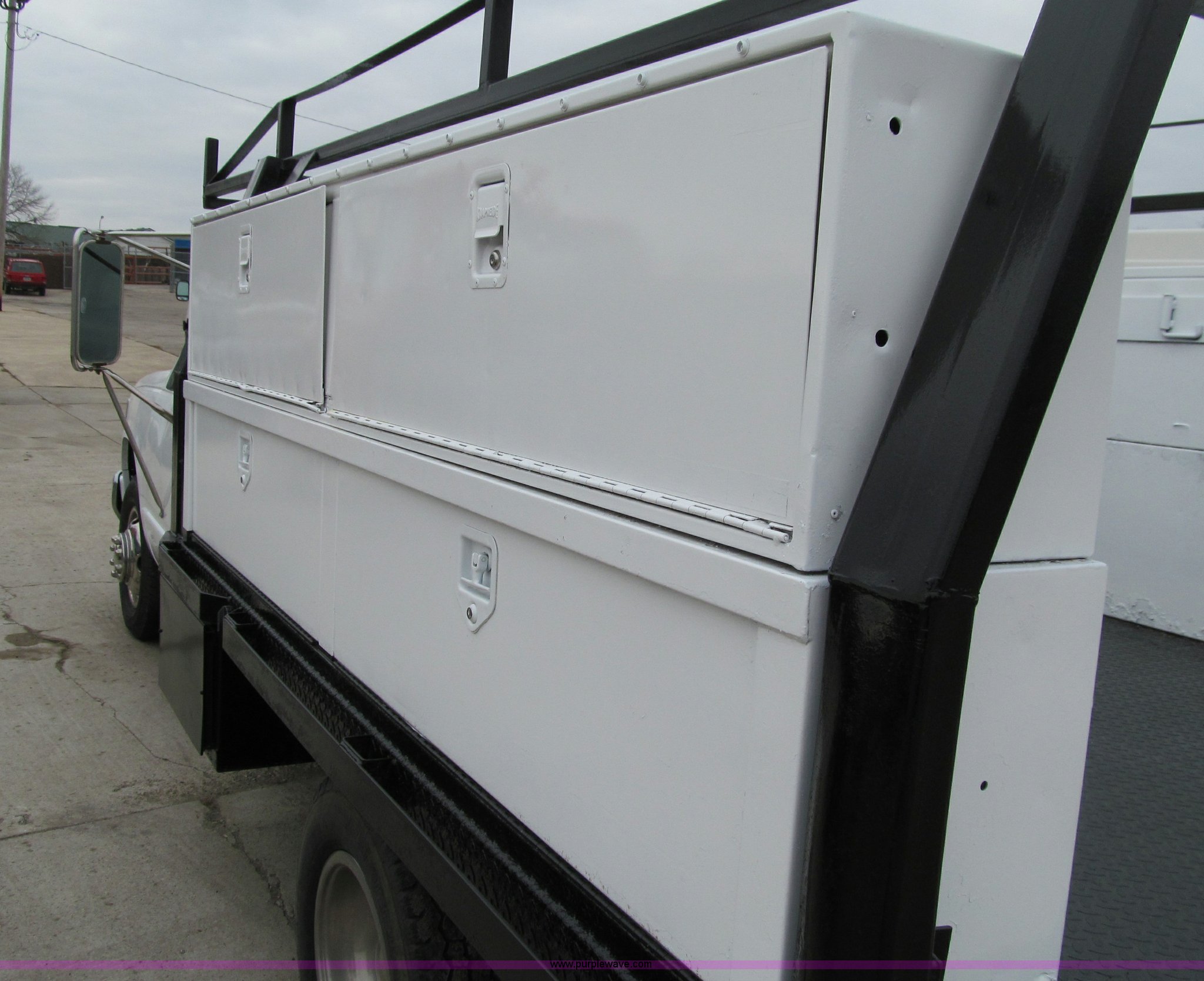 1995 Chevrolet 3500 service truck. 184,642 miles on odometer, 6.5L V8 diesel engine, Five speed manual transmission, Heat, Tilt, Cruise, AM/FM, Manual windows and locks, Cloth interior, Brake controller, 9' steel flatbed Side mounted toolboxes, Overhead steel rack, (2) ball hitches, Trailer wiring, LT225/75R16 tires, Dents and dings, Paint peeling, Fender and door rust, Toolbox rust, Truck will be repainted prior to auction. 1GBJC34F5SE167511. Shipping quotes available. Big P's. 2029 16th Ave SW. Cedar Rapids, IA 52404