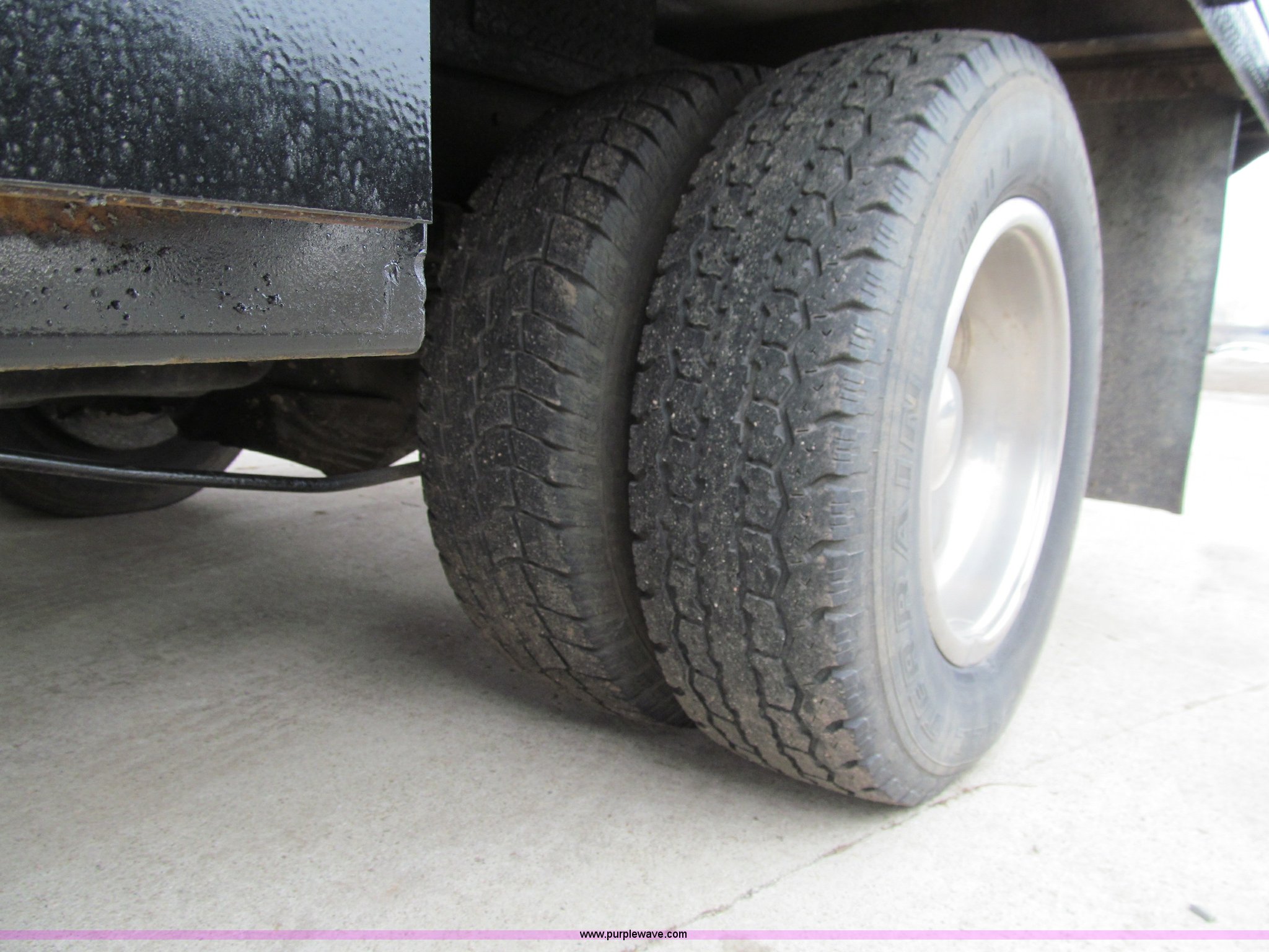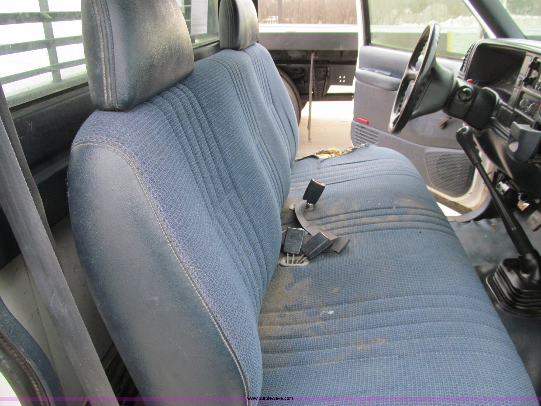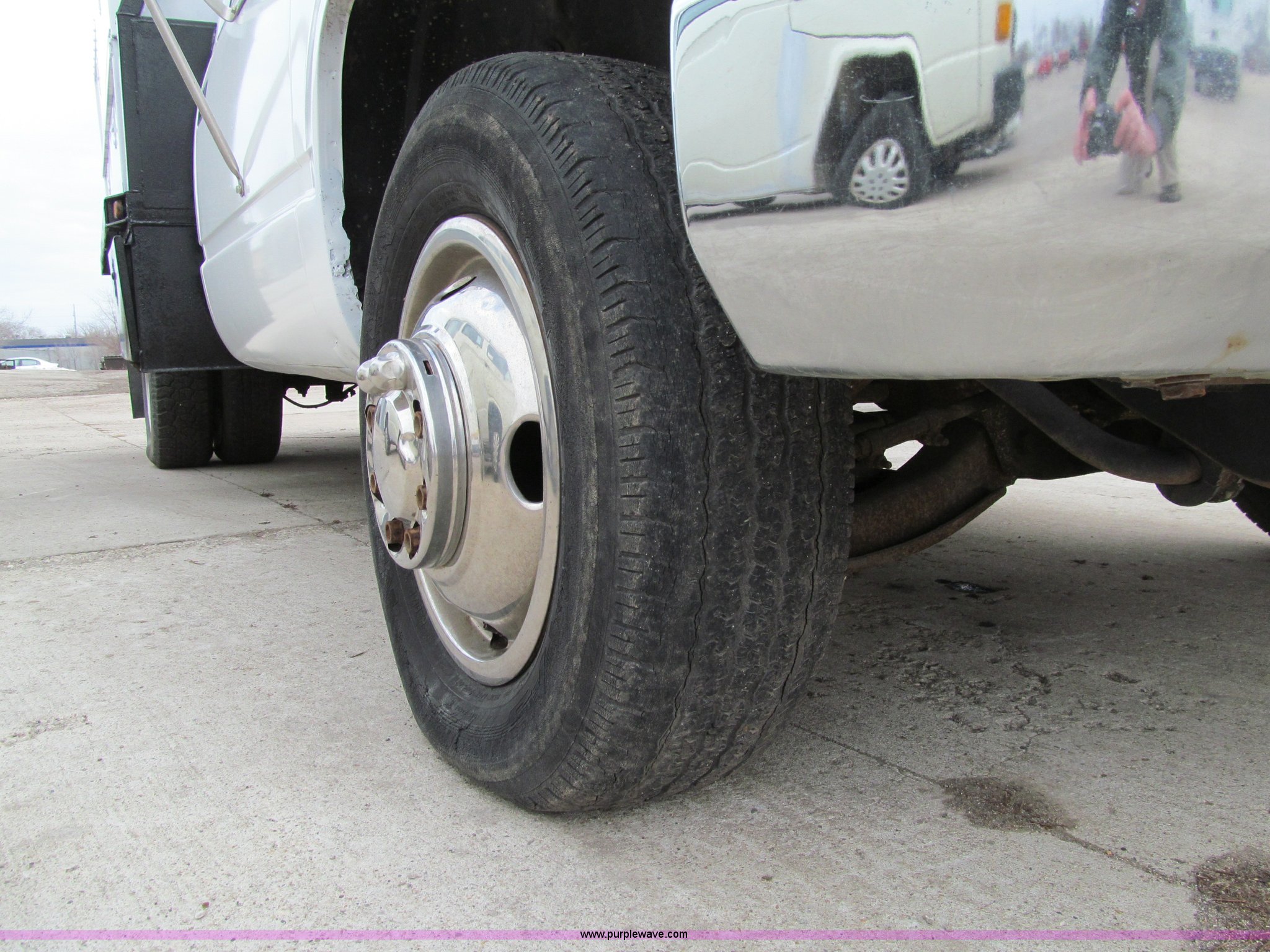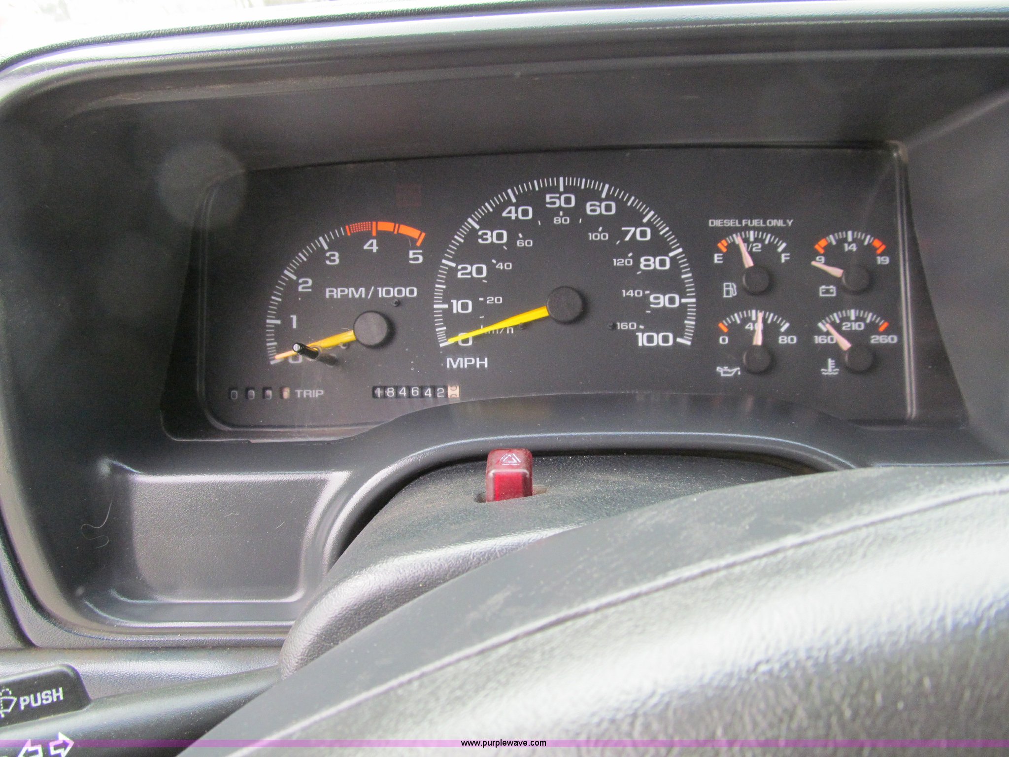 Purple Wave is selling a used Passenger Vehicle in Iowa. This item is a 1995 Chevrolet 3500 service truck with the following: 184,642 miles on odometer, 6.5L V8 diesel engine, Five speed manual transmission, Heat, Tilt, Cruise, AM/FM, Manual windows and locks, Cloth interior, Brake controller, 9' steel flatbed, Side mounted toolboxes, Overhead steel rack, (2) ball hitches, Trailer wiring, LT225/75R16 tires, Dents and dings, Paint peeling, Fender and door rust, Toolbox rust, Truck will be repainted prior to auction