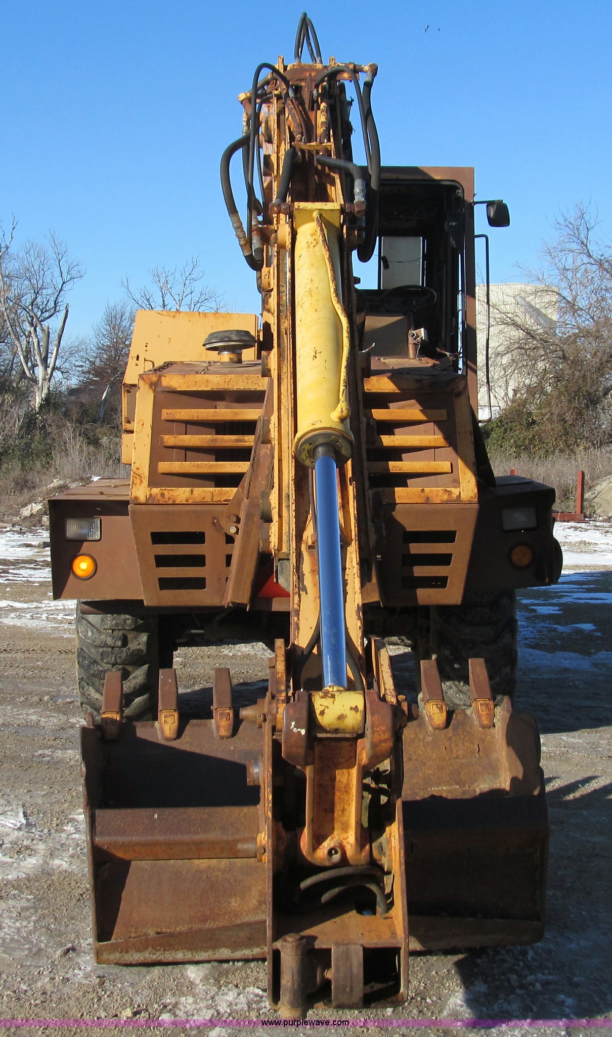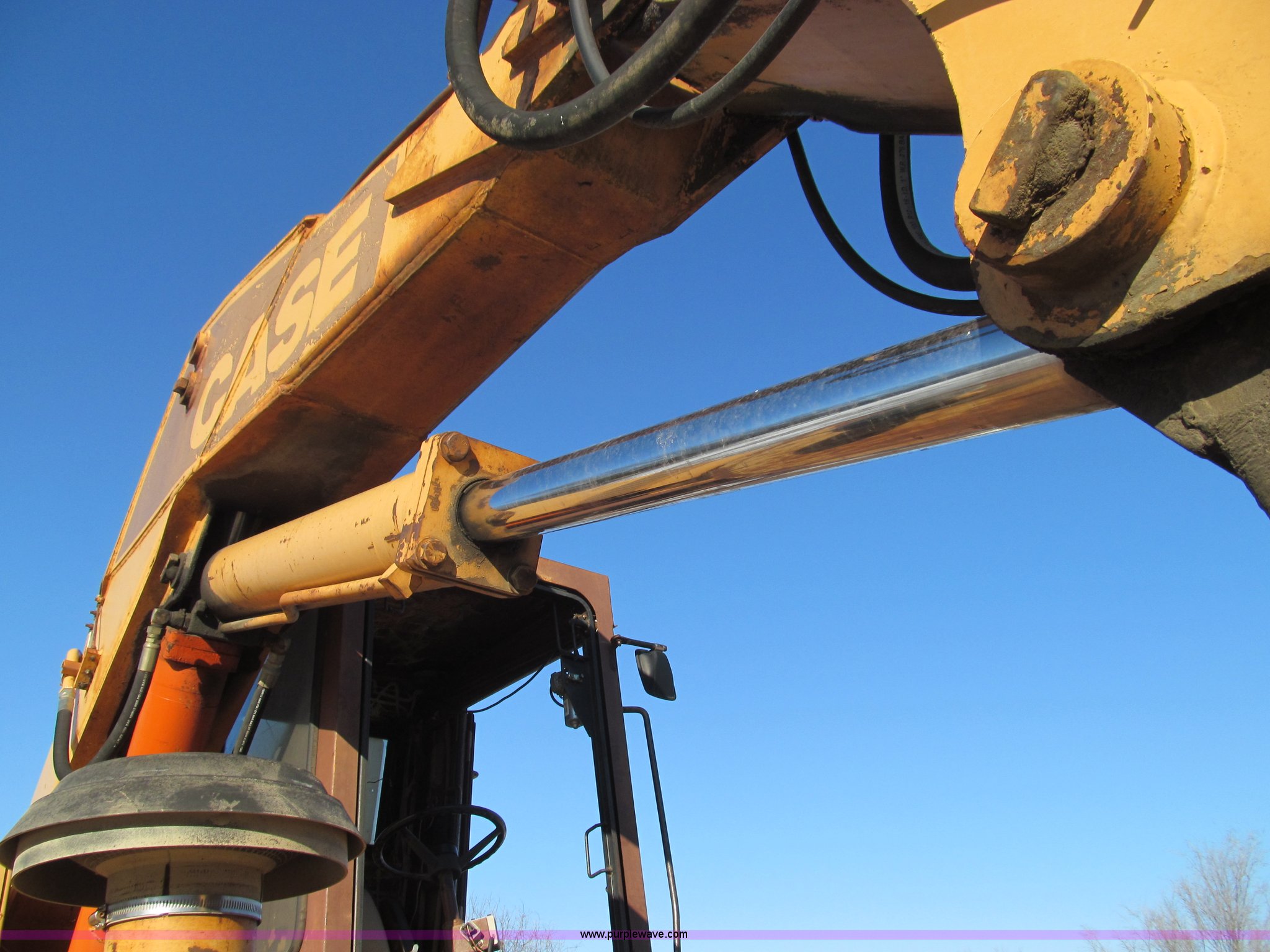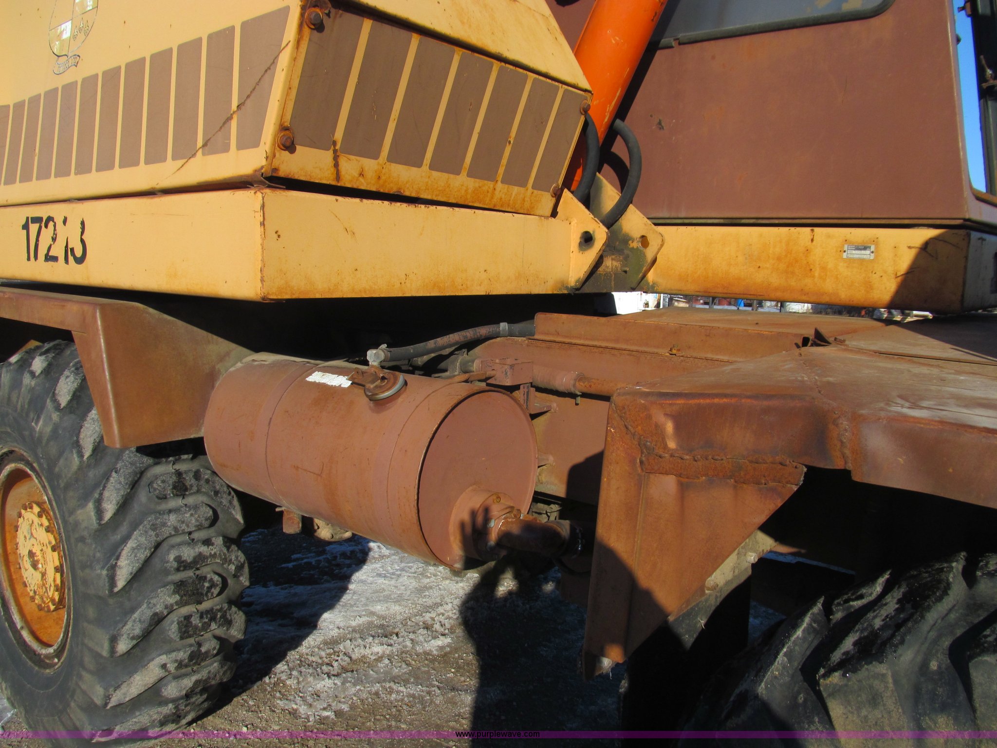 Purple Wave is selling a used Rubber Tired Excavator in Missouri. This item is a 1985 Case 1085B Cruz-Air mobile excavator with the following: 4,079 hours on meter, Cummins 938 six cylinder diesel engine, Clark transmission, Three speed forward and reverse, Four wheel drive, 25' reach, 36"W bucket, 17.5-25 tires, Manuals included, Unattached front windshield available, 38,870 lbs. base operating weight, Serial 6293775