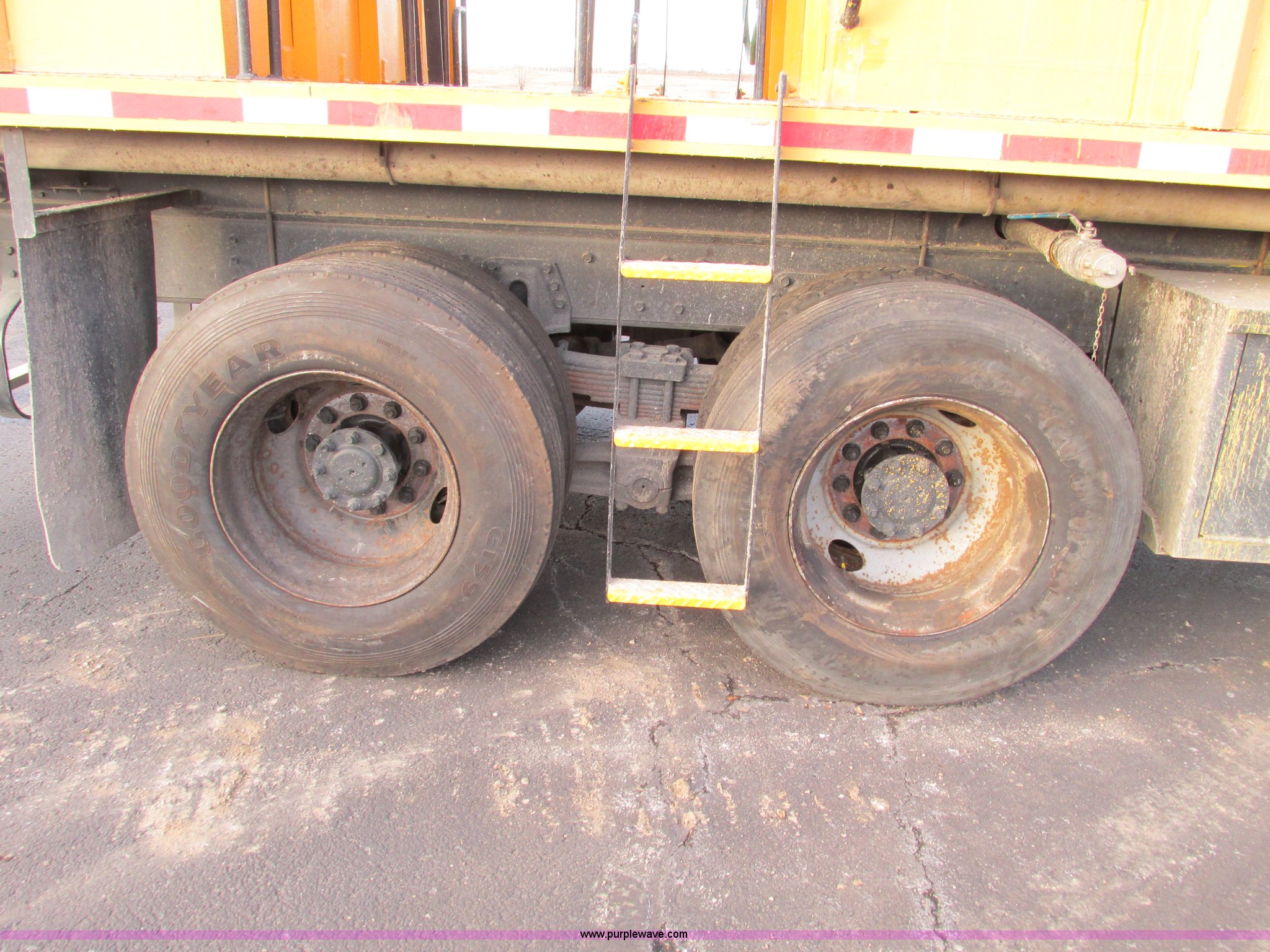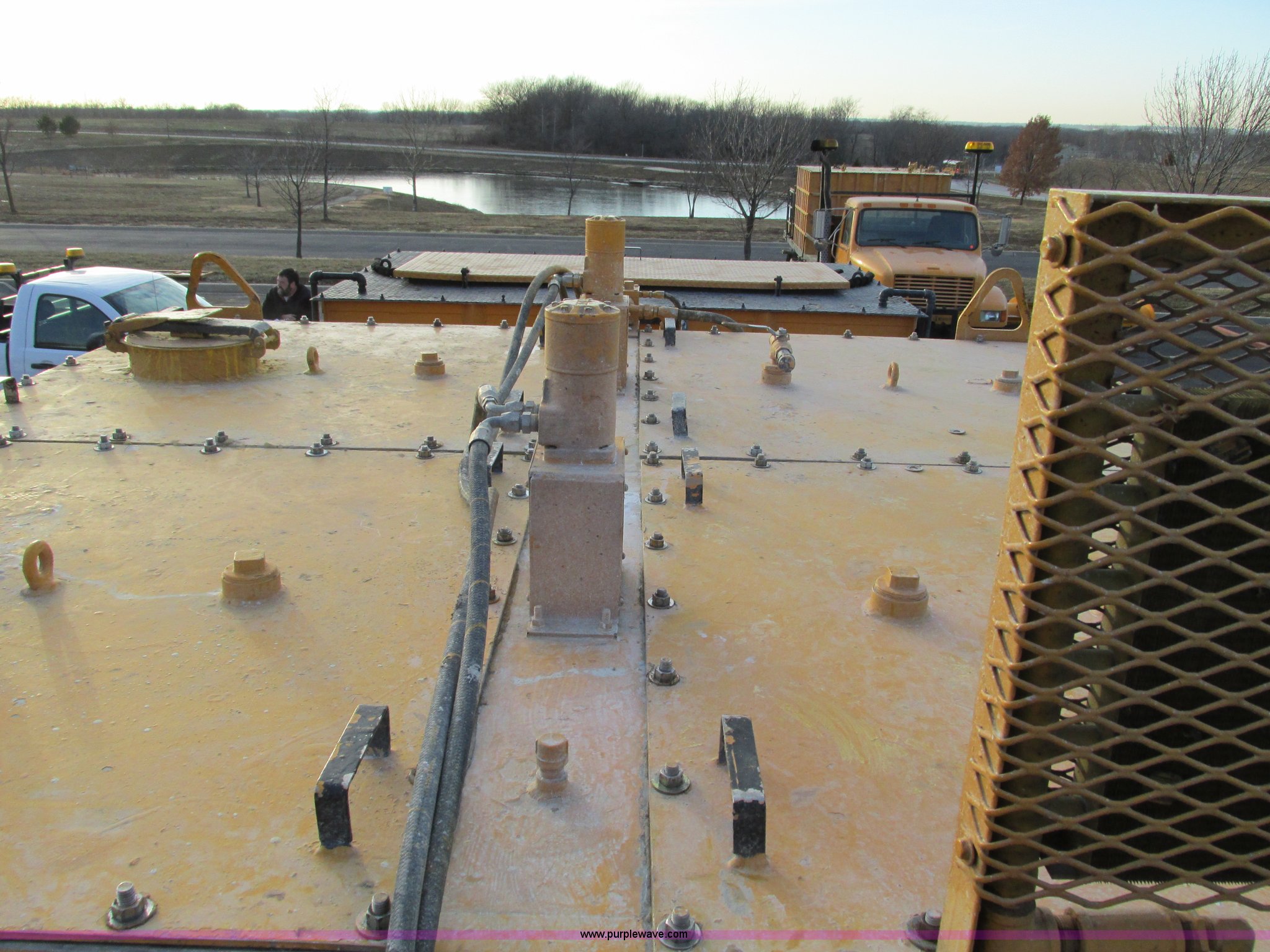 Purple Wave is selling a used Tank Truck or Water Truck in Missouri. This item is a 1998 International 4900 flatbed/paint nurse truck with the following: 57,043 miles on odometer, 1,799 hours on meter, International DT466E diesel engine, Automatic transmission, Heat, AM/FM, Front mount PTO, Air brakes, 800 gallon front tank, Rear mud flaps, 188" wheelbase, 11R22.5 tires, CB radio is not included, Unit previously used to haul paint, MoDOT ID 5756