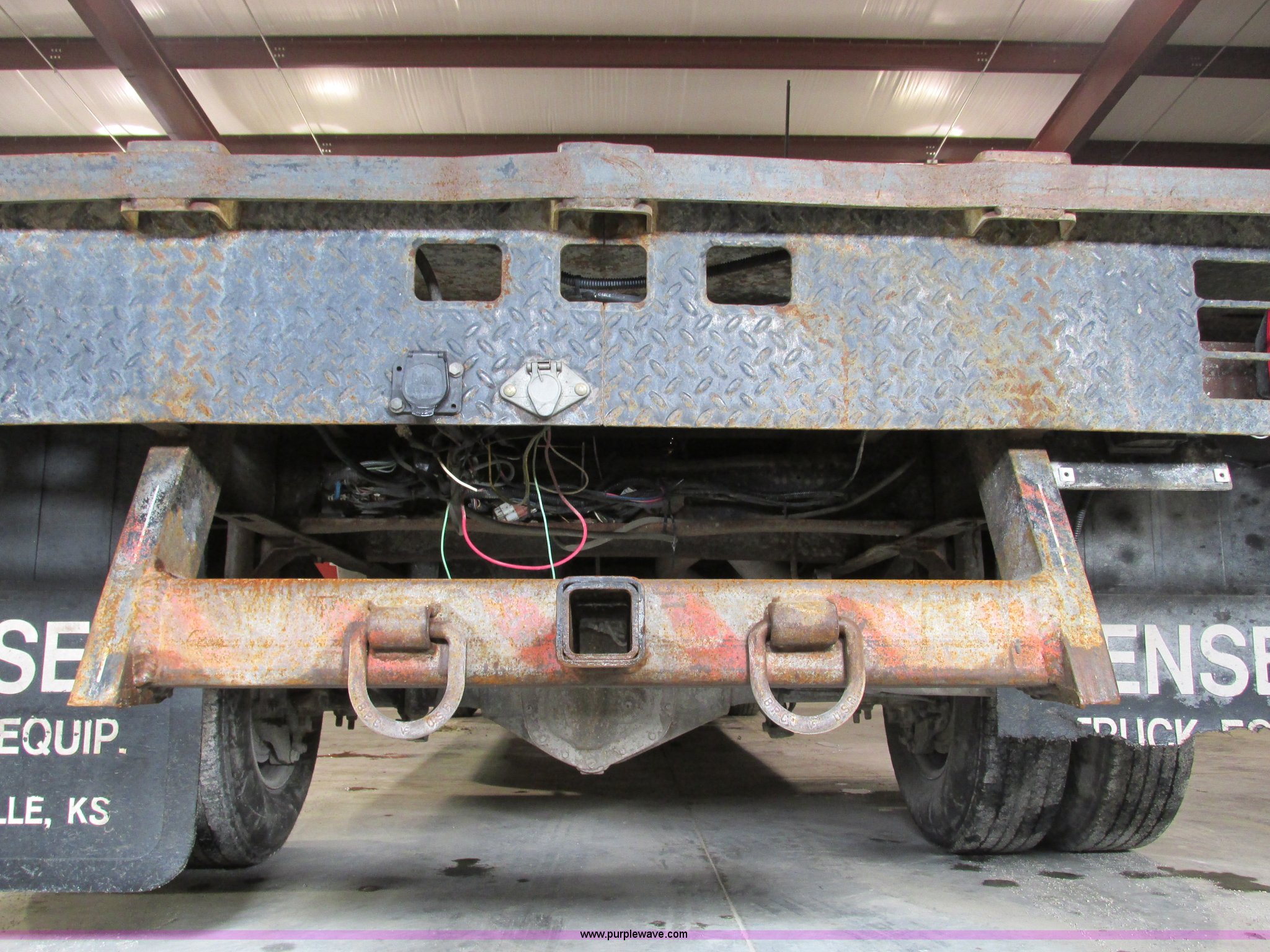 2004 Chevrolet Silverado 3500 Crew Cab flatbed pickup truck. Duramax 6.6L V8 OHV 32V diesel engine, Allison automatic transmission, AC and heat, Tilt, Cruise, AM/FM/CD, Manual windows and locks, Vinyl interior, Draw-Tite trailer brake system, Jensen 9'L x 94"W flatbed Model FB, (5) stake pockets per side, (5) stake pockets on rear, Headache rack, Toolbox, Serial 200612009, Mud flaps, Rain guards, Adjustable tow mirrors, Receiver hitch, Trailer wiring, 215/85R16 tires, Interior/exterior cosmetic damage, Cracked windshield, Engine runs rough, Gear shifter is loose. 1GBJC33174F122220. Shipping quotes available. Hunter Machinery. 15600 Industrial Dr. Independence, MO 64058