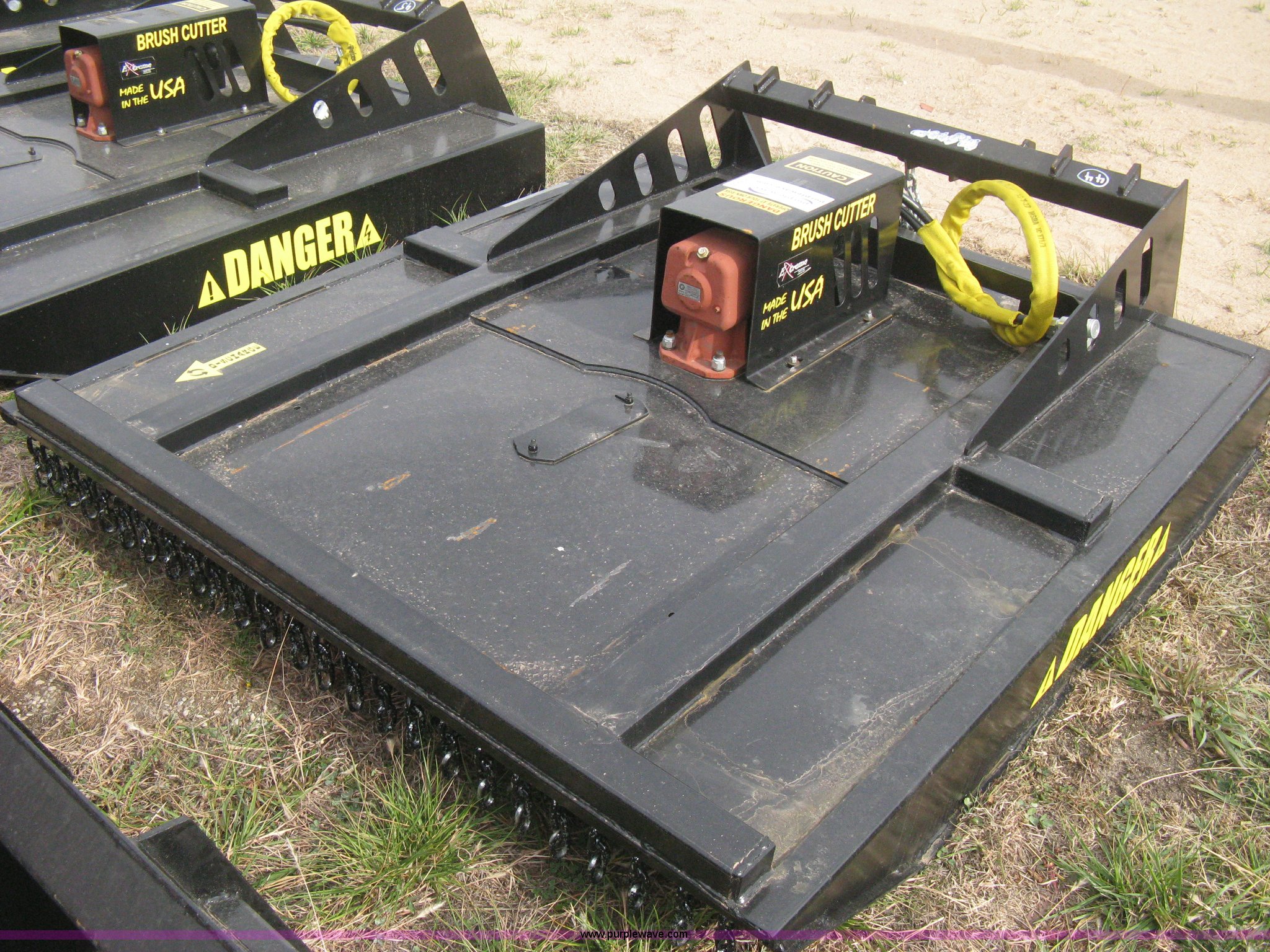 Purple Wave is selling a used Skid Steer Attach. in Kansas. This item is a Wildkat heavy duty brush cutter/mower with the following: 72"W, Skid steer quick attach, Chains/forklift pockets, Seven gauge steel deck, Omni gear box, 75 HP, Parker hoses, drive motor with cross port, Low flow hydraulics up to 20 gpm not more than 25 gpm, 1/2" thick blades, Unused