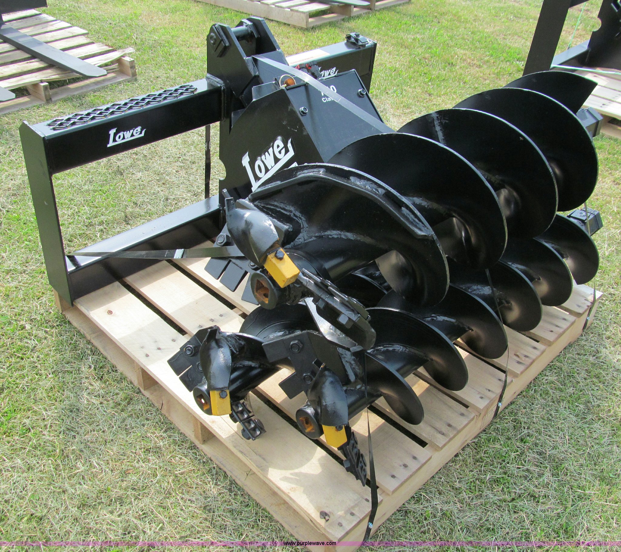 Purple Wave is selling a used Other Attach. or Equip. in Wisconsin. This item is a Lowe 750CLH hydraulic auger attachment with the following: Lowe hydraulic motor, Solid unit structure, Heat treated alloy shaft, Heavy duty reduction drive, Universal quick attach plate, 9", 12", and 15" hex bit, Unused