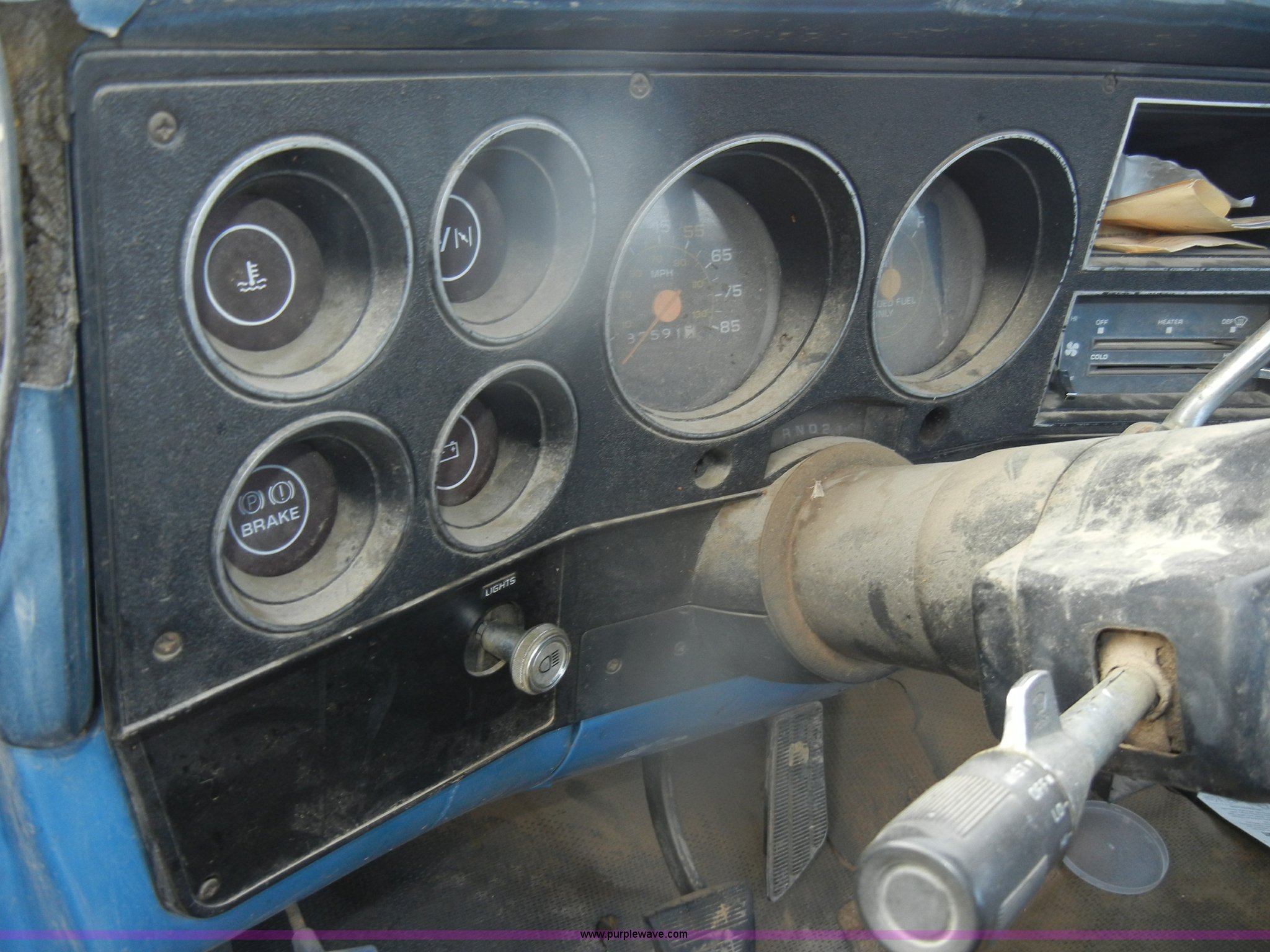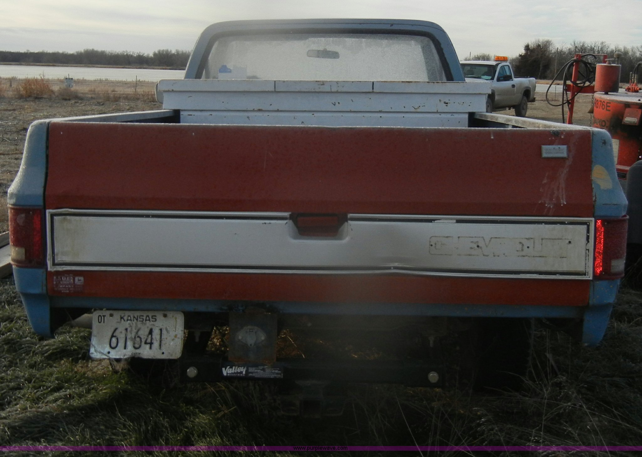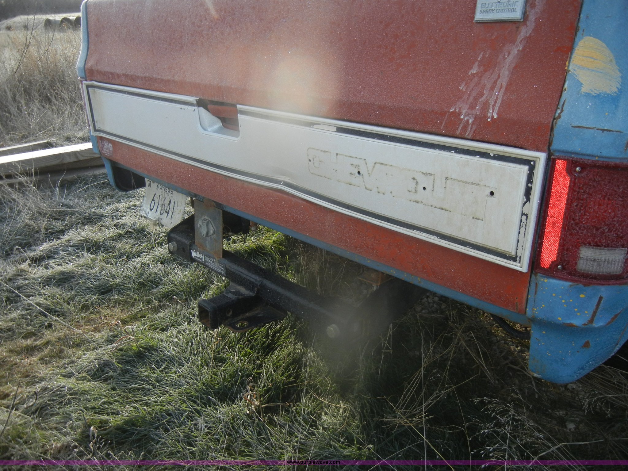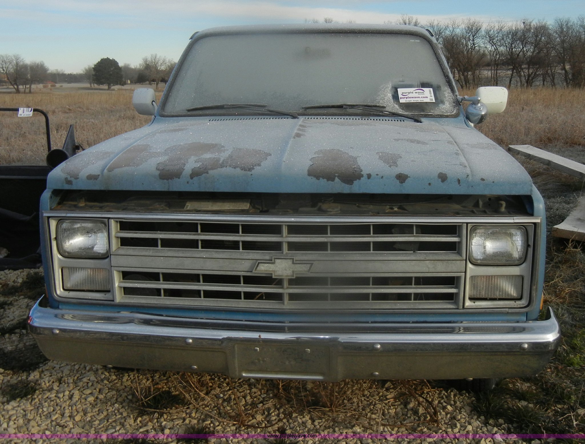Purple Wave is selling a used Passenger Vehicle in Kansas. This item is a 1985 Chevrolet Custom Deluxe 10 pickup truck with the following: 87,591 miles on odometer, 5.0L V8 OHV gas engine, Automatic transmission, Heat, AM/FM, Manual windows and locks, Cloth interior, Damaged, Toolbox, Receiver hitch, Trailer wiring, 225/75R15 tires, Flat, Interior/exterior cosmetic damage, Dead battery, Dents and scratches, Body rust, Cracked dash, Paint peeling, Must be towed