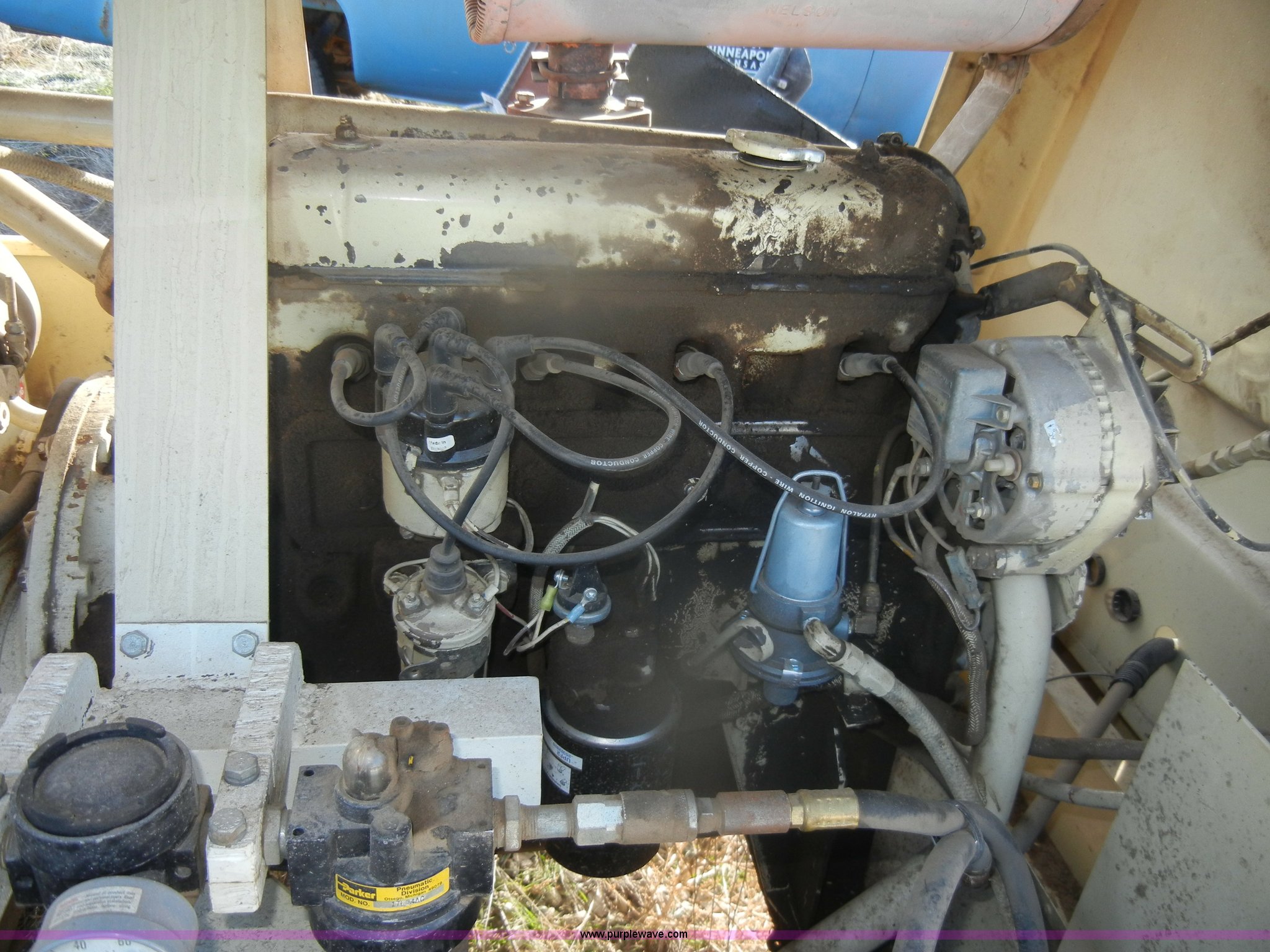 1984 Ingersoll Rand air compressor. 621 hours on meter, Model P100BWW, White gas engine Model G1600, Serial AD4922537G1600, 2" ball, chains, and lights, Approx. 50' air hose, 185/80B13, Serial 138803U84133. Shipping quotes available. City of Minneapolis. 218 N Rock. Minneapolis, KS 67467