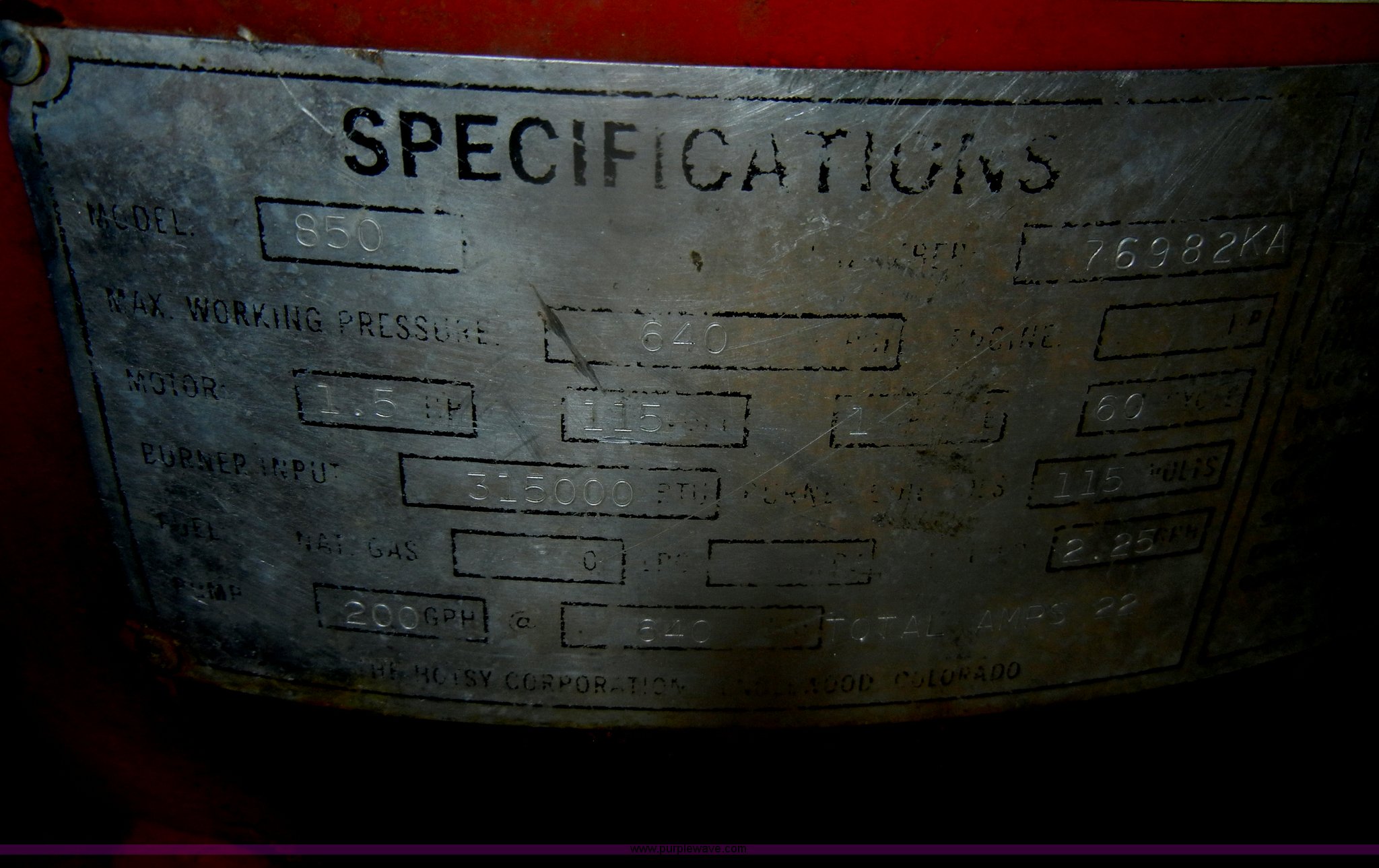 Purple Wave is selling a used Tools in Kansas. This item is a Superior Hotsy pressure washer with the following: Model 850, 2.25 gph, 200 gph pump, 1.5 HP engine, Unknown working condition