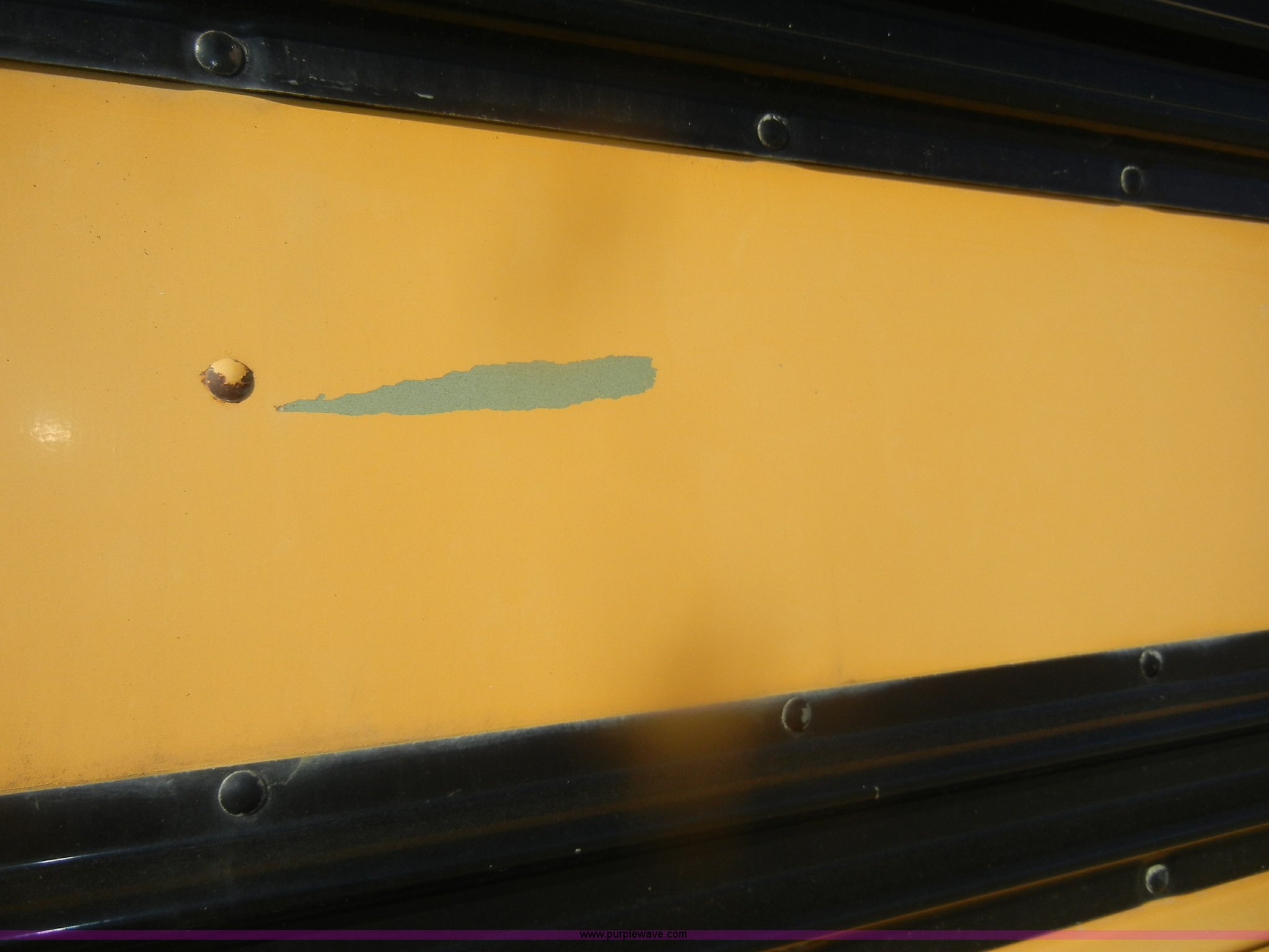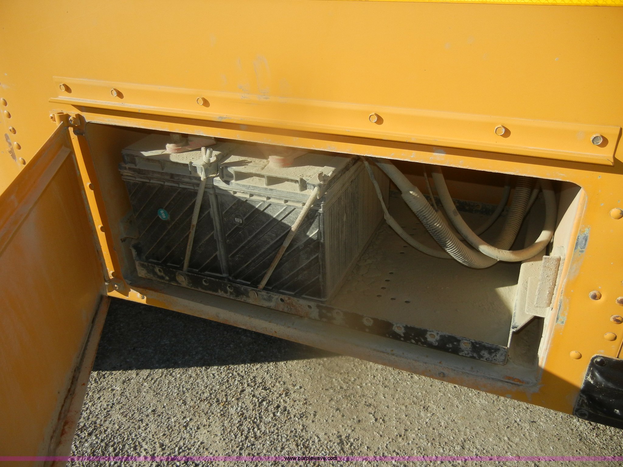 1999 Chevrolet Blue Bird school bus. 181,105 miles on odometer, Caterpillar 3126 7.2L L6 diesel engine 142 HP, Serial 7A551858, Automatic transmission, Heat, AM/FM, Manual windows, Vinyl interior, Heated mirrors, 53 passenger capacity, Body no. M90845, 10R22.5 tires, GVWR 27,060 lbs, FAWR 8,100 lbs, RAWR 18,960 lbs, Exterior cosmetic damage, Paint peeling. 1GBL7T1C7XJ105405. Shipping quotes available. Blue Valley USD 384. 3 Ram Way. Randolph, KS 66554