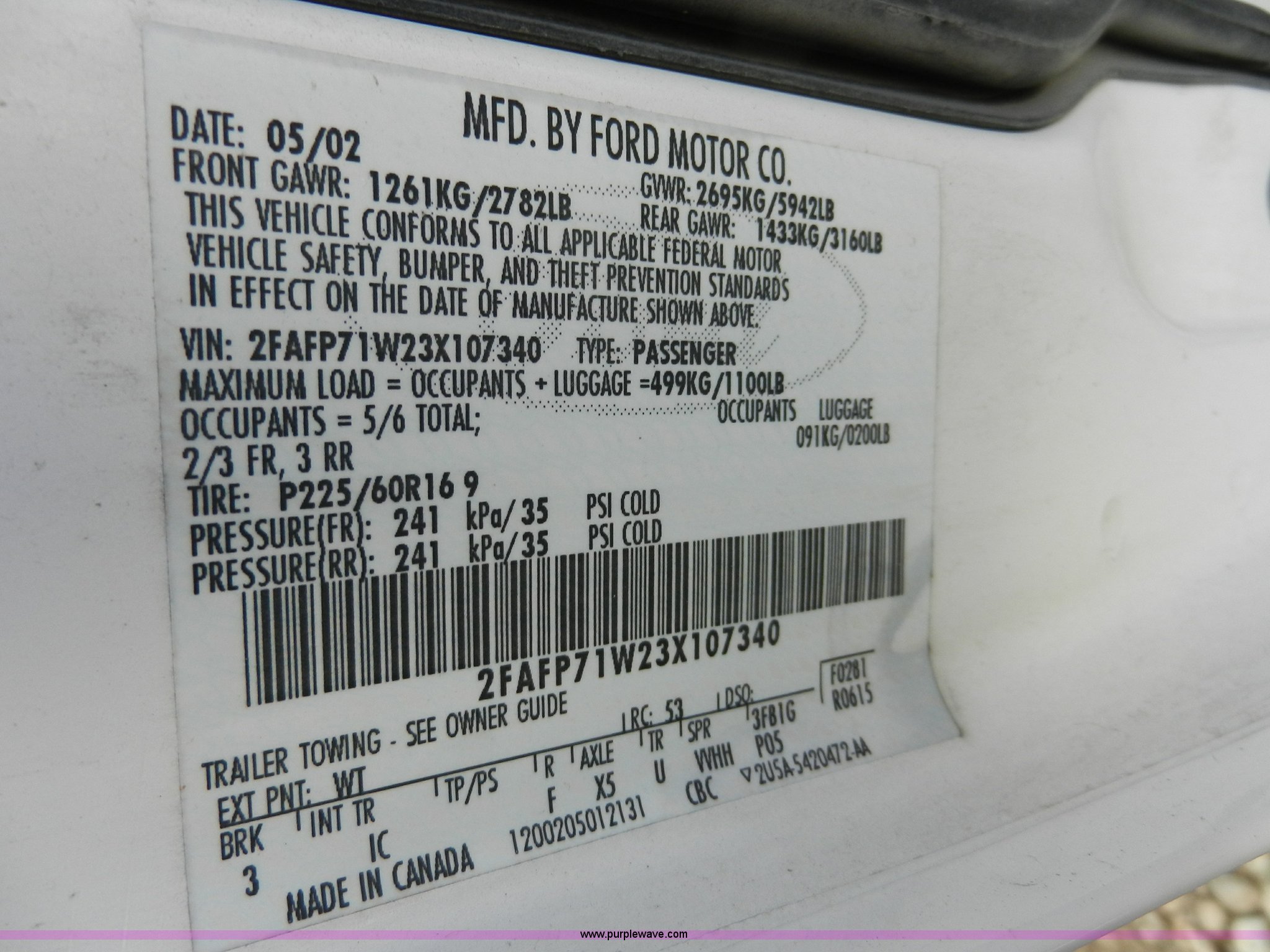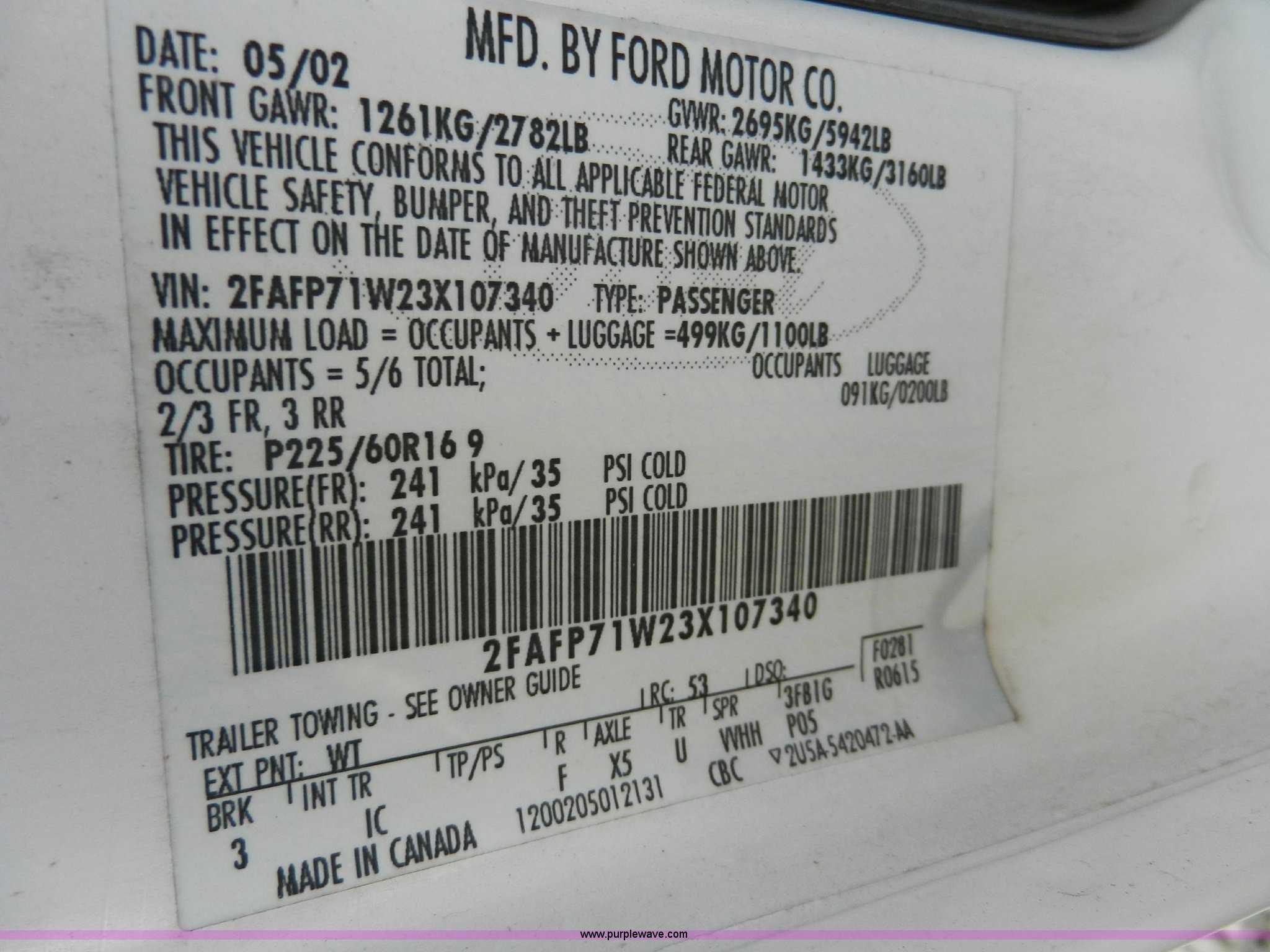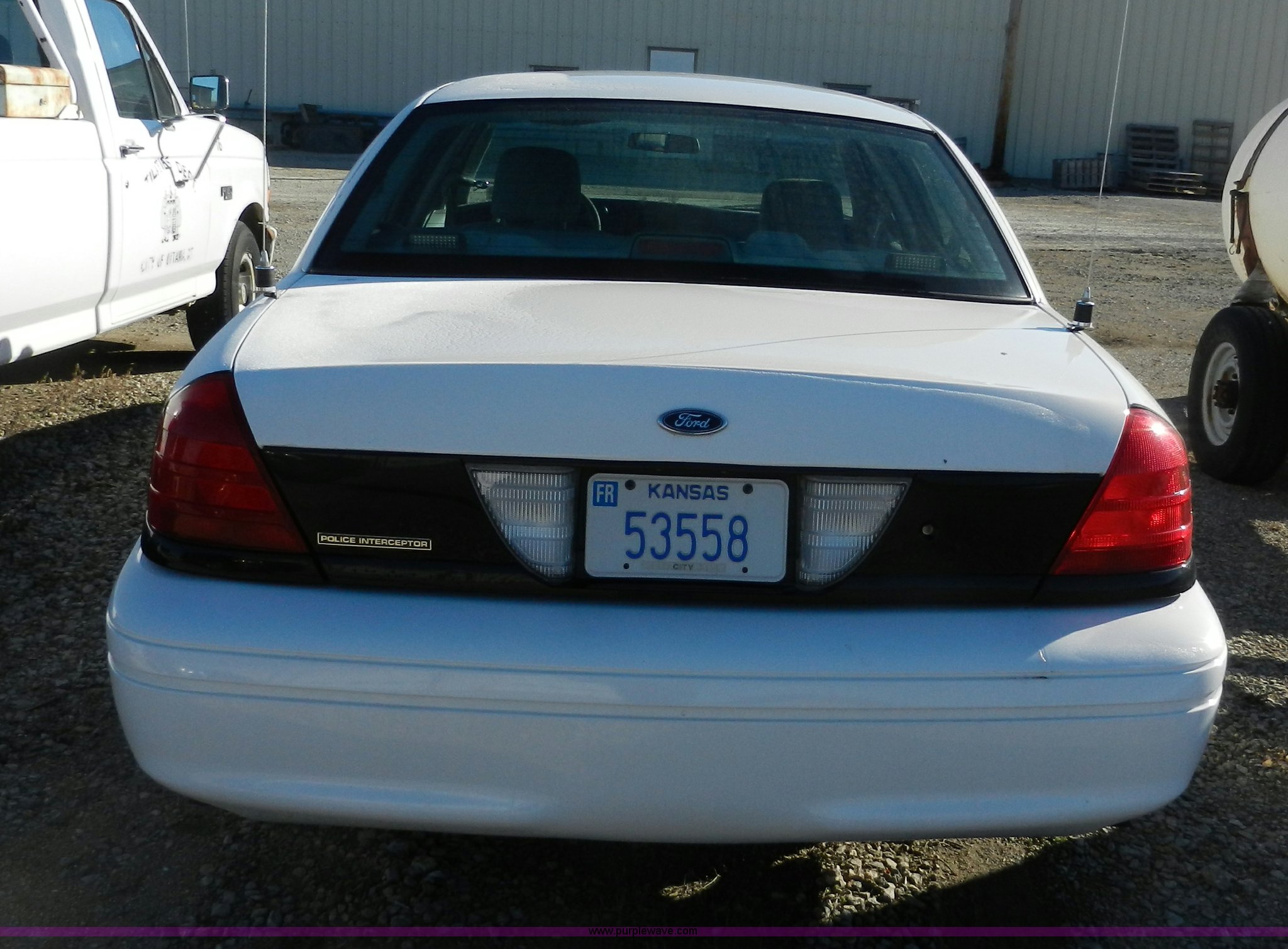 2003 Ford Crown Victoria Police Interceptor. 130,591 miles on odometer, 4.6L V8 SOHC 16V gas engine Overheats, Automatic transmission, AC and heat, Tilt, Cruise, AM/FM, Power windows, locks, mirrors, and seats, Cloth front interior, Vinyl rear interior, 225/60R16 tires, Radio, antennas, console box, and siren box not included, Engine overheats, Exterior cosmetic damage, Paint peeling. 2FAFP71W23X107340. Shipping quotes available. Ottawa Police Department. 715 W 2nd. Ottawa, KS 66067