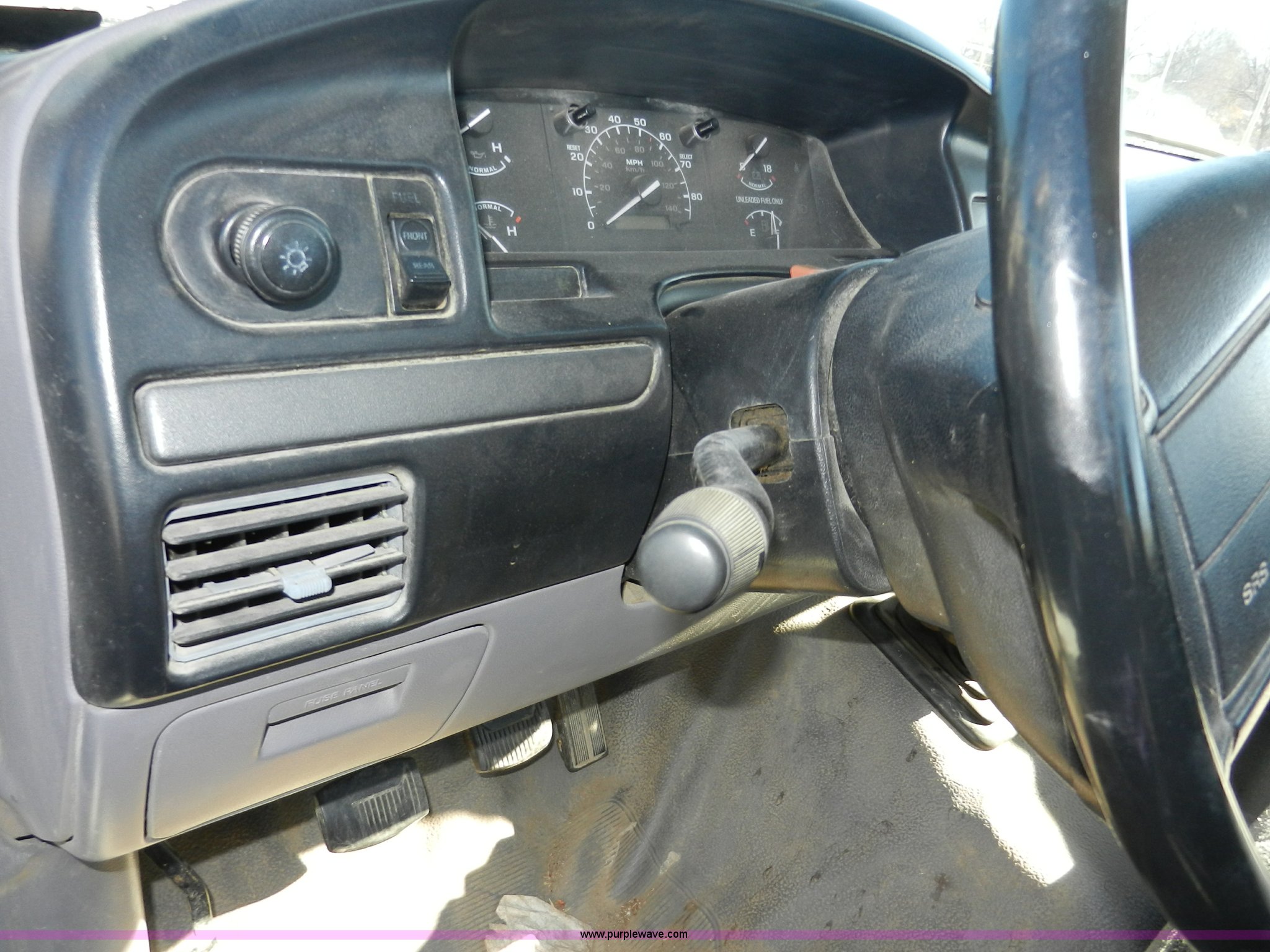Purple Wave is selling a used Passenger Vehicle in Kansas. This item is a 1995 Ford F150 XL pickup truck with the following: 76,118 last known mileage, 4.9L L6 OHV 12V gas engine, Overheats, Five speed manual transmission, AC and heat, AM/FM, Manual windows and locks, Cloth interior, Long bed, Toolbox, Receiver hitch, Trailer wiring, 235/75R15 tires, Service records available, Interior/exterior cosmetic damage, Dents and scratches, Body rust, Dead battery, Engine overheats, Non-operational, must be towed